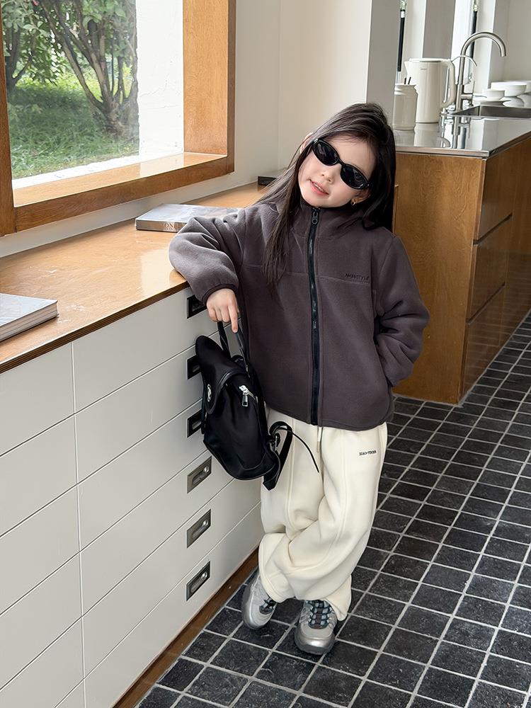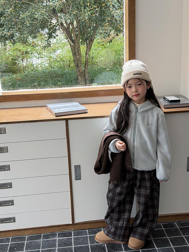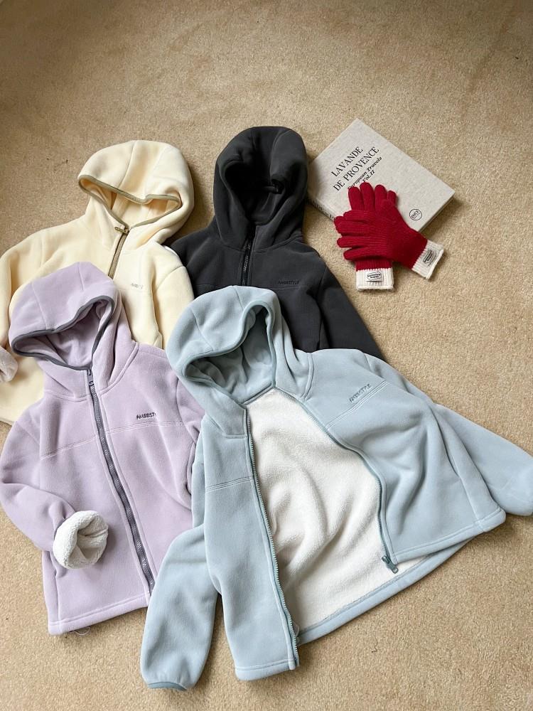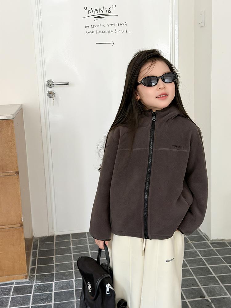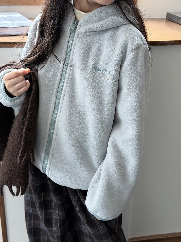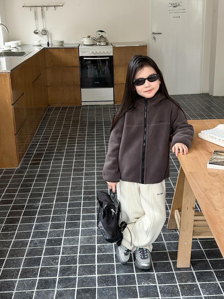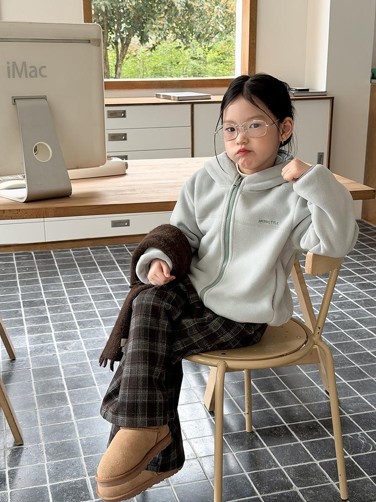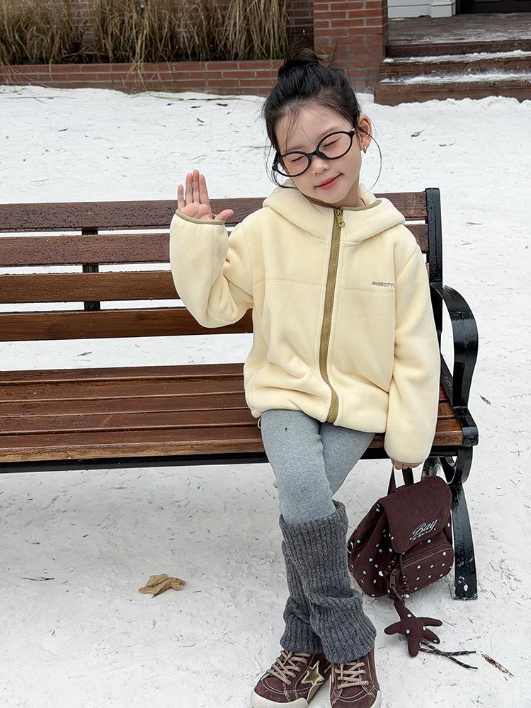 艾摩贝贝儿童冬季软而不压保暖休闲校园时髦卫衣软萌毛绒连帽外套