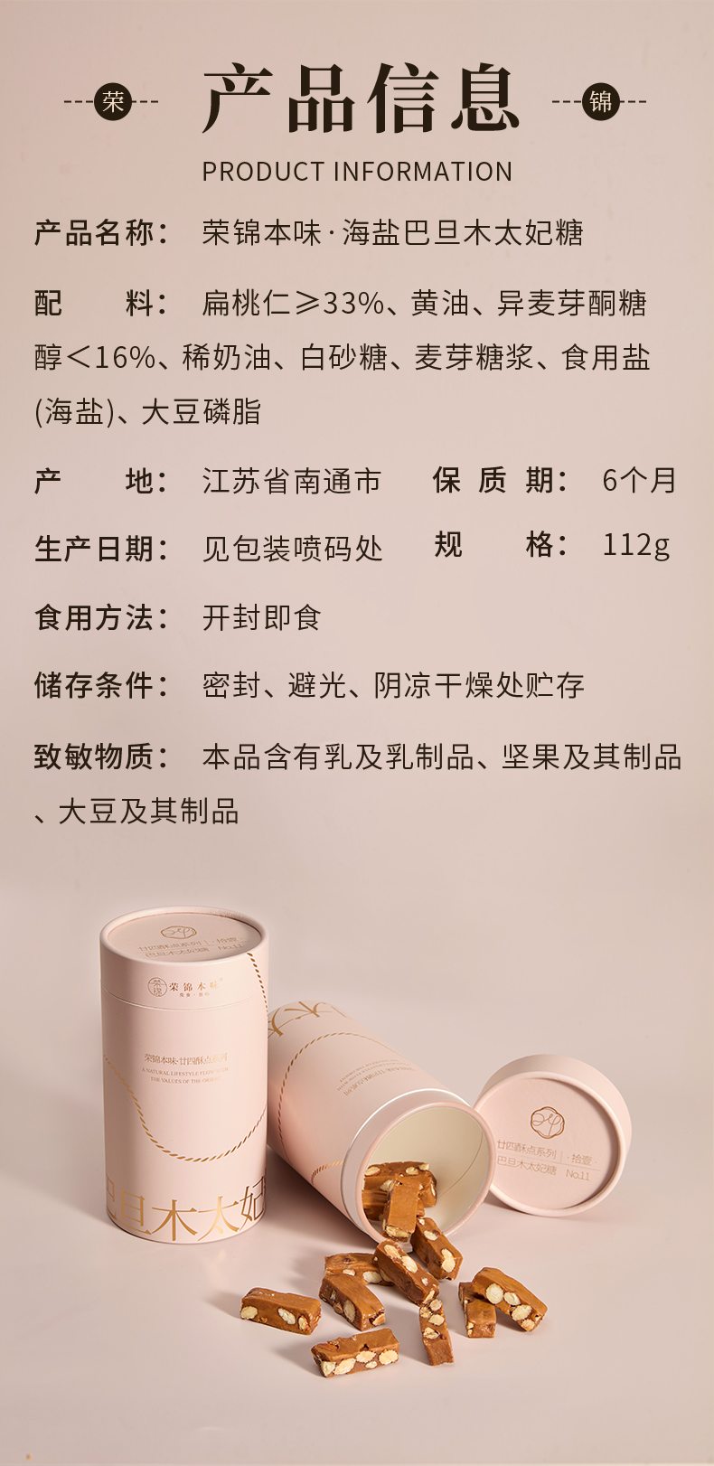 沈爷的宝贝 荣锦本味海盐巴旦木太妃糖 112克/罐 配茶点咖啡零食