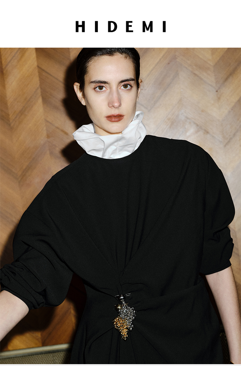 HIDEMI黑色小羊皮廓形西装