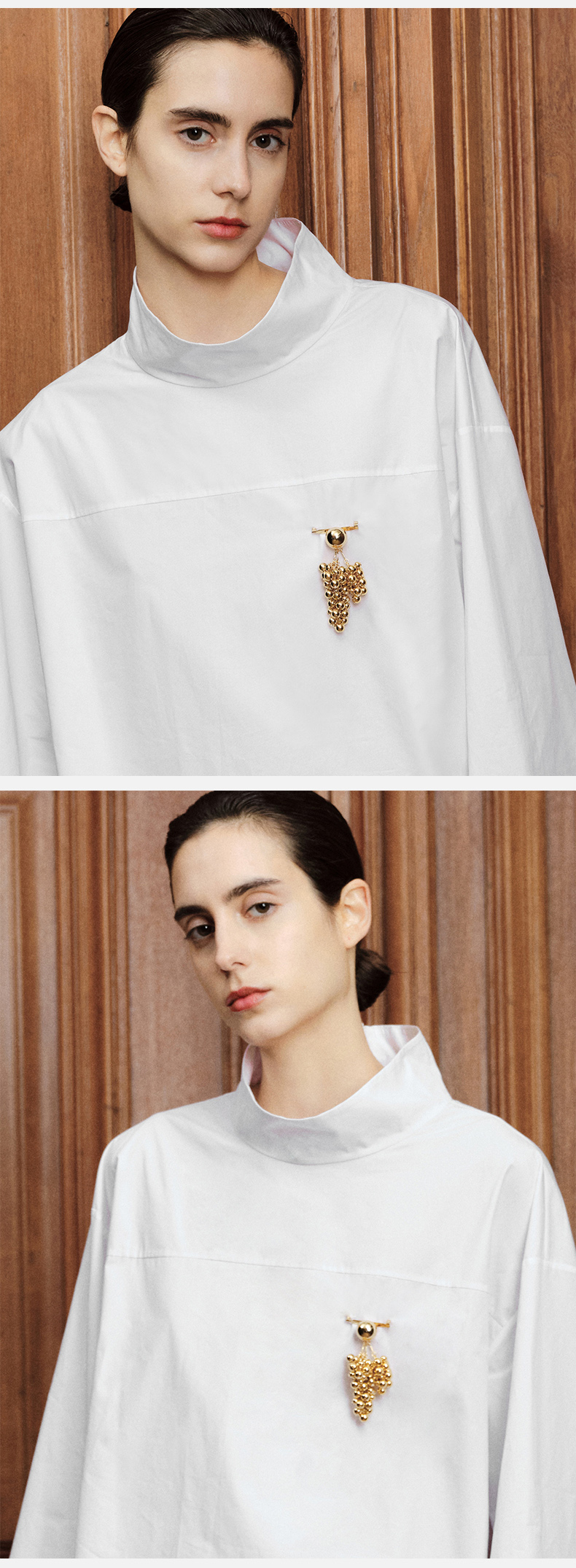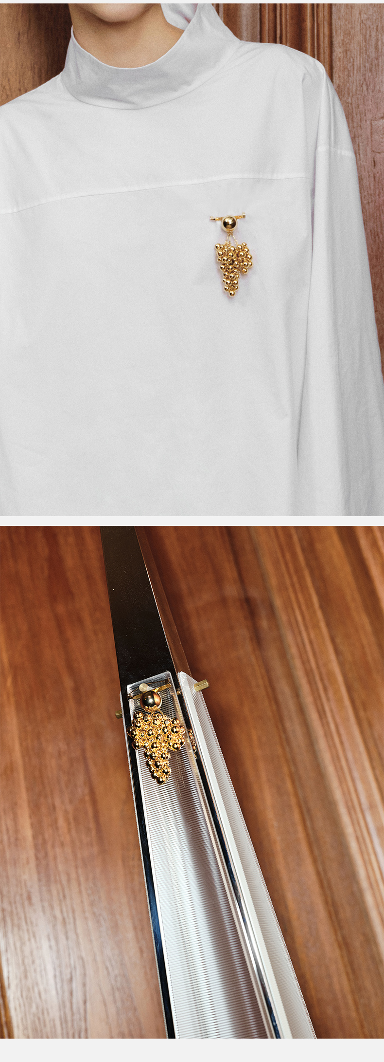 HIDEMI 节日系列设计感串珠葡萄胸针 金色/银色
