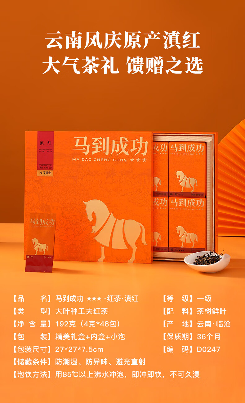 八马茶业·马到成功·滇红360 192g礼盒装(4g*48包)