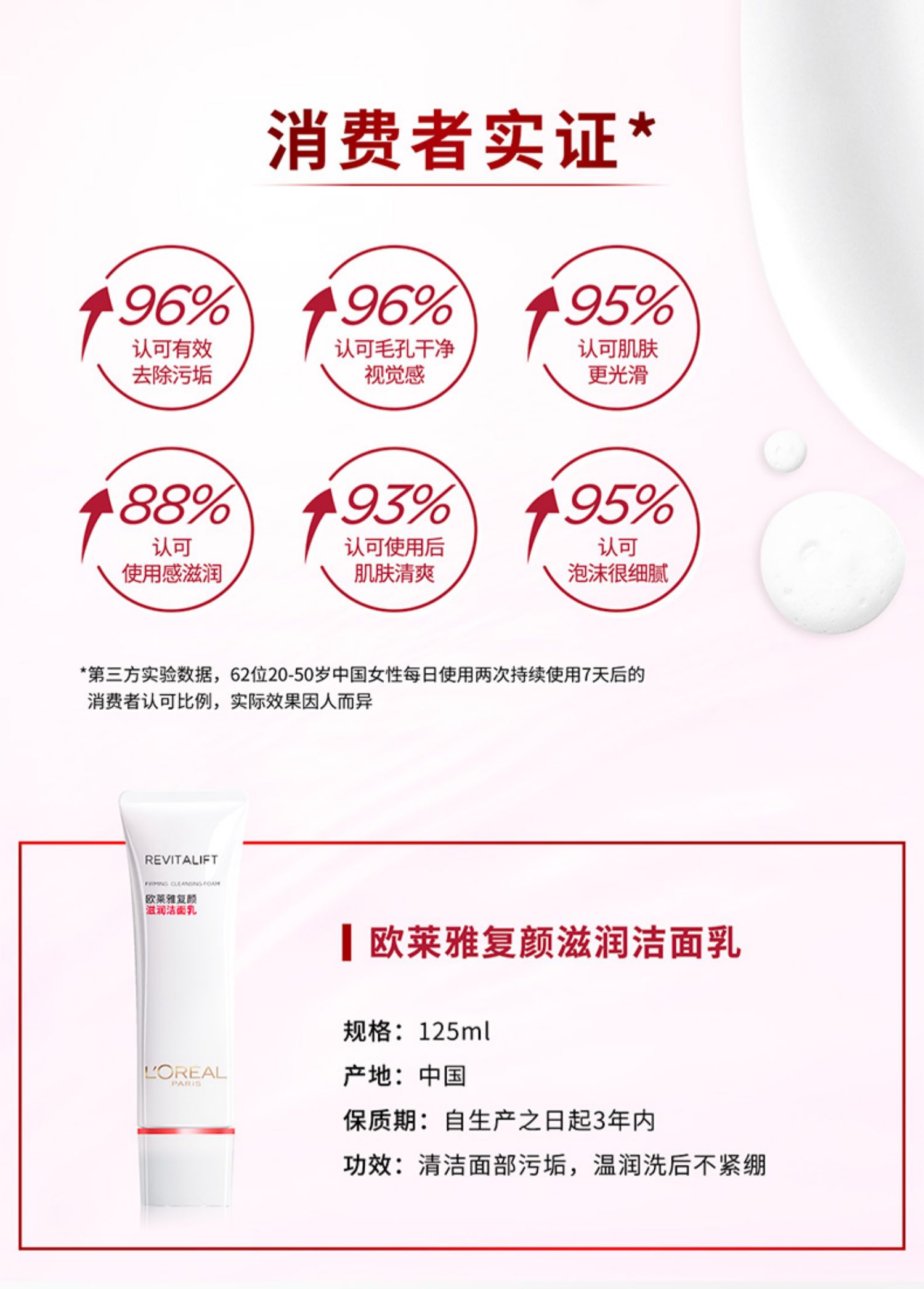 欧莱雅复颜氨基酸滋润洁面乳毛孔深层清洁保湿滋润洁面膏2020RENO125ML