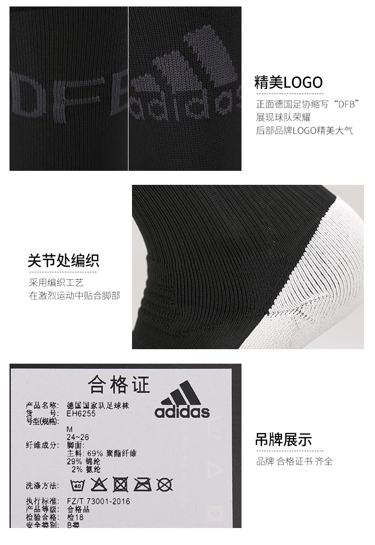 阿迪达斯 德国队 长筒足球袜