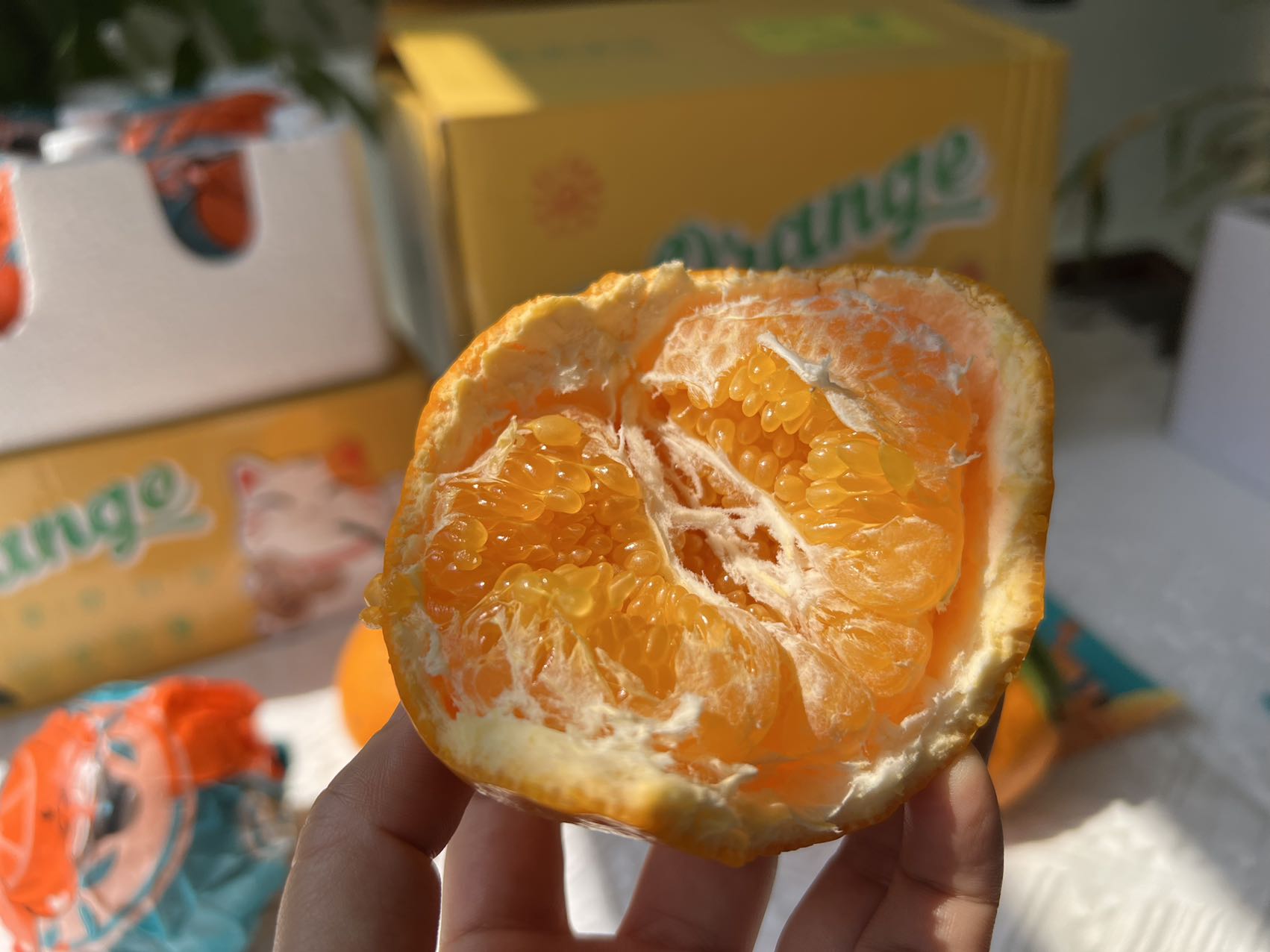 4、口感层次强:一抿即化,果肉甜蜜柔软,有着浓郁橘香。