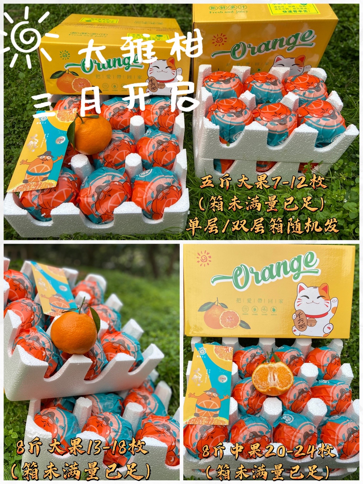 1)大雅柑,均是新鲜带叶采摘发货,自然成熟非人工干扰,自然果黄金酸甜比9:1,入口带微微果酸,回味甘甜口感有层次感。