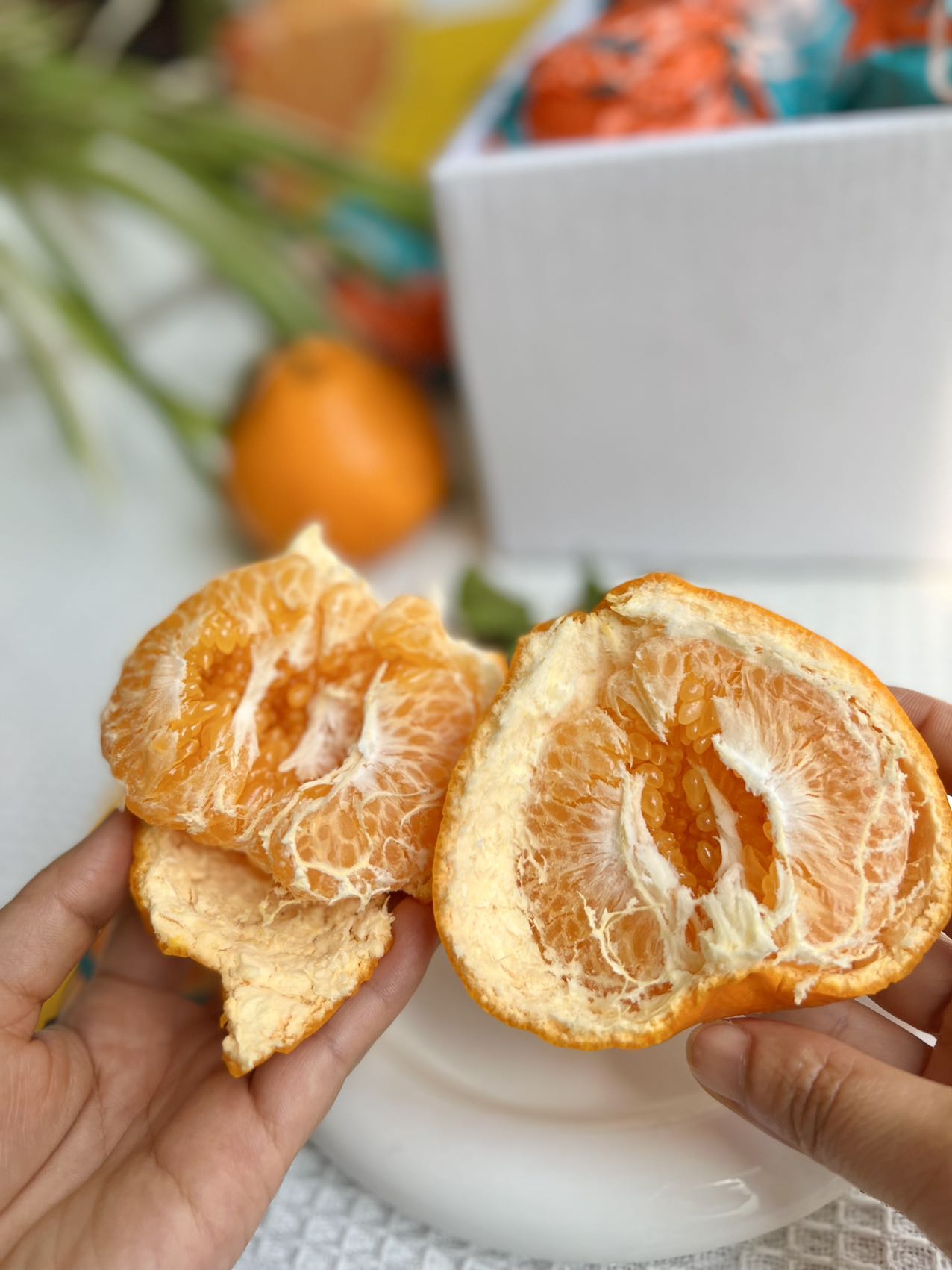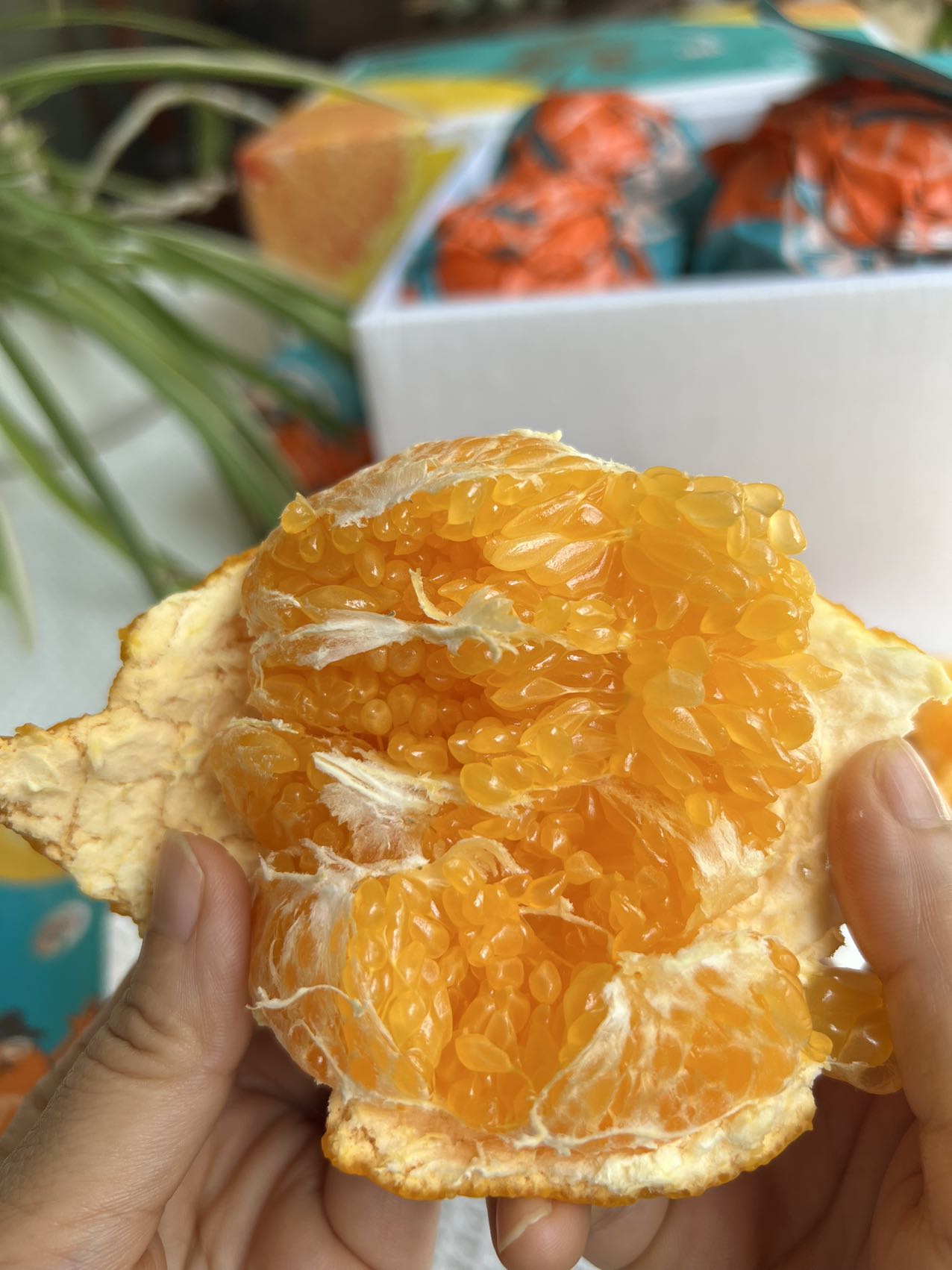 它的果肉甜蜜柔软,有着浓郁橘香。 你可以大快朵颐吃下,任由清甜可口的果汁在你嘴巴中奔腾!