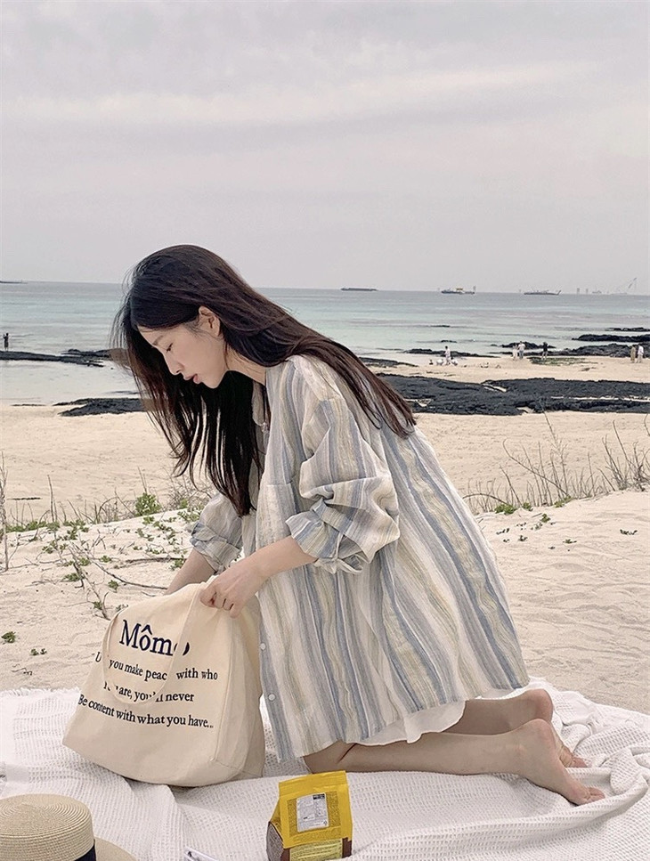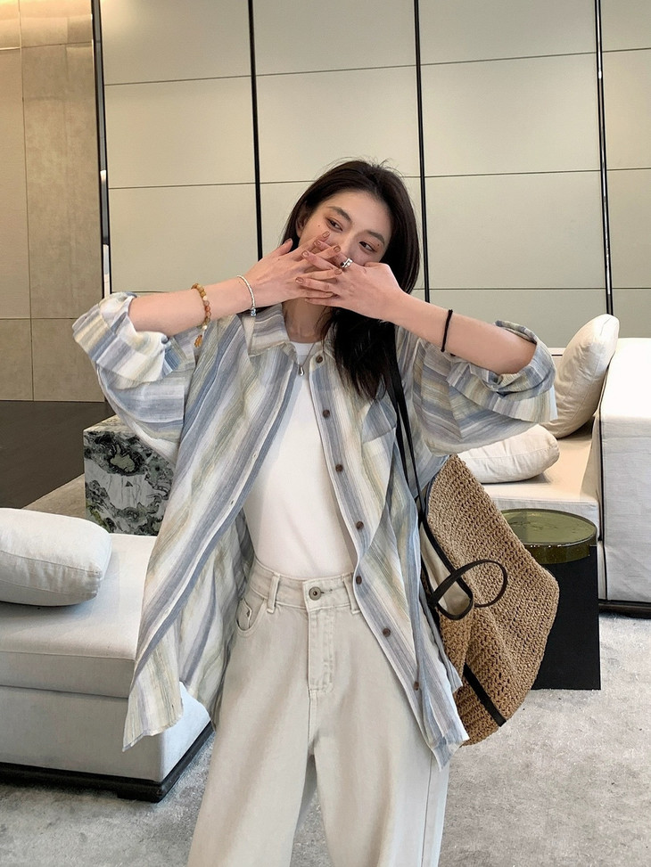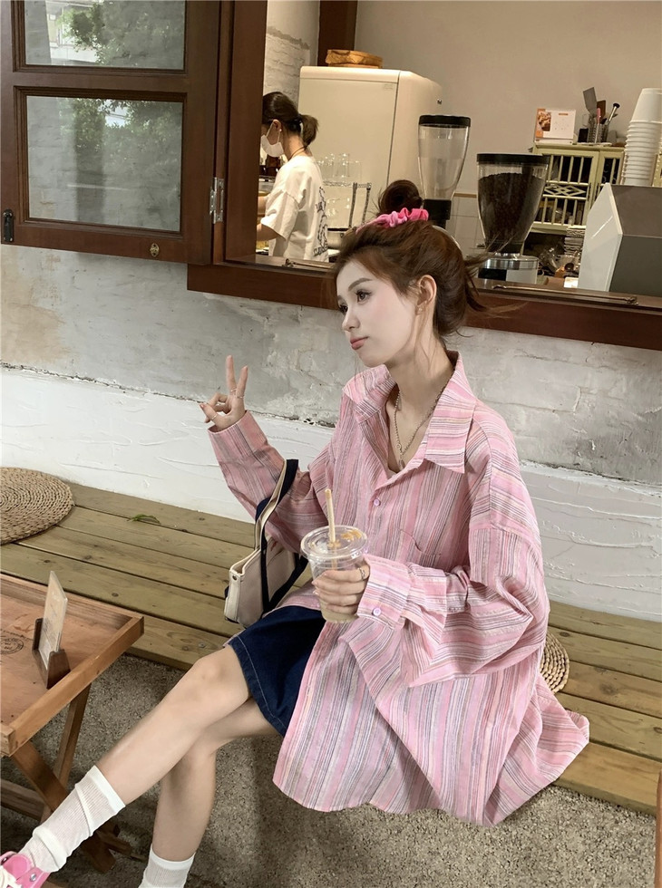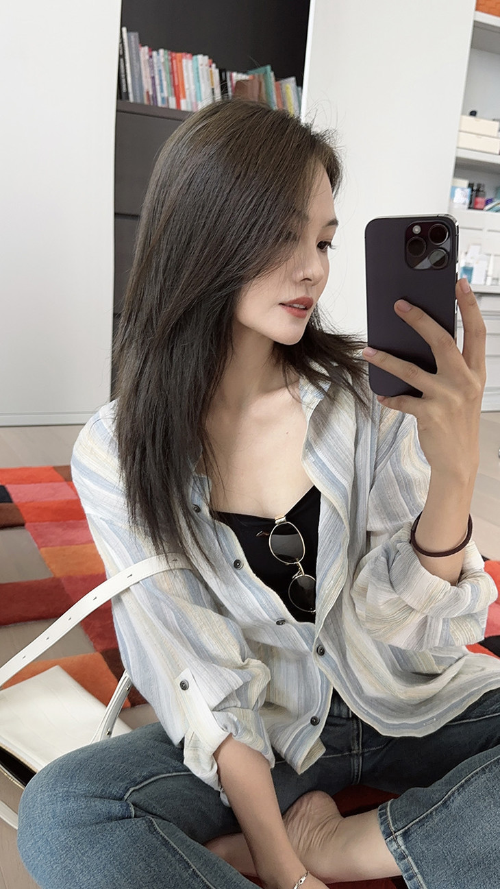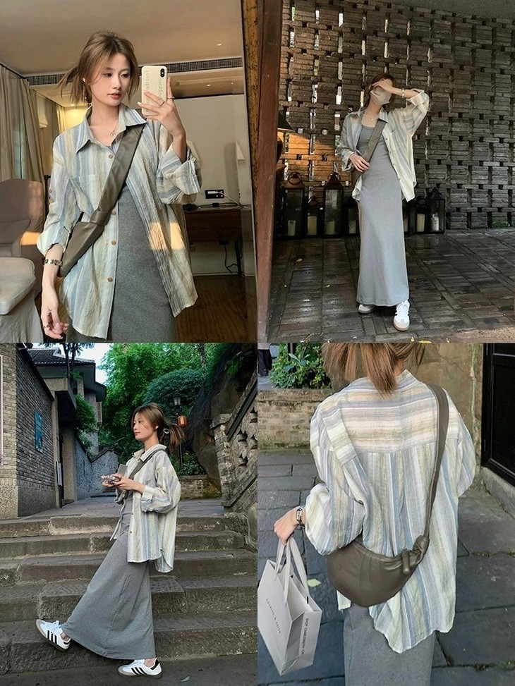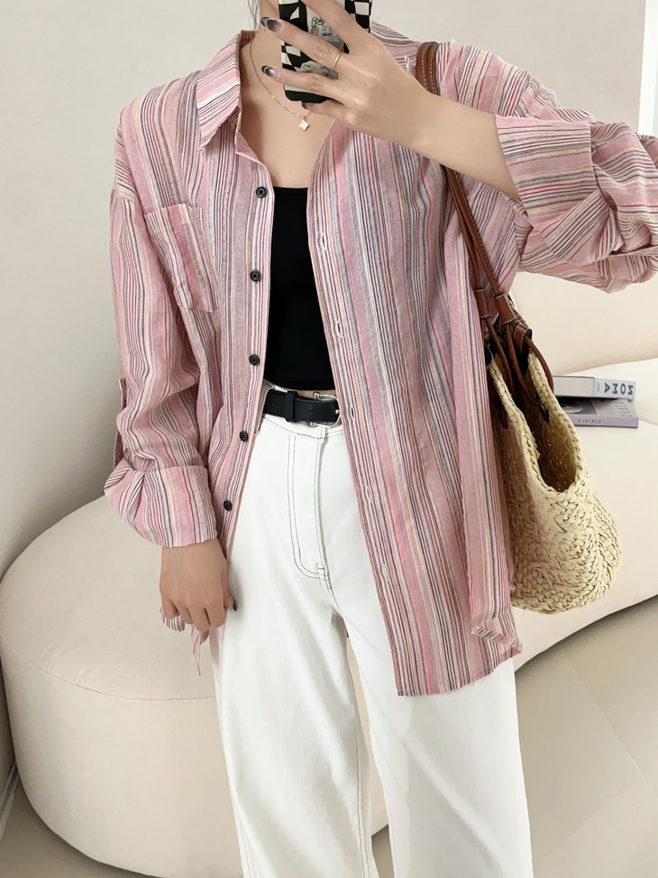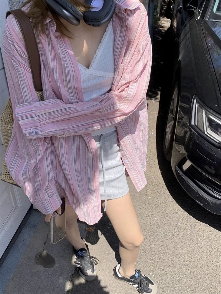 -团长碎碎念- 这件条纹衬衫充满又帅又美的矛盾美学 彰显又松弛又高智的风格,很难让人不爱! 宽松休闲版型重点夸夸! 摒弃土里土气的修身制服衬衫OVERSIZED廓形 巧妙化解正式、拘谨、班味的印象! 经典翻领,简洁大方,优化脸型与颈部线条 棉与涤面料制作 吸湿透汽体感舒爽 防晒外搭 大夏天也不会闷热难耐 很有日系的氛围感 自由且放松 减龄可爱的少女感 衬花袖口 收束起来更立体有型 干干净净的舒适感 清新亮眼~ 春夏日出街直接套这一件就OK啦