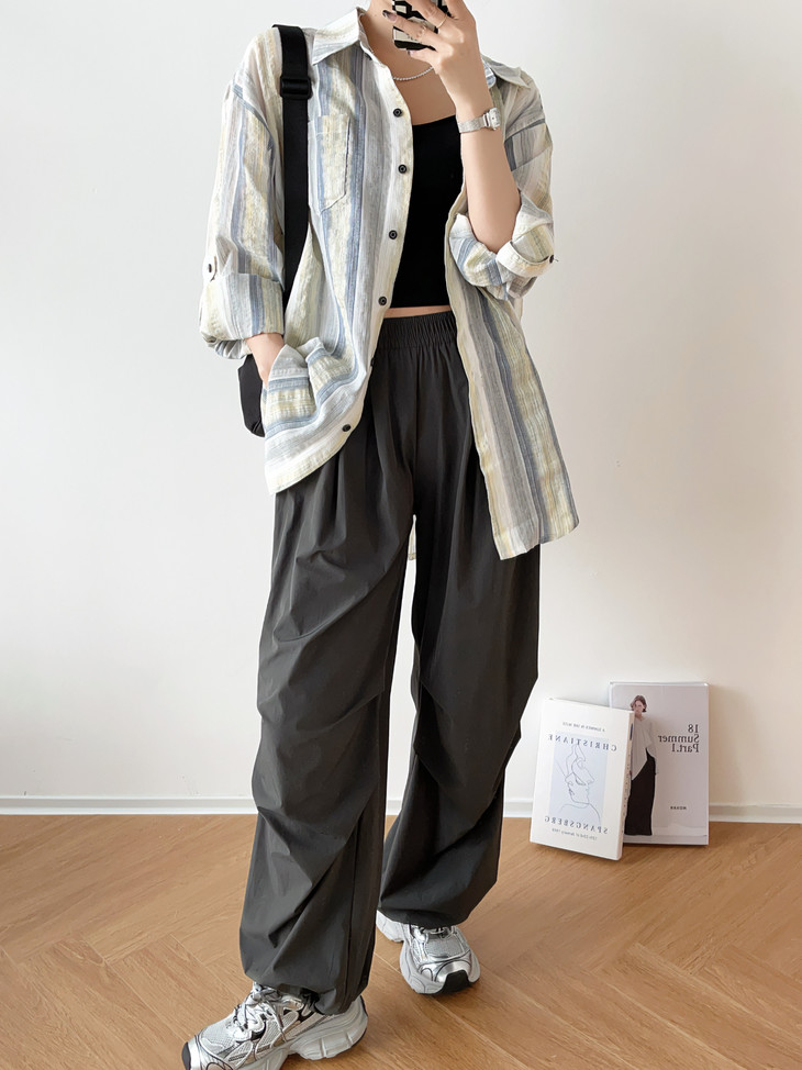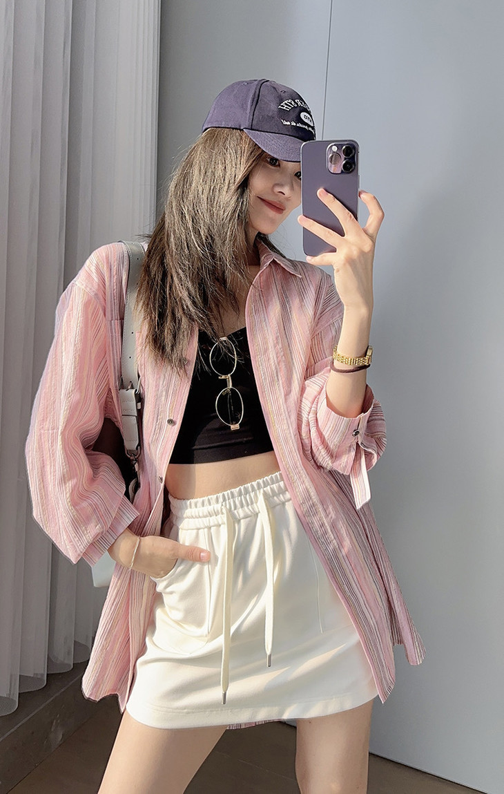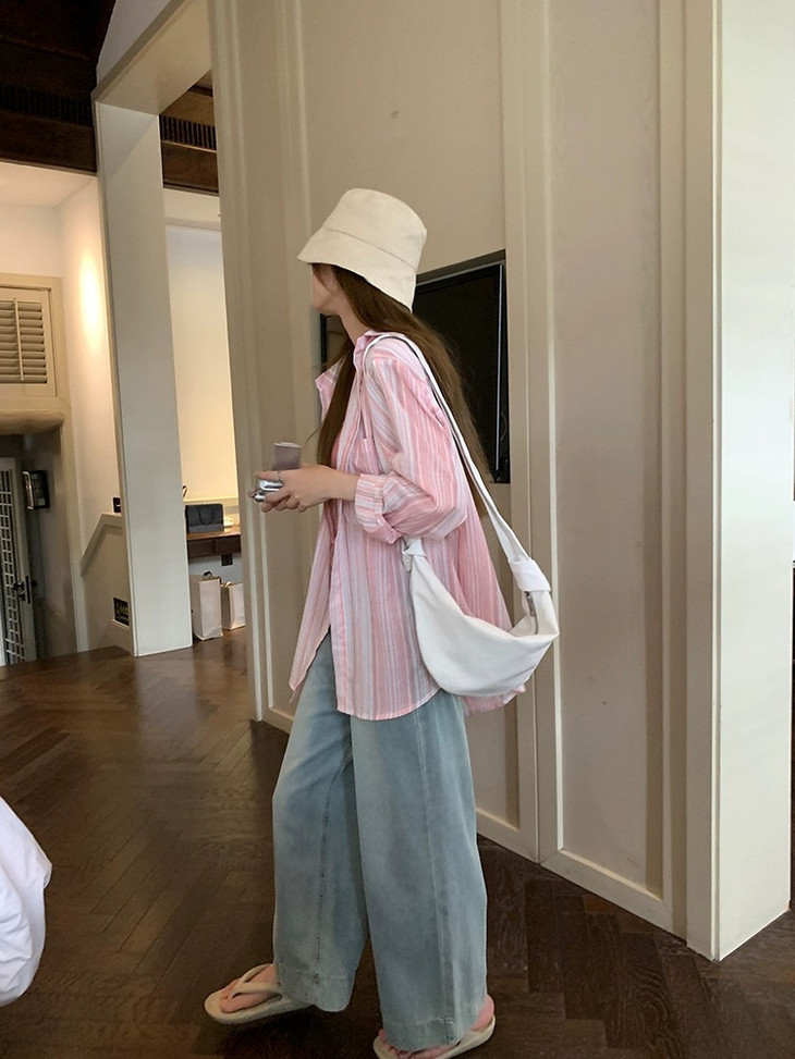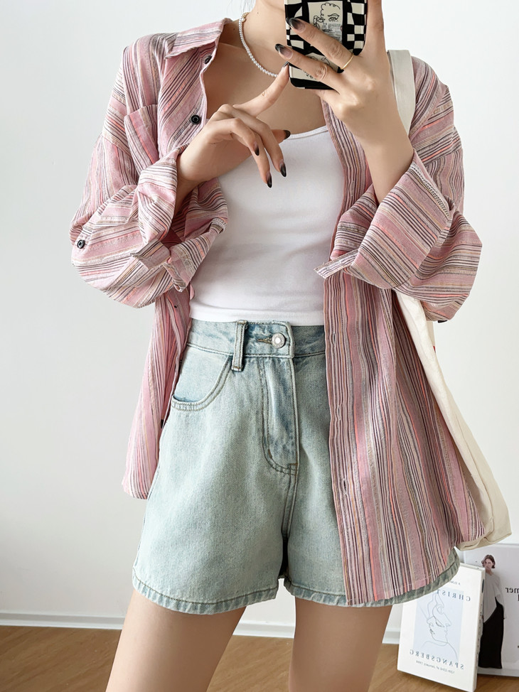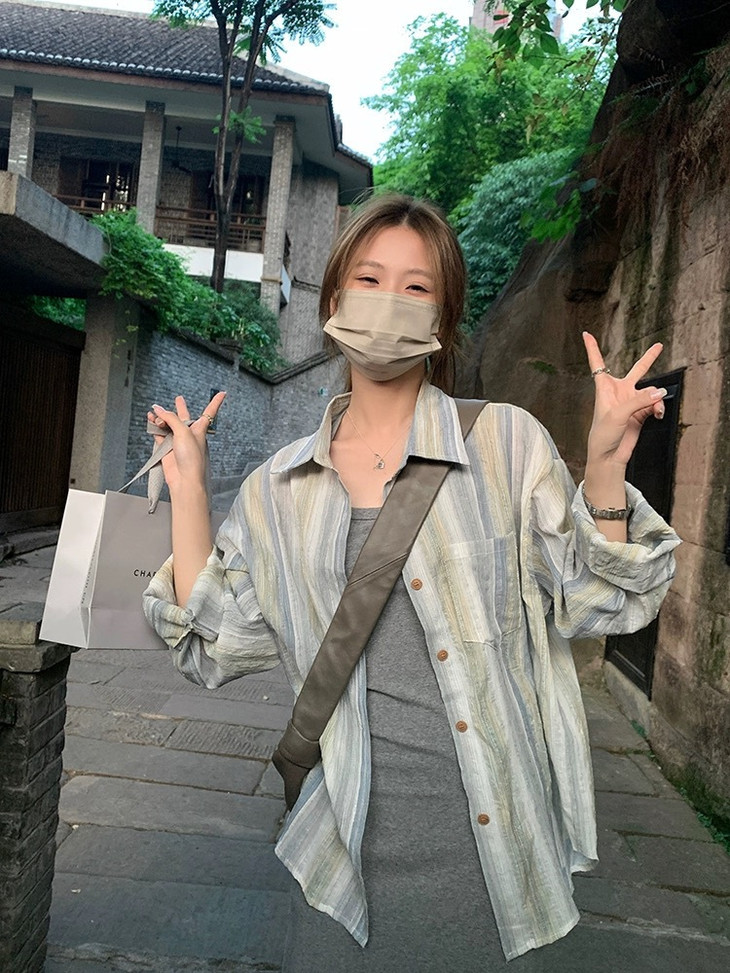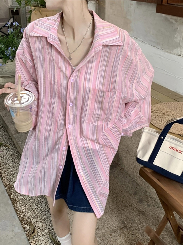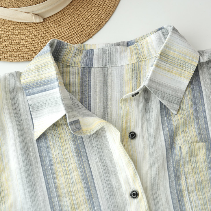 -团长碎碎念- 这件条纹衬衫充满又帅又美的矛盾美学 彰显又松弛又高智的风格,很难让人不爱! 宽松休闲版型重点夸夸! 摒弃土里土气的修身制服衬衫OVERSIZED廓形 巧妙化解正式、拘谨、班味的印象! 经典翻领,简洁大方,优化脸型与颈部线条 棉与涤面料制作 吸湿透汽体感舒爽 防晒外搭 大夏天也不会闷热难耐 很有日系的氛围感 自由且放松 减龄可爱的少女感 衬花袖口 收束起来更立体有型 干干净净的舒适感 清新亮眼~ 春夏日出街直接套这一件就OK啦