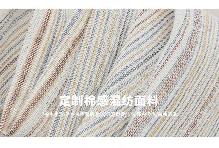 甄选天然棉花,柔软亲肤,舒适通气~ 能让皮肤自由呼吸,出汗也不闷不黏腻,保持身体清爽 黄金比例混纺,把棉的柔软和纤维的稳定相融合 涤纶纤维对染料的吸附性强,着色效果好,色牢度高 制成的条纹衣物色彩鲜艳, 哪怕久穿、藏贮依然鲜艳如新, 根本不是只能穿一季的季抛衣,很好打理!