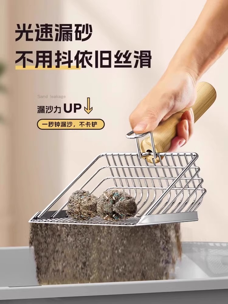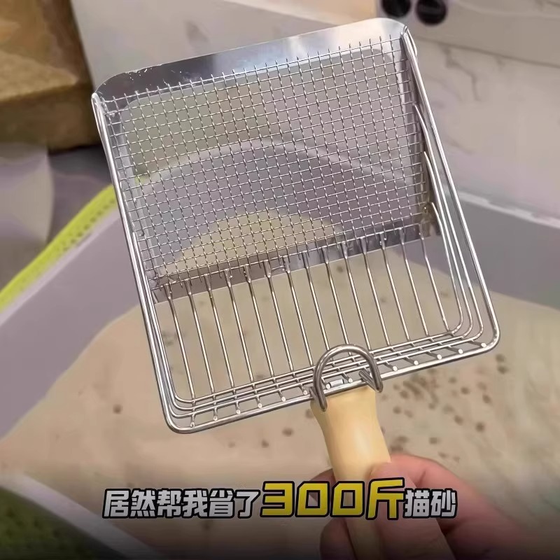 【金属不锈钢耐用,猫砂铲二合一】猫砂铲二合一金属不锈钢细孔猫屎铲子矿砂豆腐砂网铲大号铲屎神器.TA