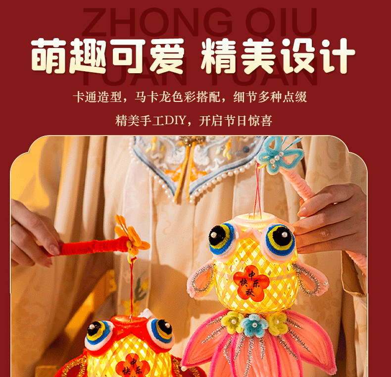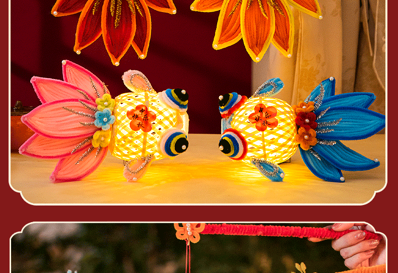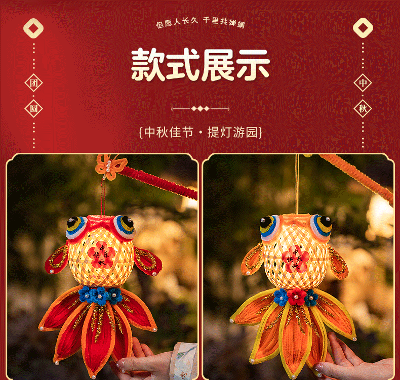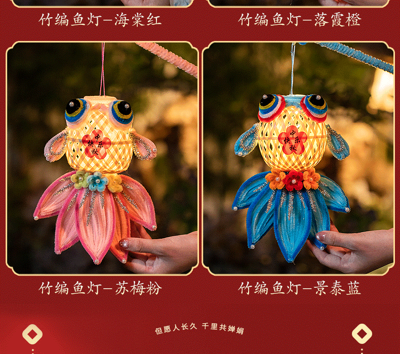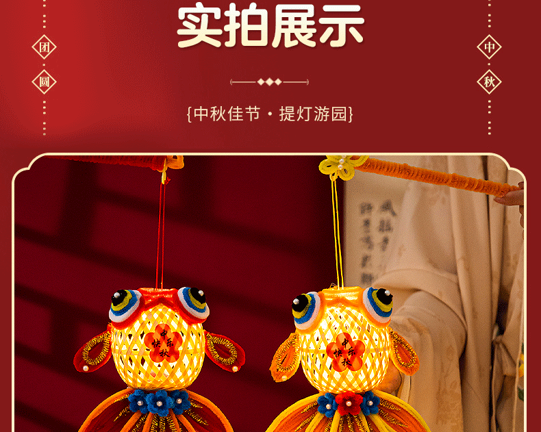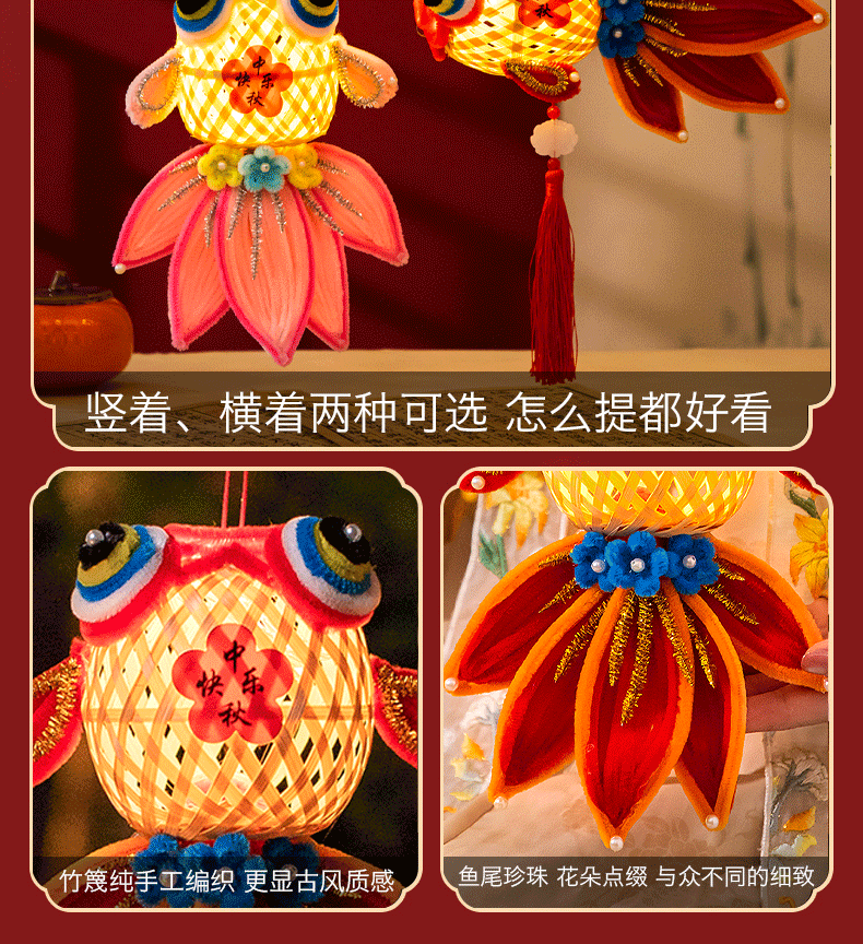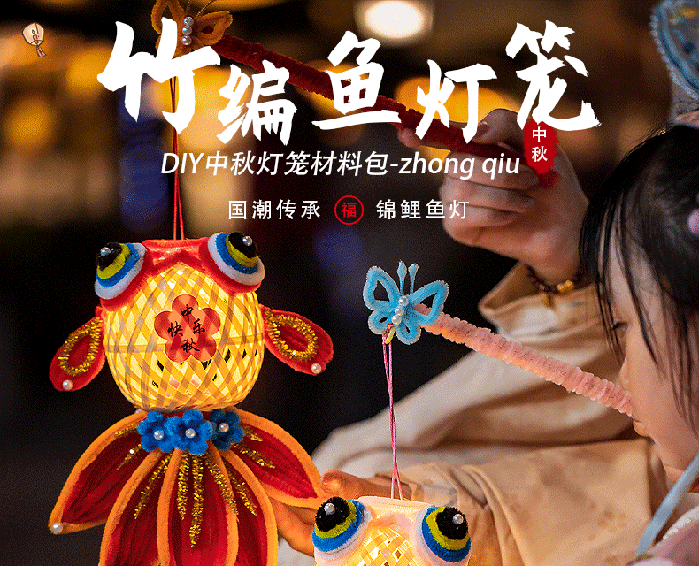 【国朝传承!竹编鱼灯龙】中秋节灯笼手工制作扭扭棒鱼灯diy儿童花灯锦鲤竹编中秋发光灯笼。rb