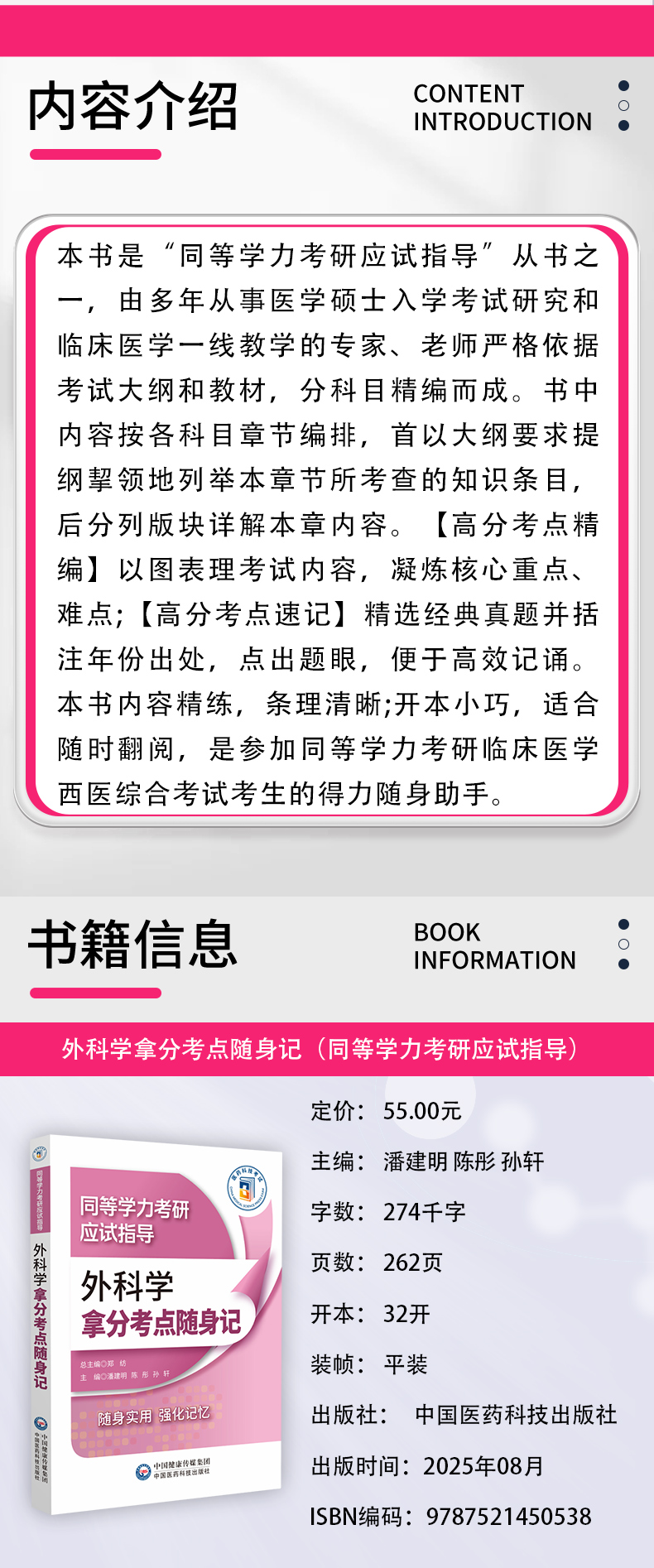 外科学拿分考点随身记 同等学力考研应试指导 潘建明 陈彤 孙轩 主编 考研 西医 随身实用强化记忆9787521450538中国医药科技出版社