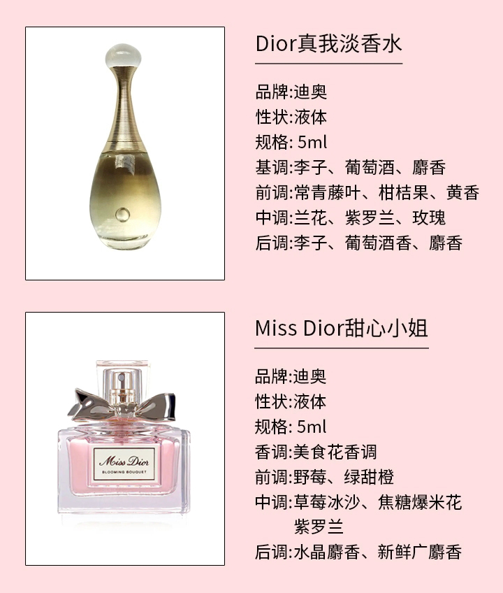 【香港直邮】迪奥Dior Q版香水中样5件套礼盒 甜心+魅惑+真我 5ml*5 没有礼品袋