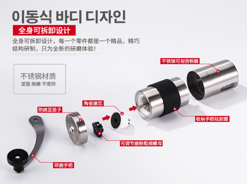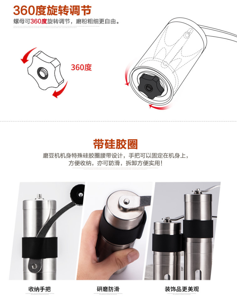 【家用电器】-创意手摇咖啡磨豆机 带硅胶不锈钢磨豆机 咖啡机 咖啡磨