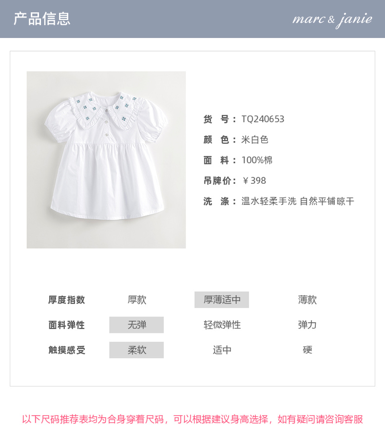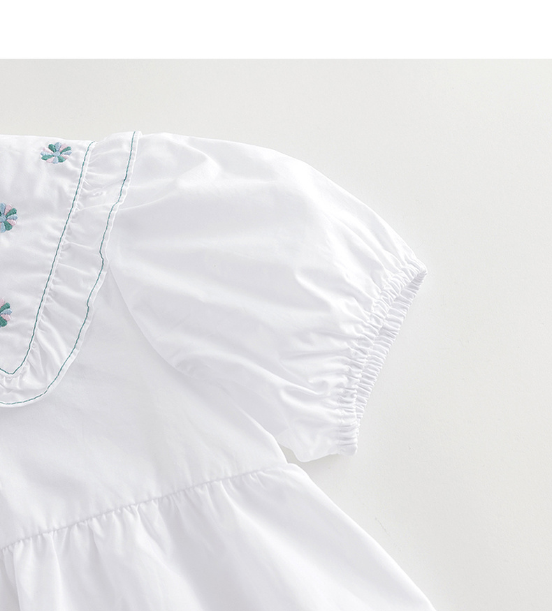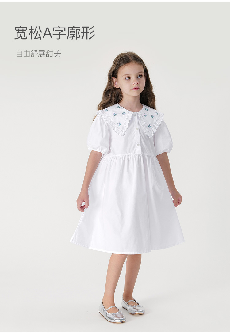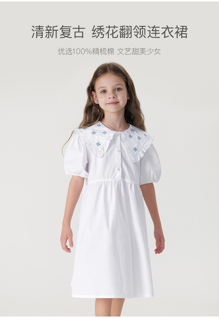 马克珍妮女童复古绣花娃娃领连衣裙儿童裙子2024年夏装新款240653