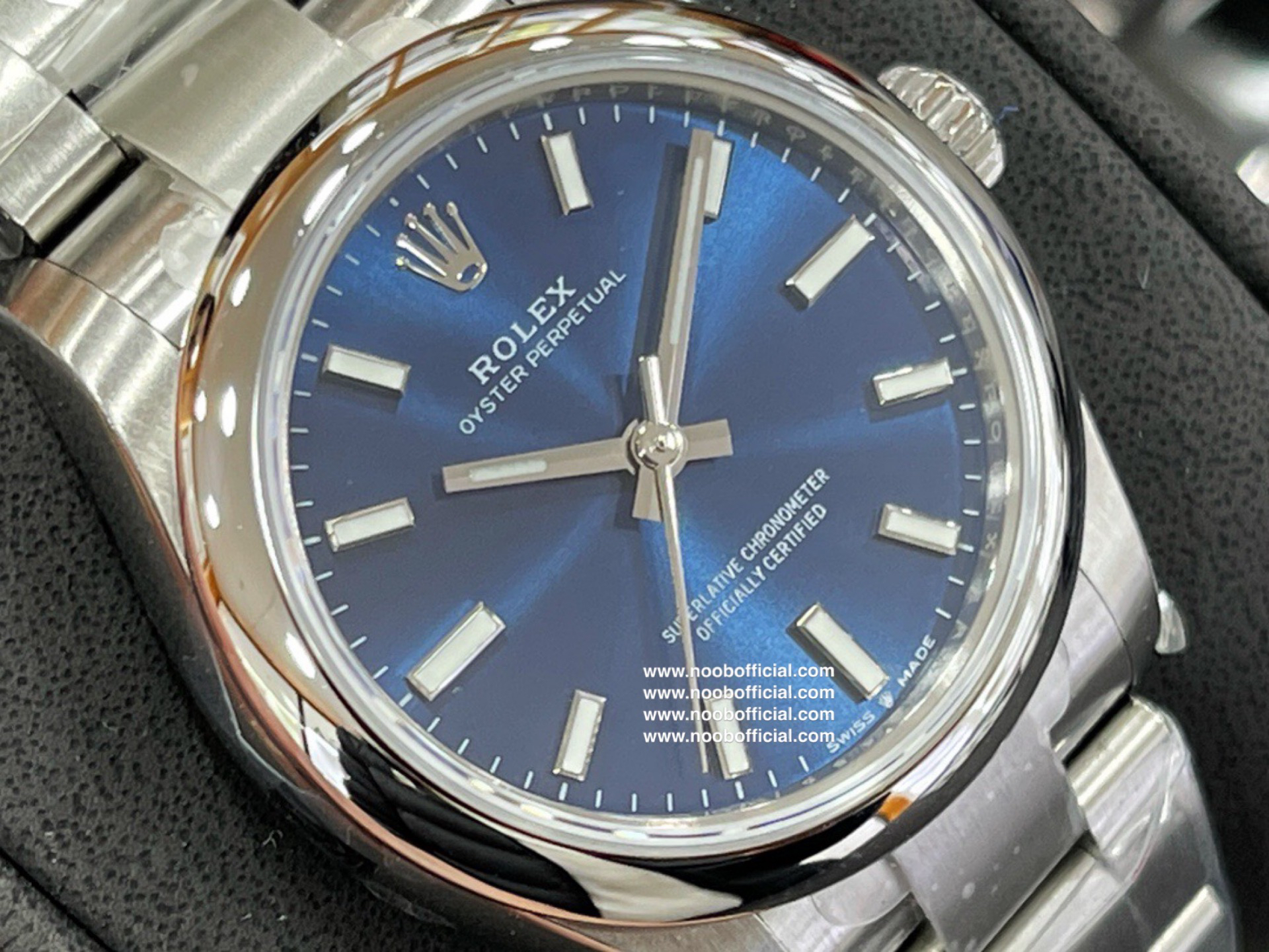 3.【表盘】盘面条钉打磨;瑞士冰蓝色夜光,与劳力士原厂夜光一致