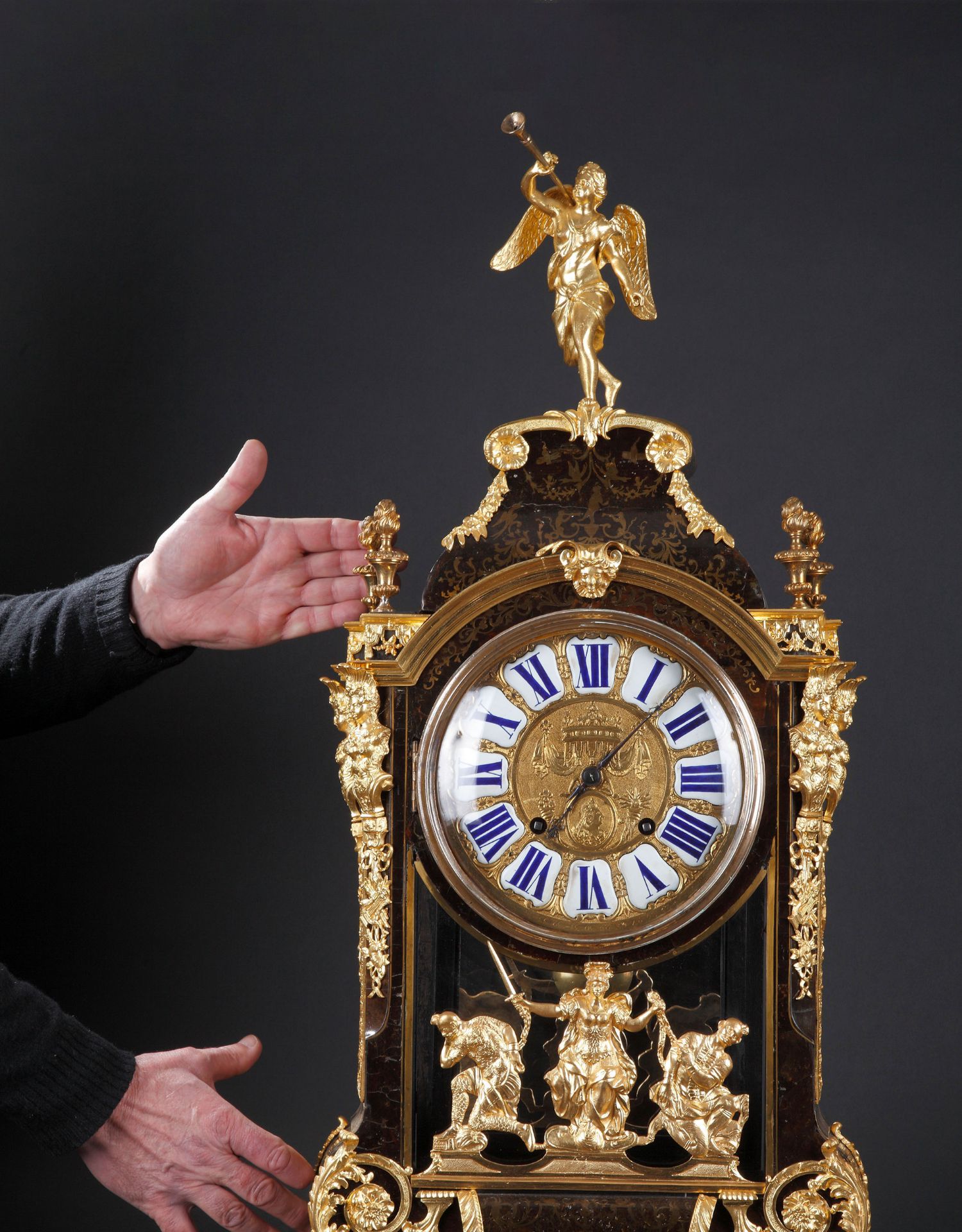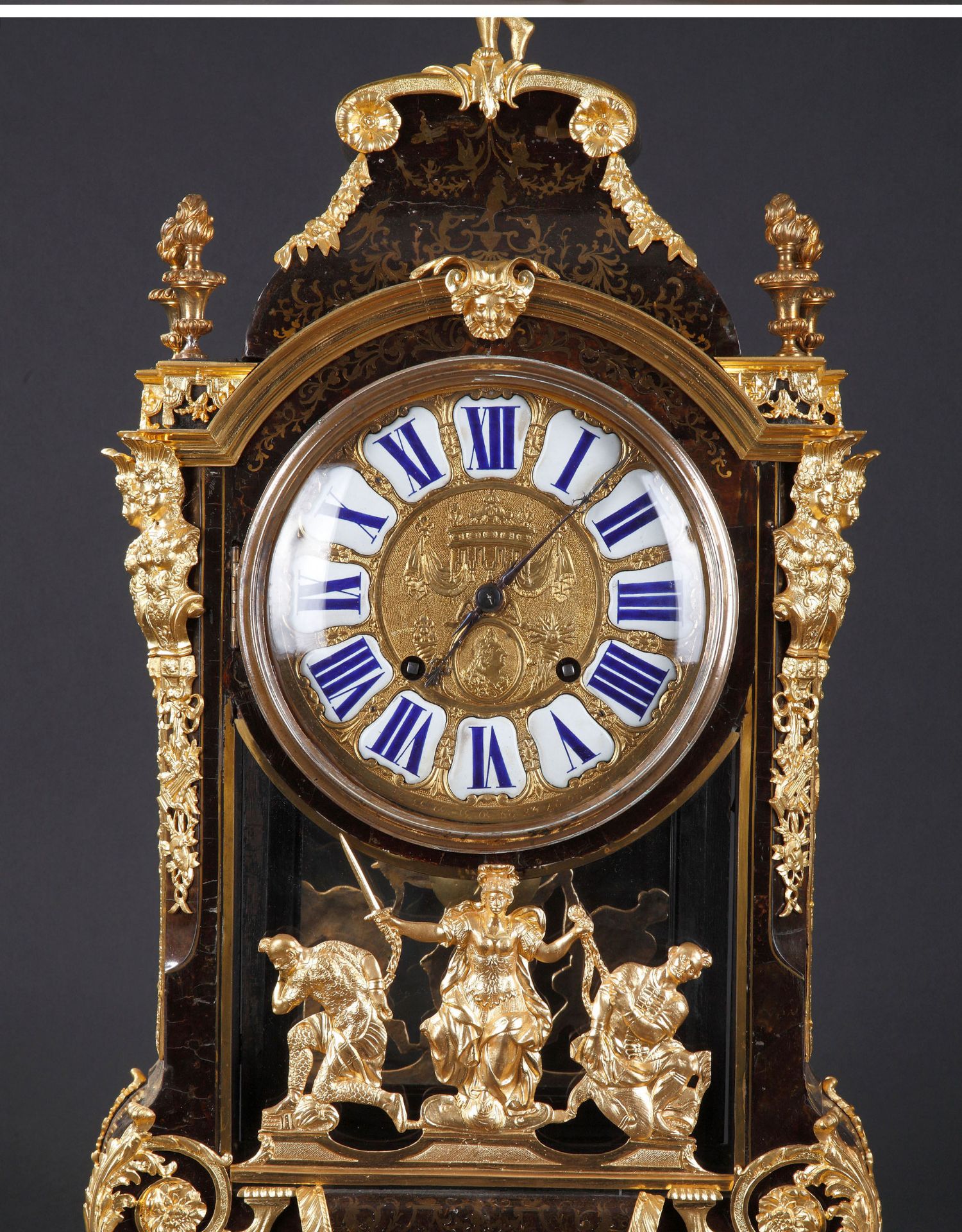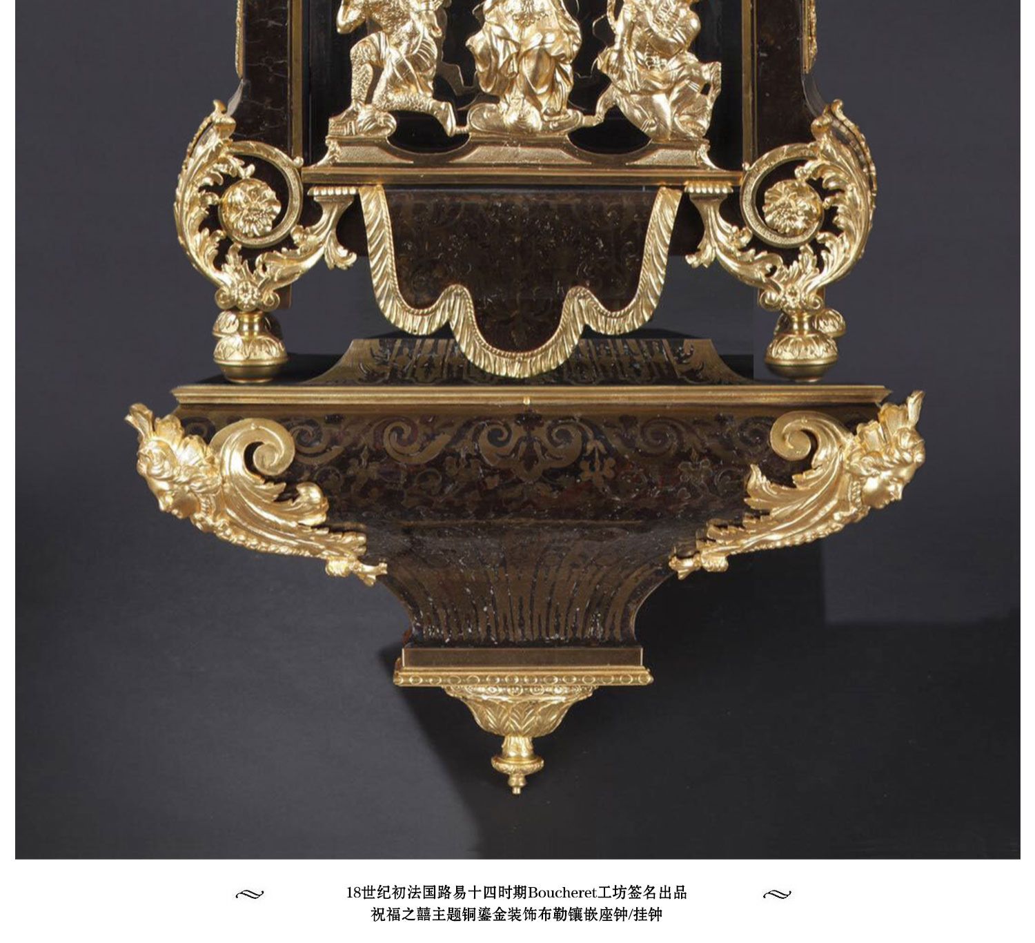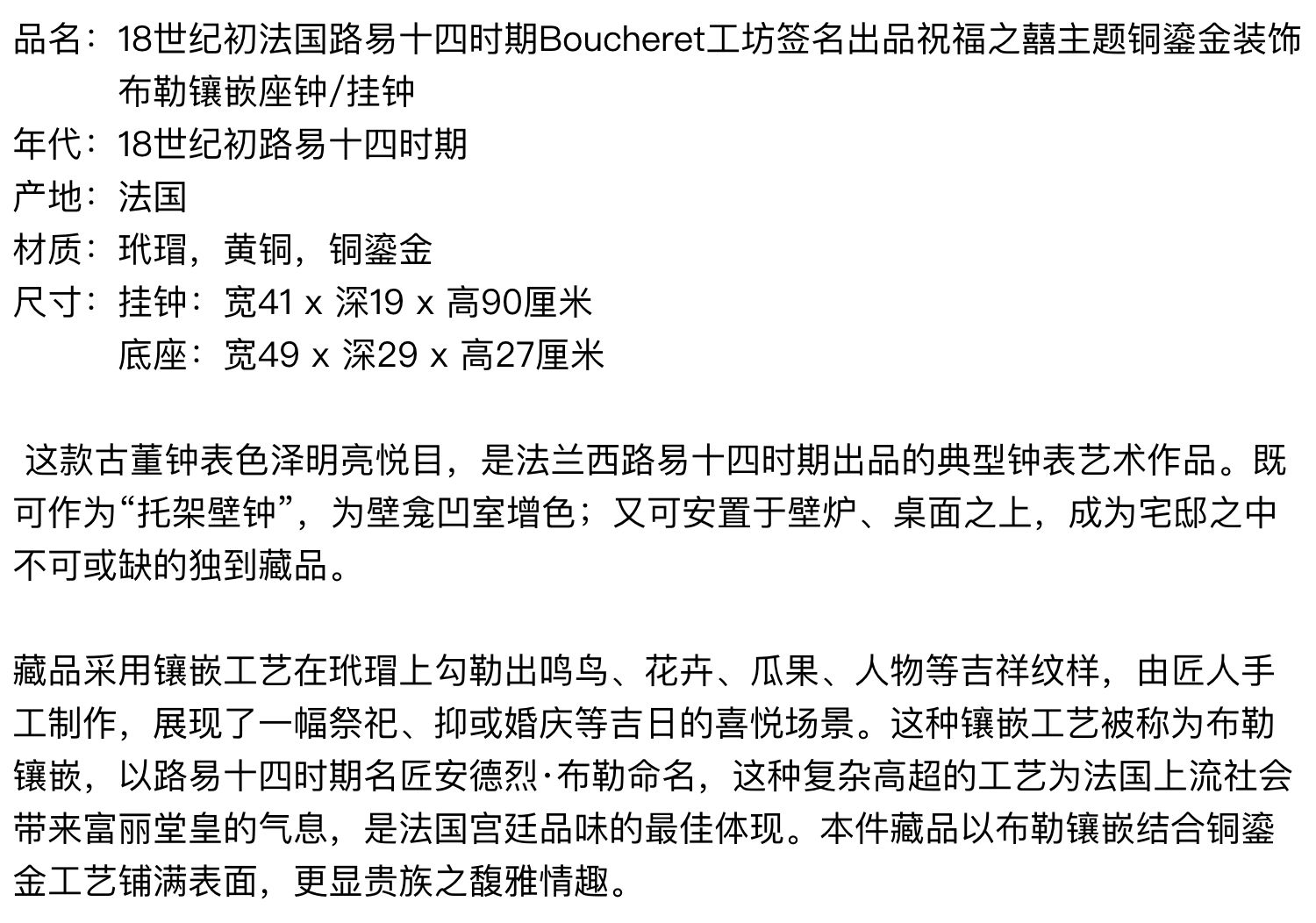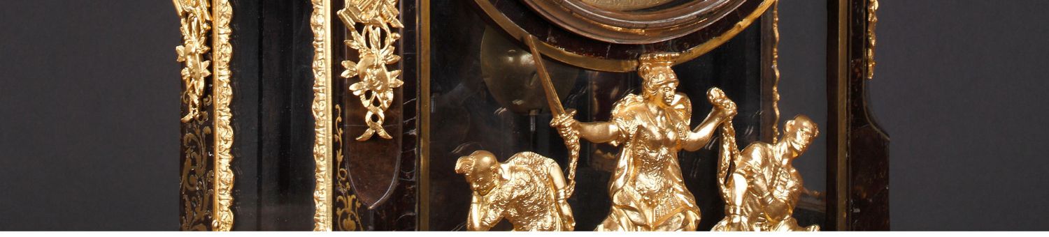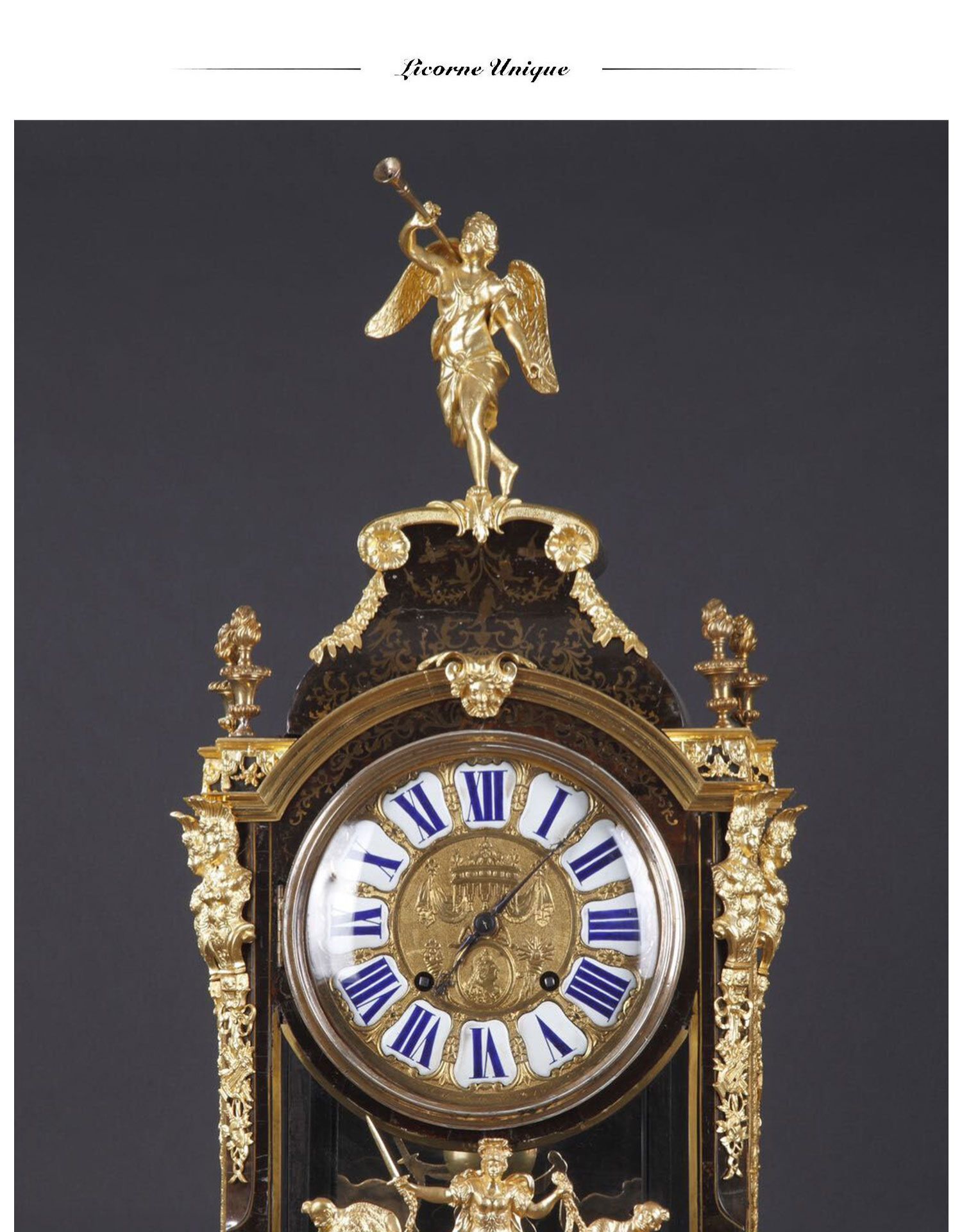独角鹿西洋古董18世纪初法国路易十四时期铜鎏金布勒镶嵌座钟挂钟