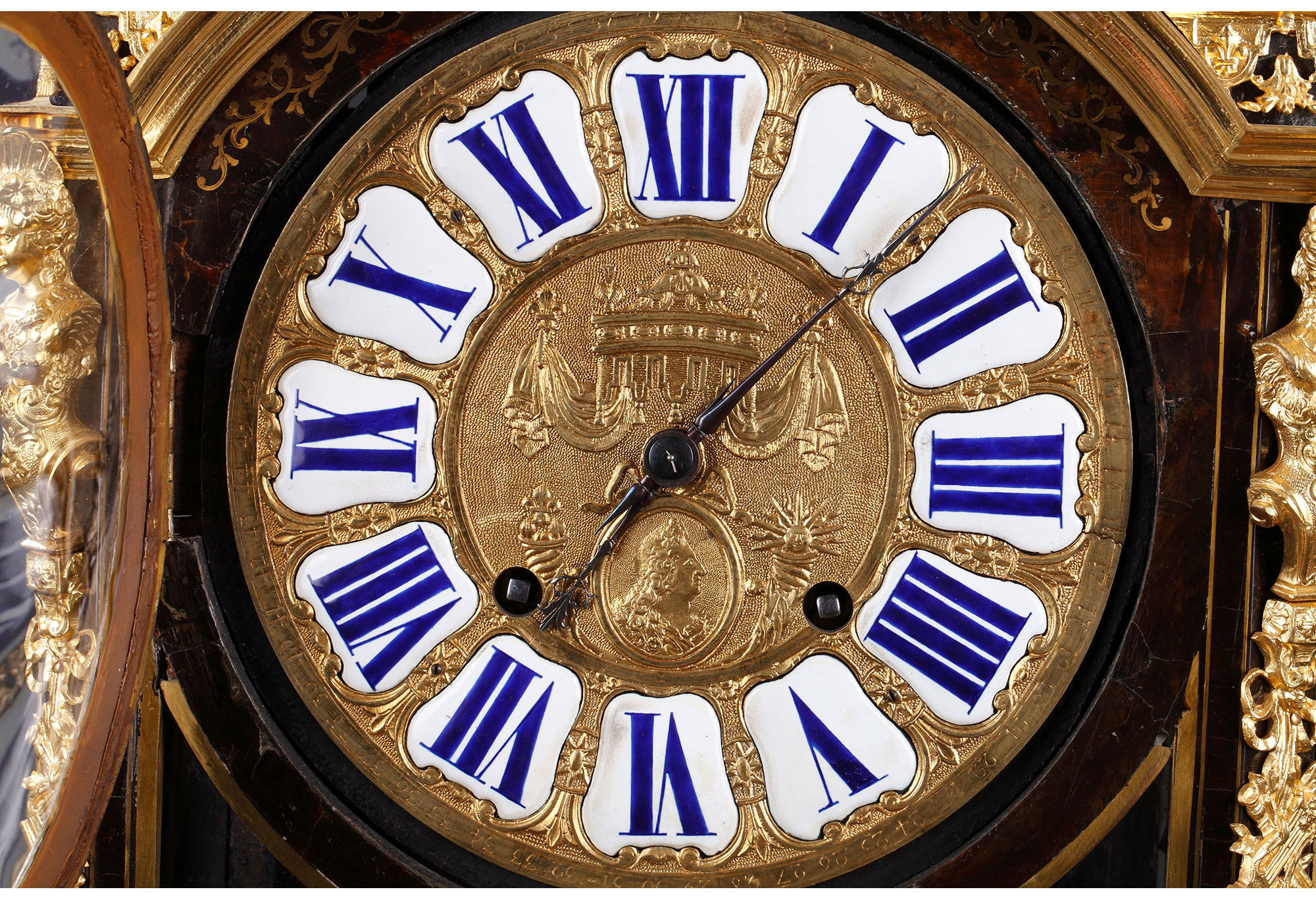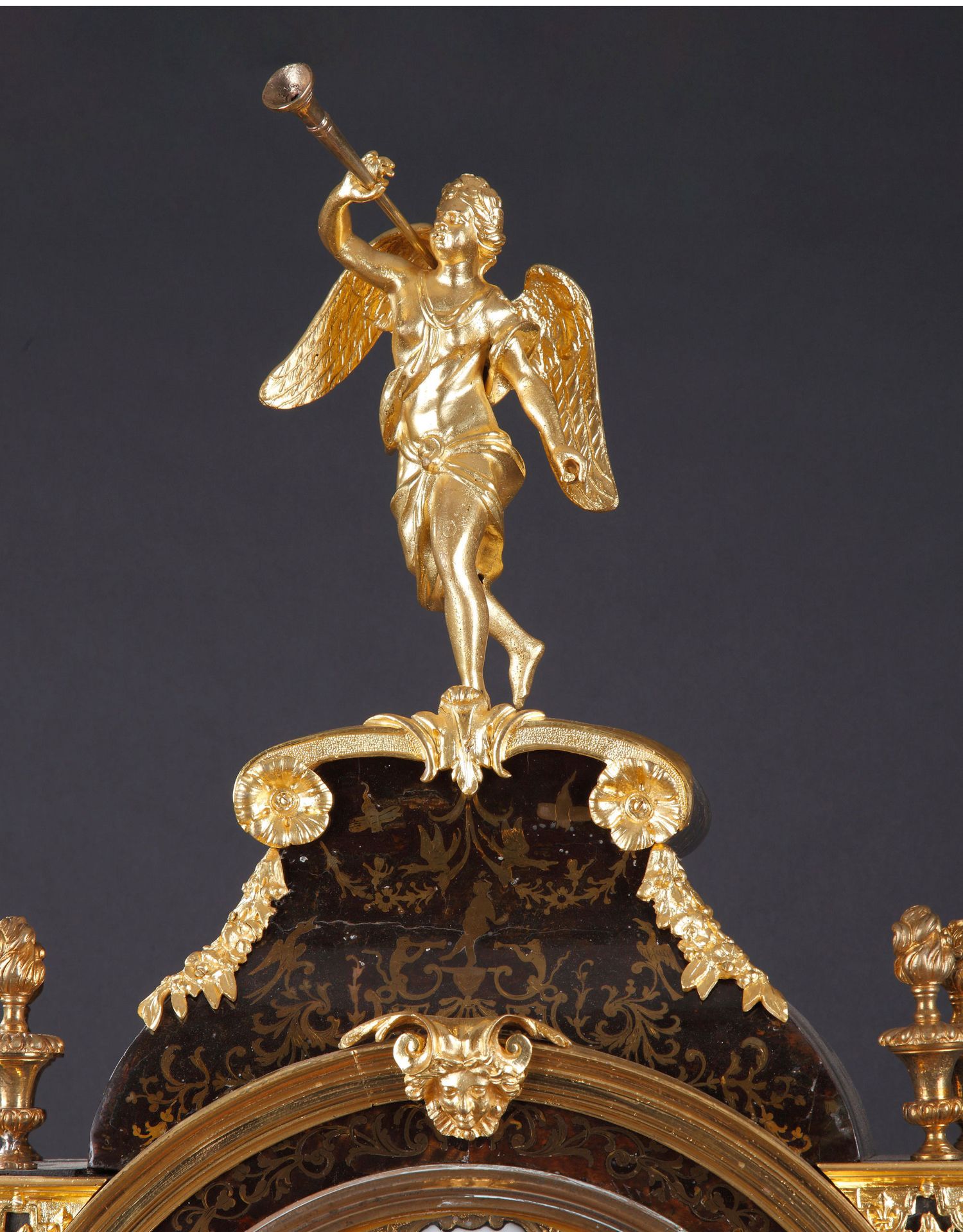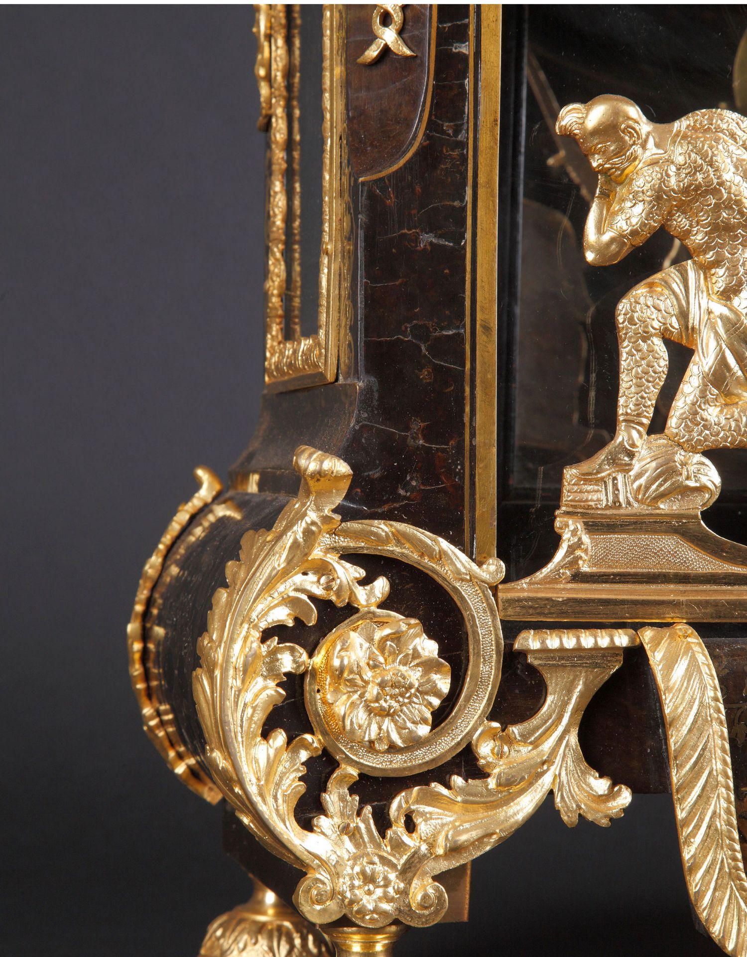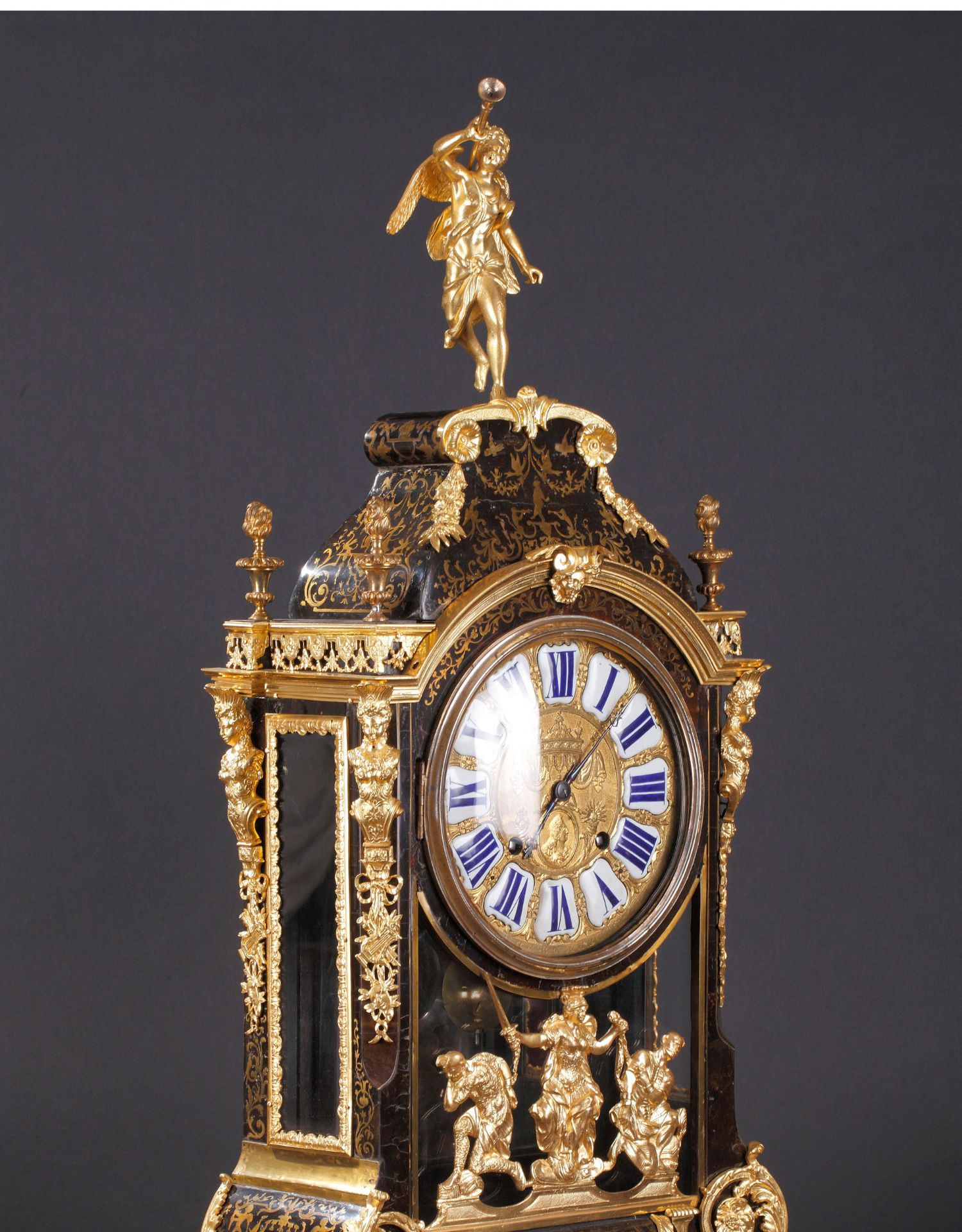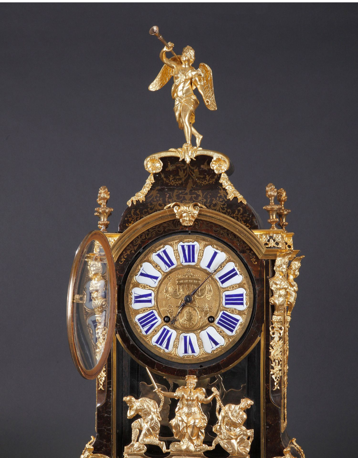 独角鹿西洋古董18世纪初法国路易十四时期铜鎏金布勒镶嵌座钟挂钟