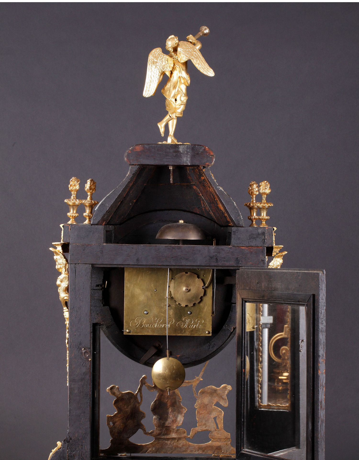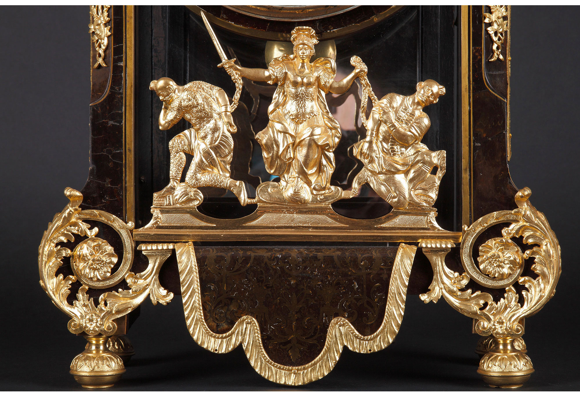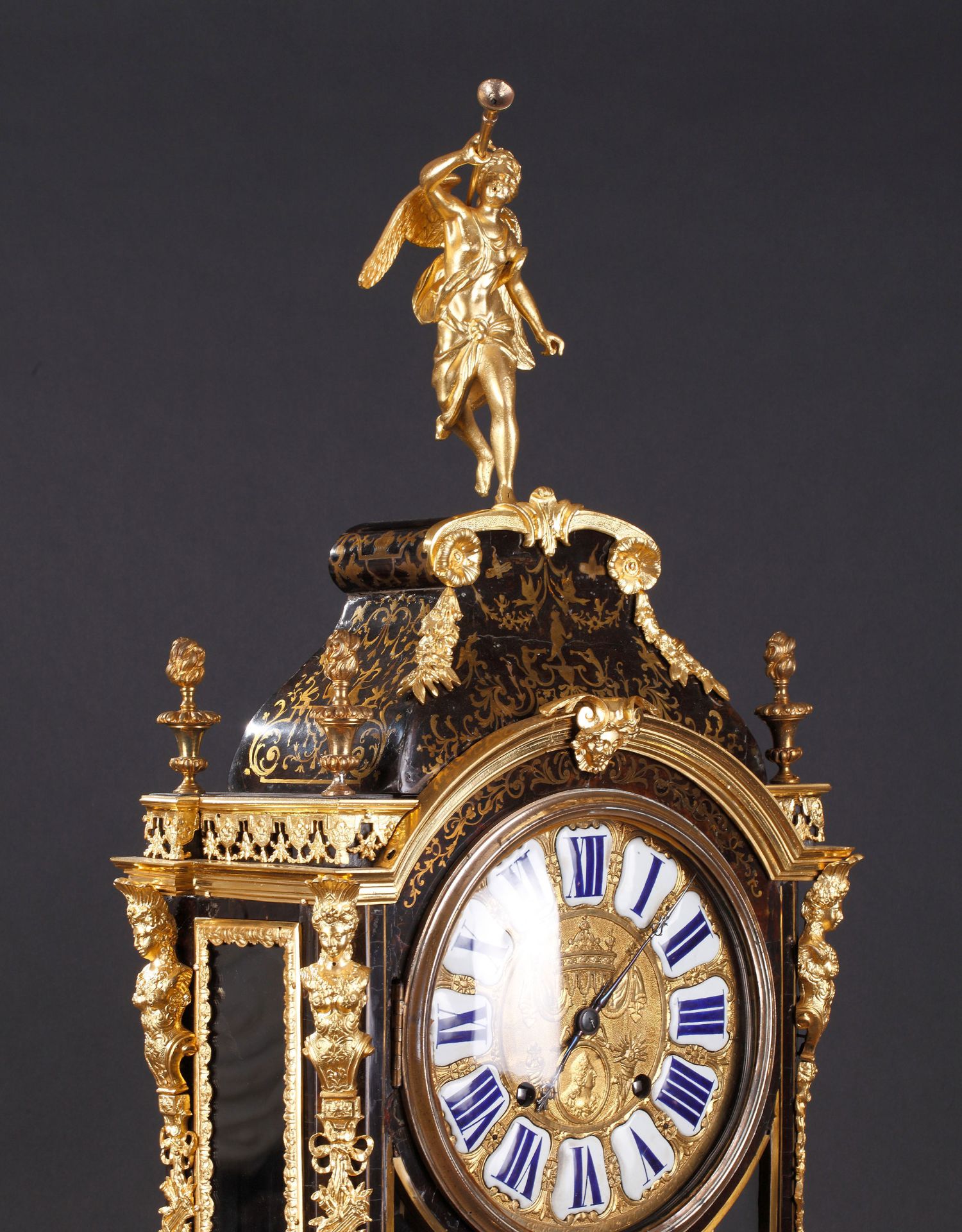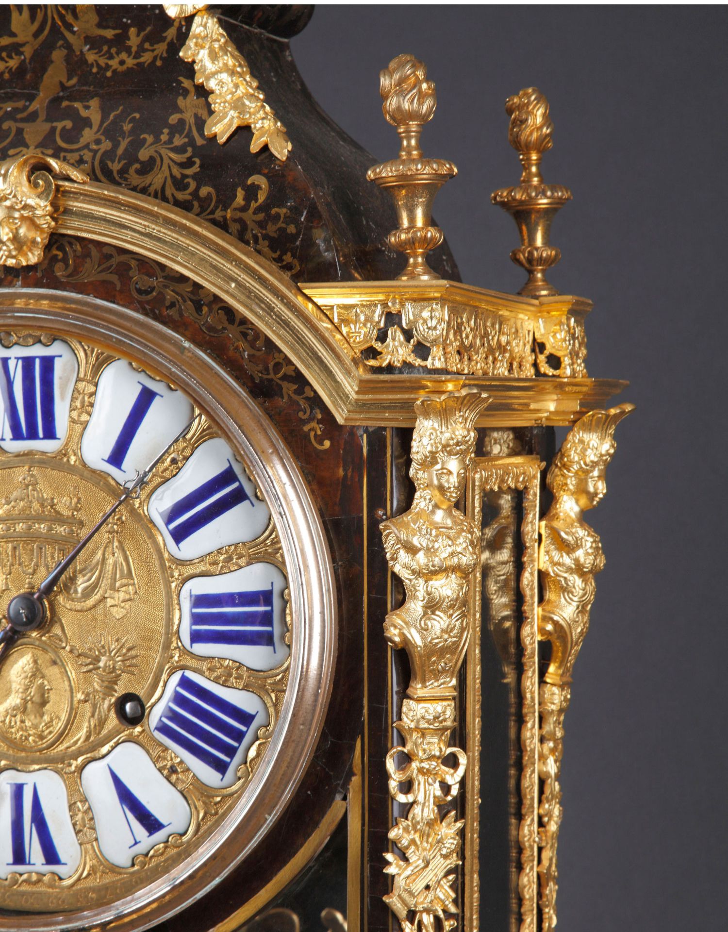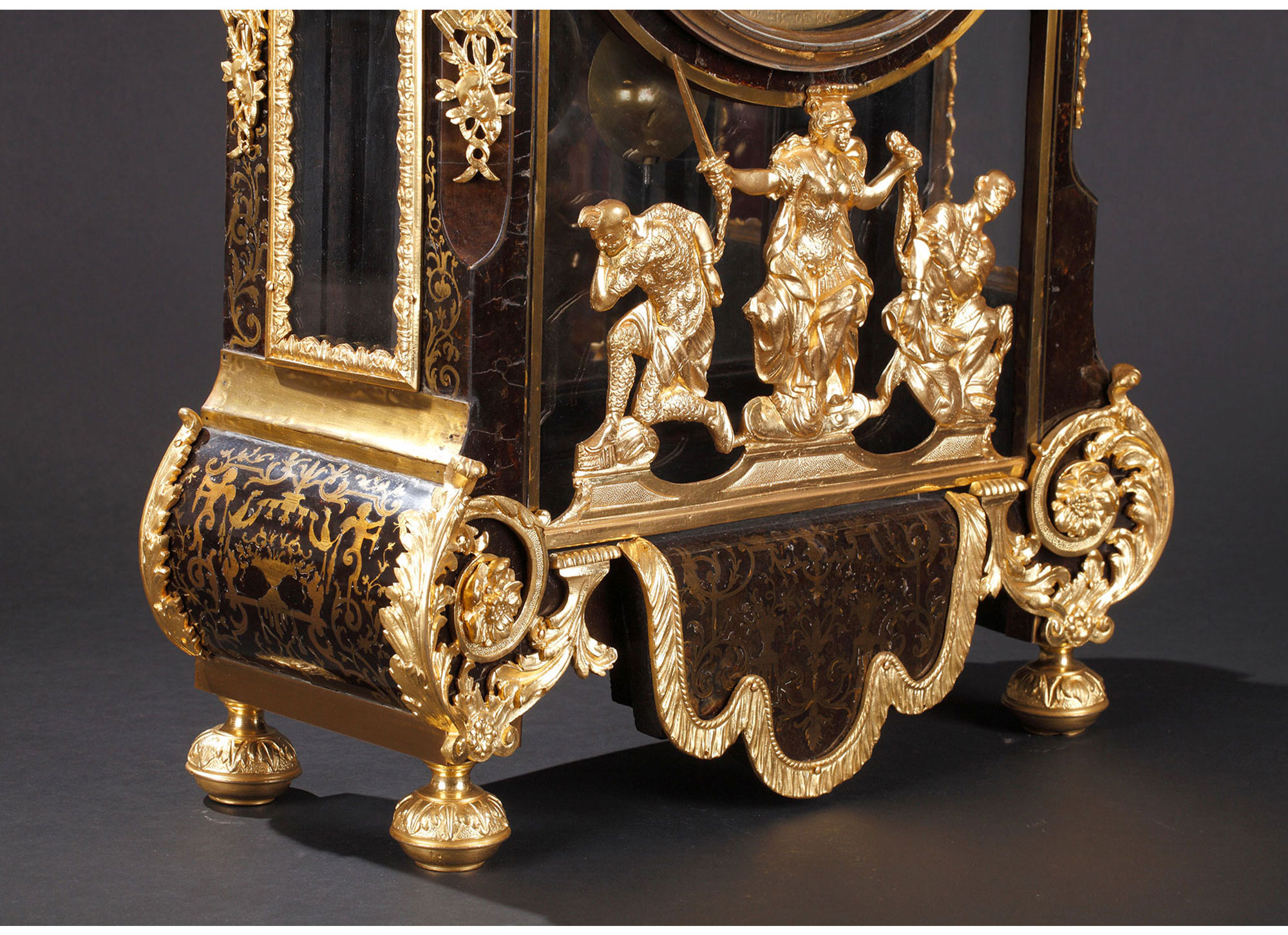 独角鹿西洋古董18世纪初法国路易十四时期铜鎏金布勒镶嵌座钟挂钟