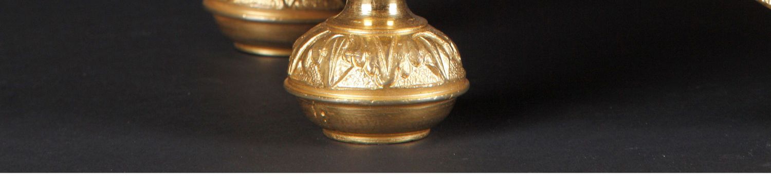 独角鹿西洋古董19世纪法国拿破仑三世时期法国著名金银器工坊ODIOT签名出品古典女神与天使主题铜镀银精雕双耳花器/餐桌中央摆件