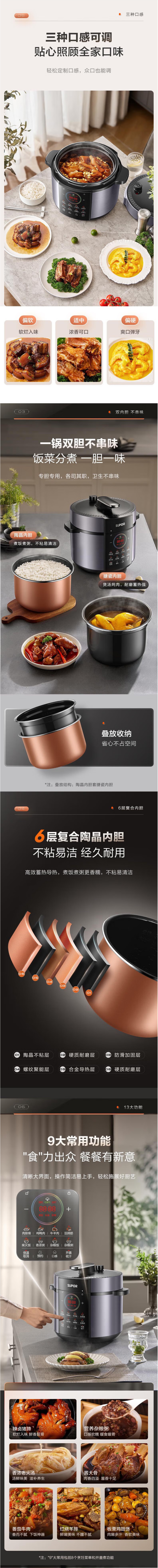 苏泊尔(SUPOR)电压力锅(510705)家用大容量双内胆多功能煮饭烹饪精准控温高压锅智能预约 SY-50YC588【双胆】 5L