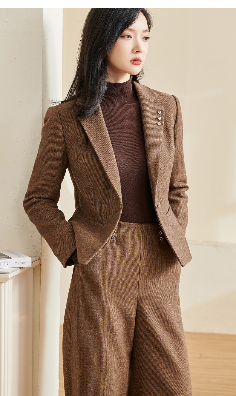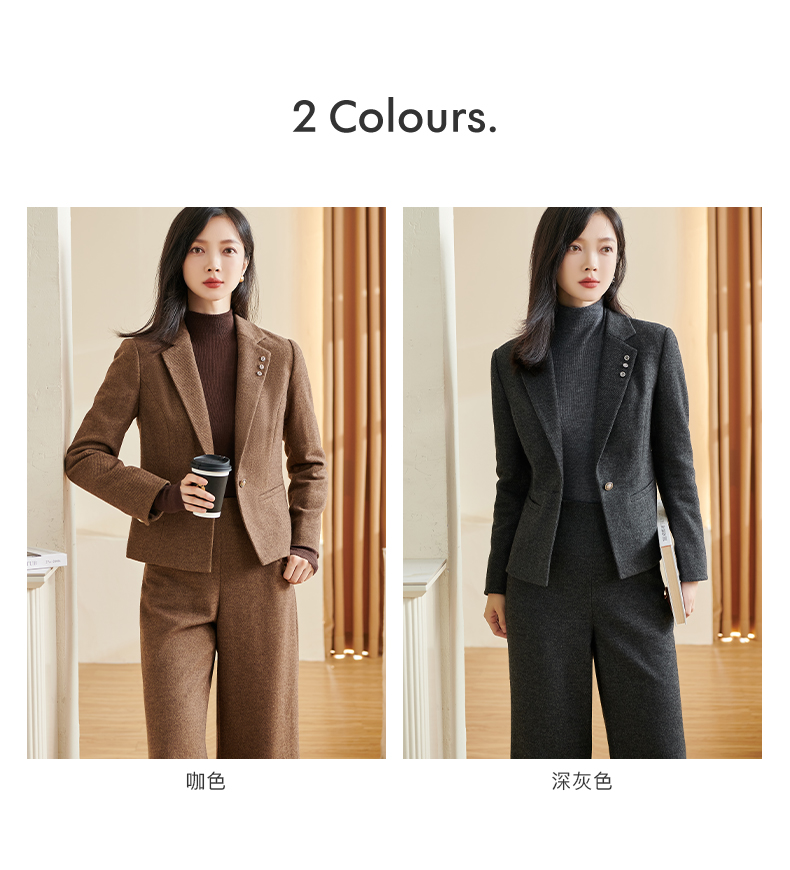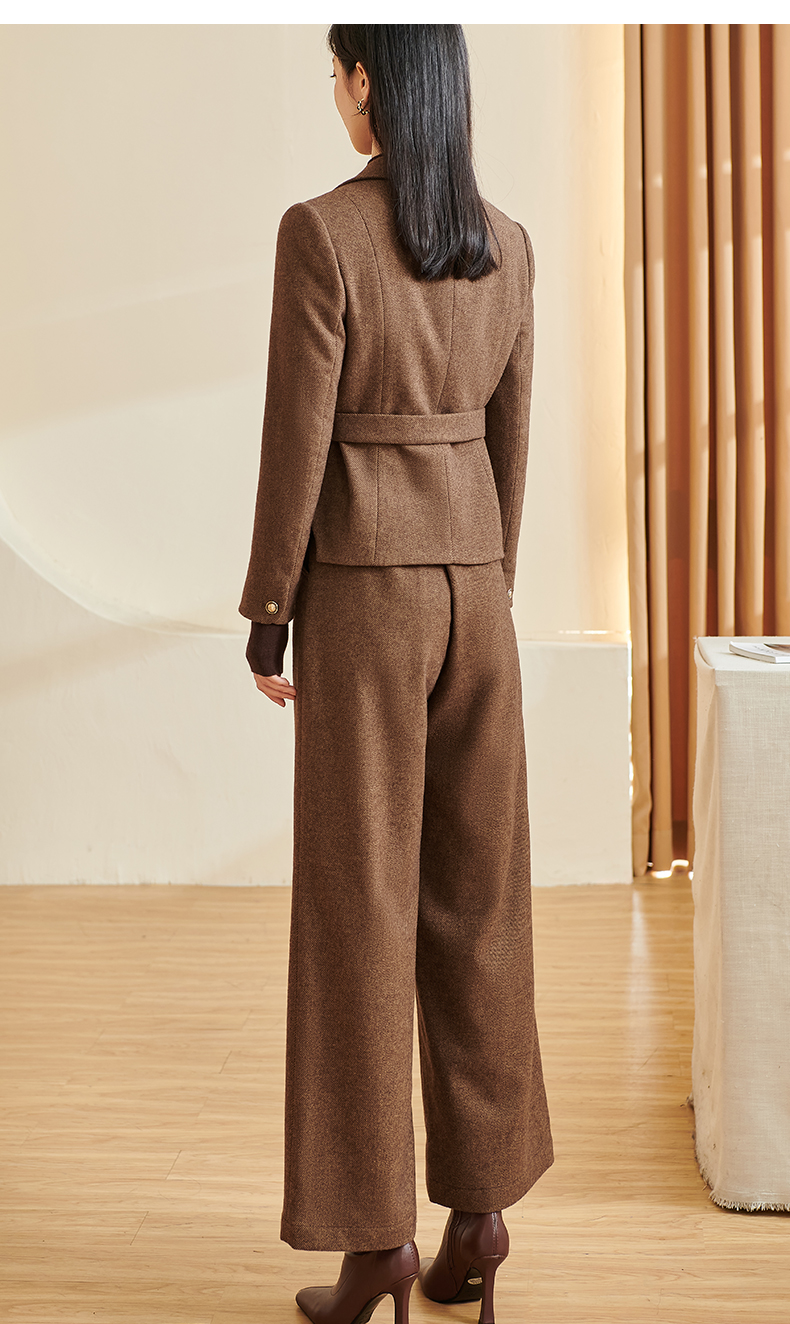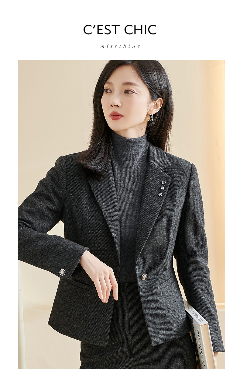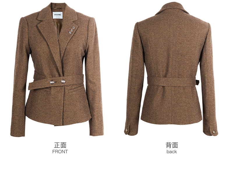 剩S/M/XXL 米思阳2025冬季新款通勤高级感细羊毛西装腰带一粒扣短款外套女厚 3278