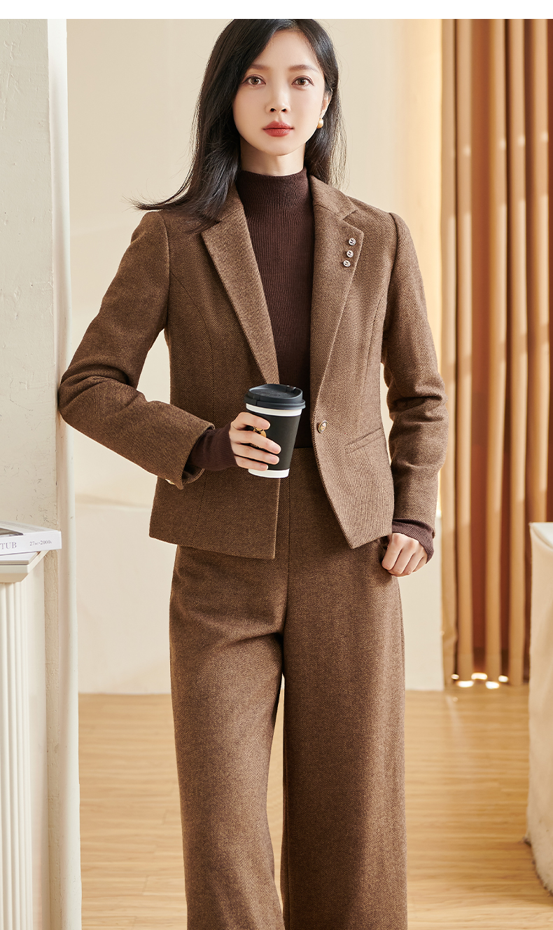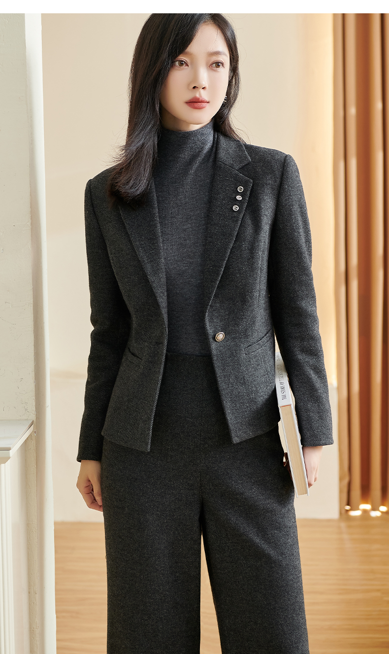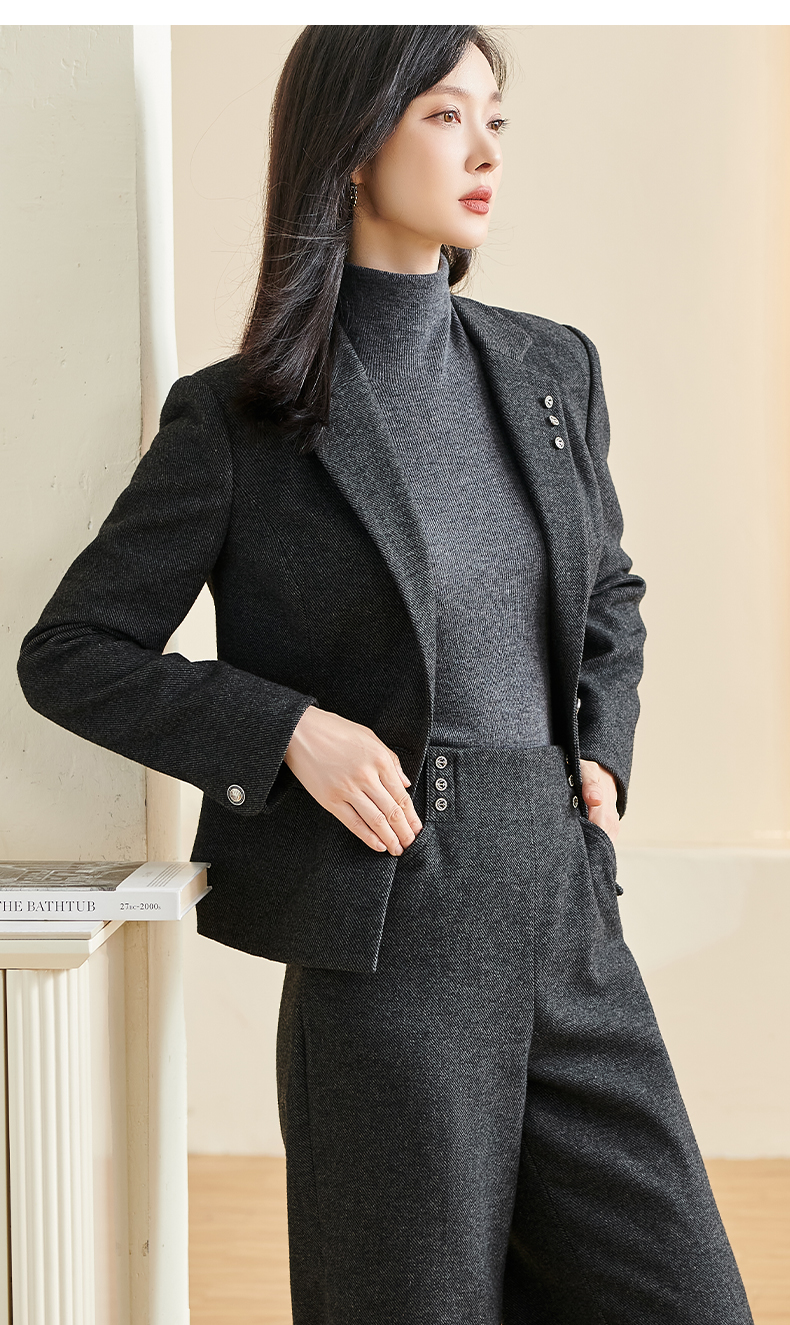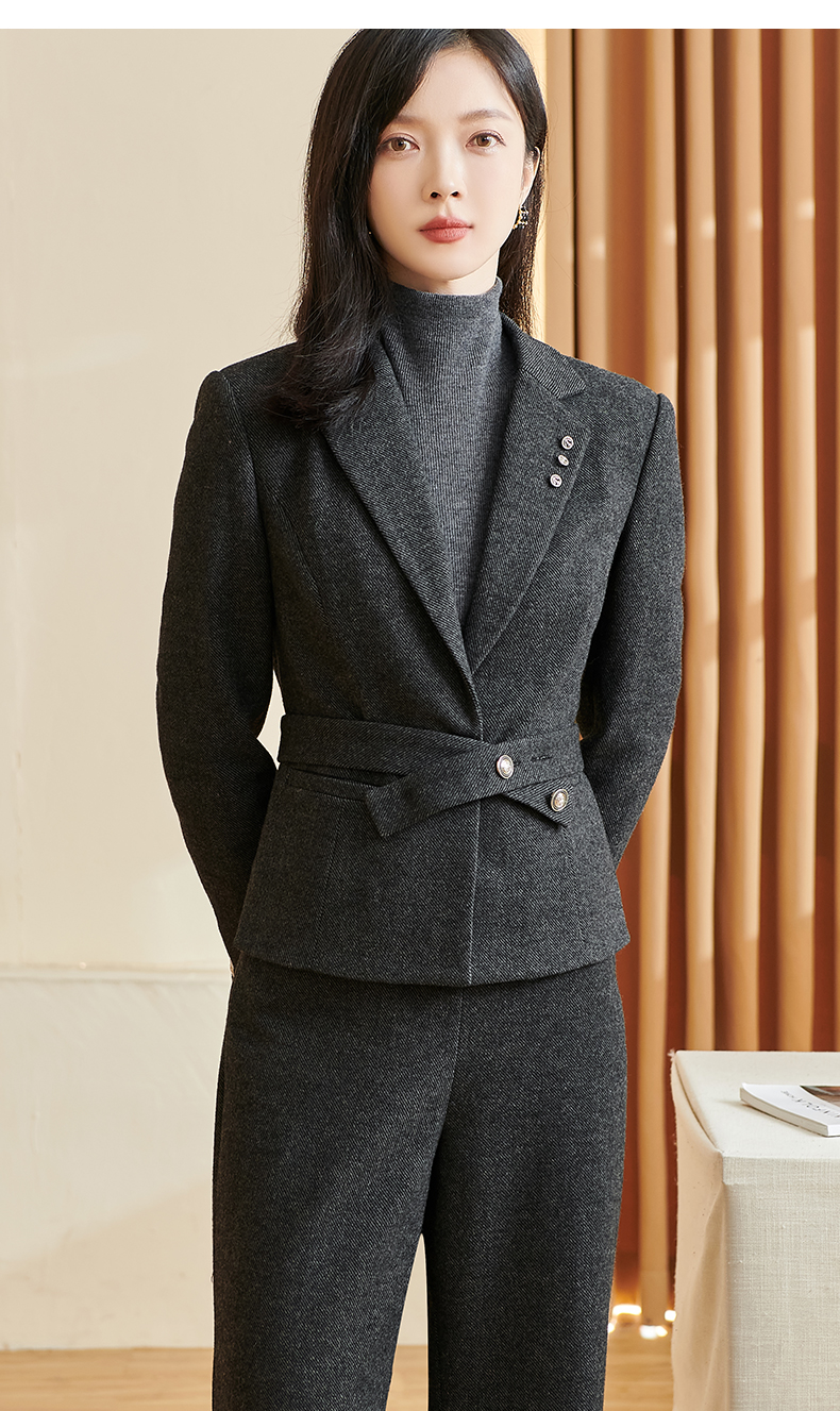 剩S/M/XXL 米思阳2025冬季新款通勤高级感细羊毛西装腰带一粒扣短款外套女厚 3278