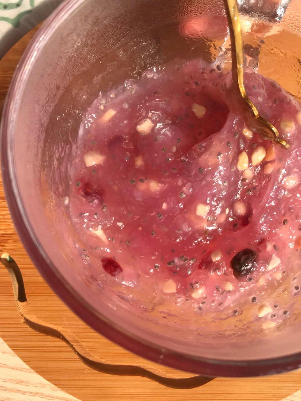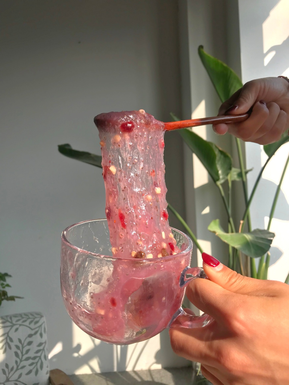 入口有藕粉的滑嫩,以及坚果的颗粒感,以及果干的甜酸,口感丰富无比。