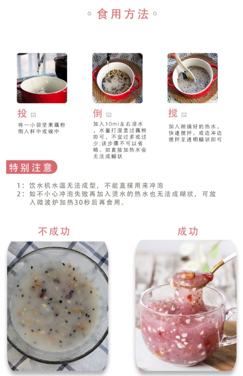 2:如不小心冲泡失败再加入烫水的热水也无法成糊状,可放