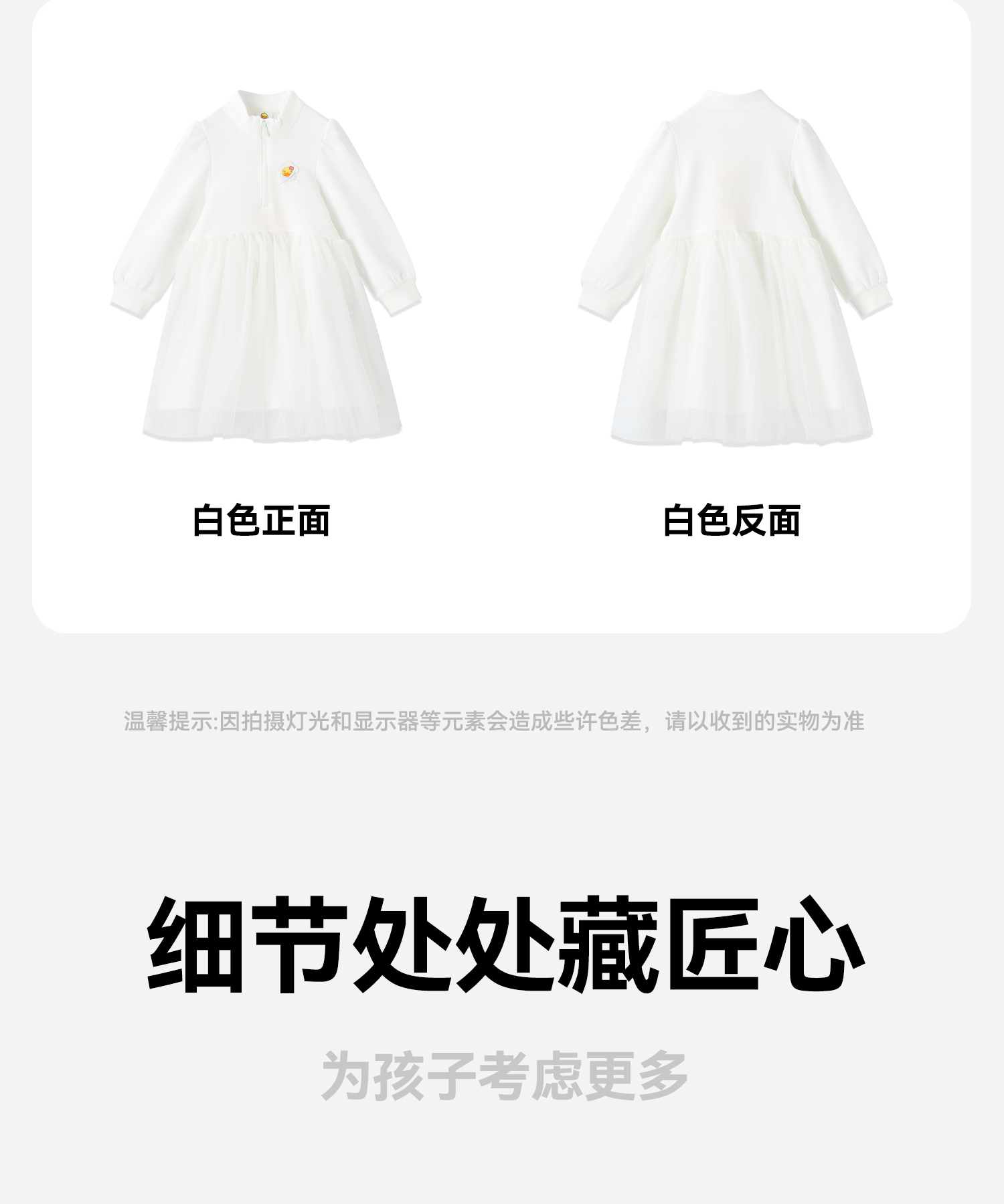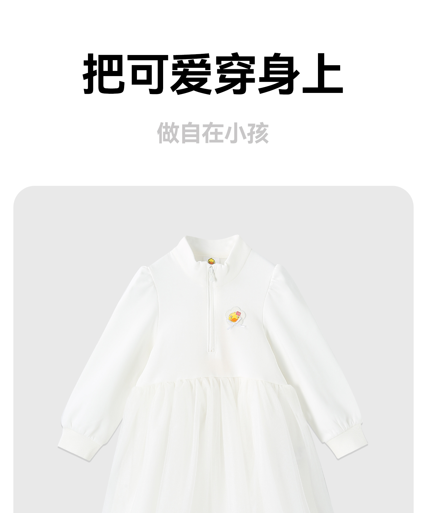 【专柜同款】B.Duck小黄鸭童装女童连衣裙春秋公主裙女孩网纱裙子105-150 BDF3580938
