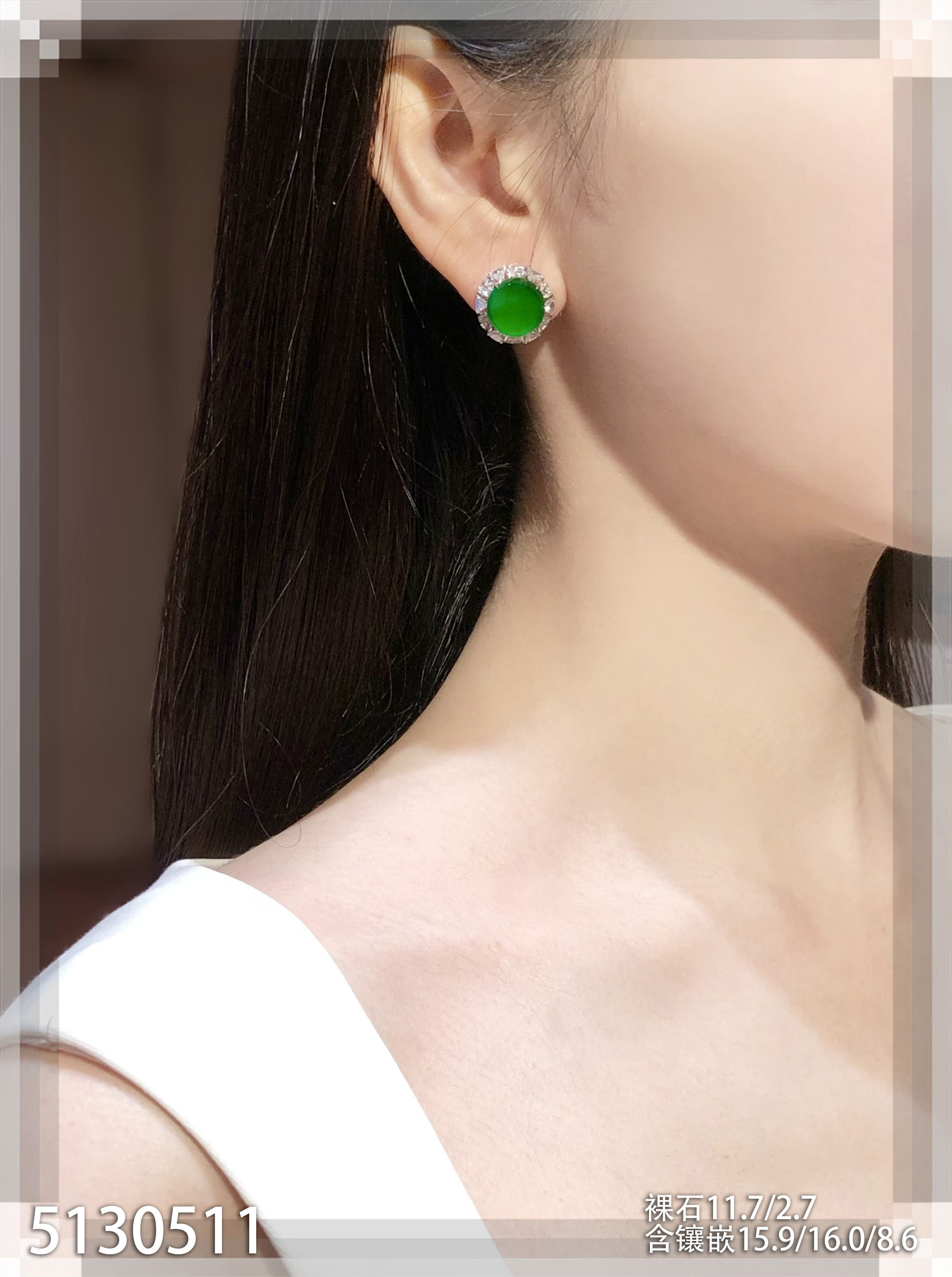 艳绿圆牌耳坠【5130511】具体价格微信咨询