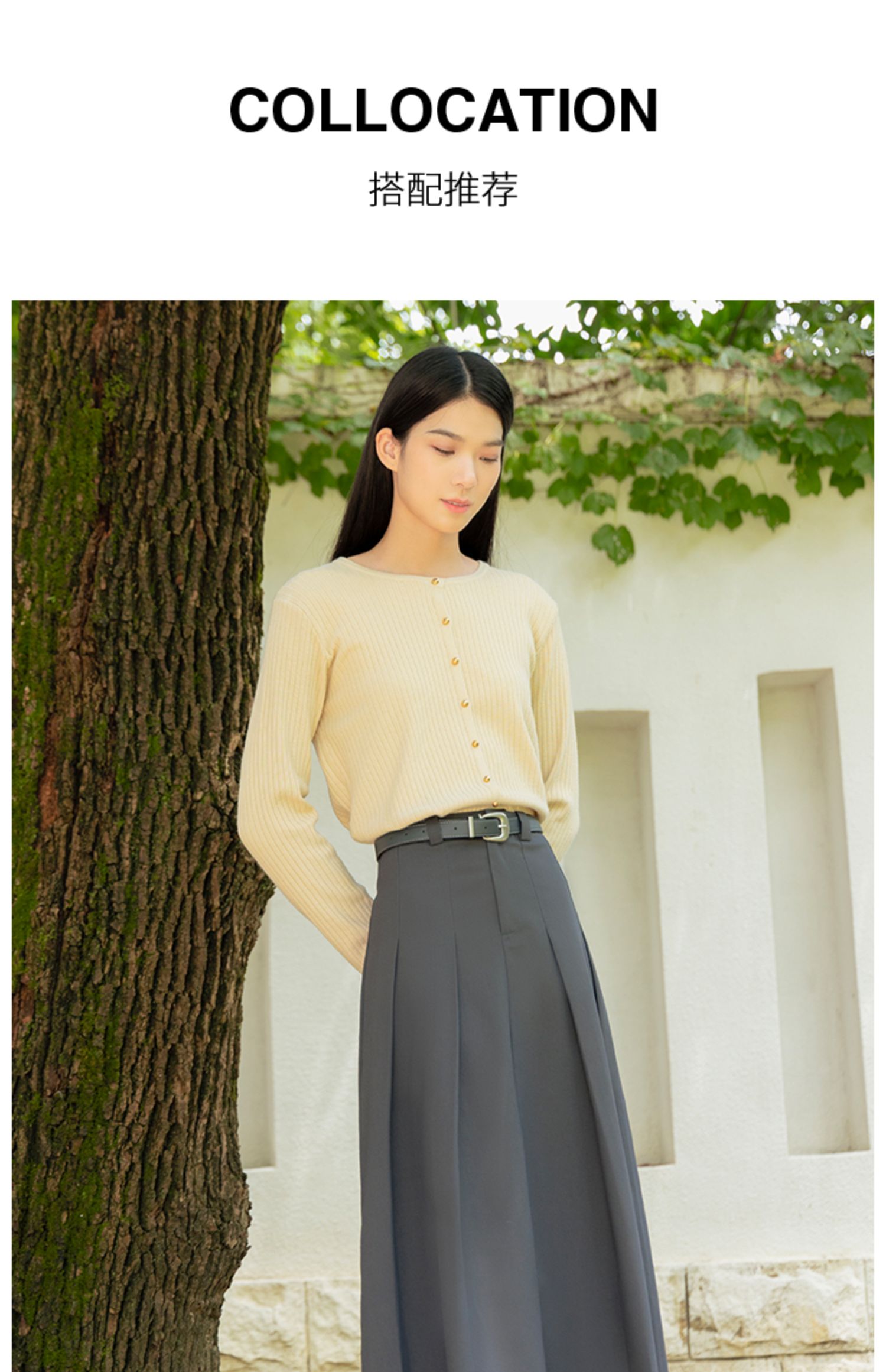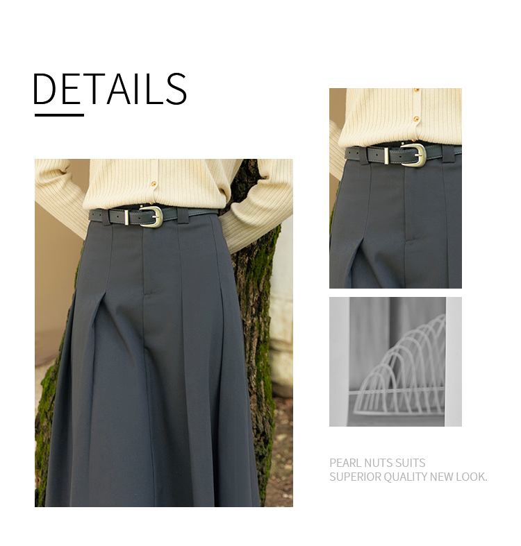 NUTS2023秋季新款西装半身裙女中长款高腰气质百褶A字裙4350603A1
