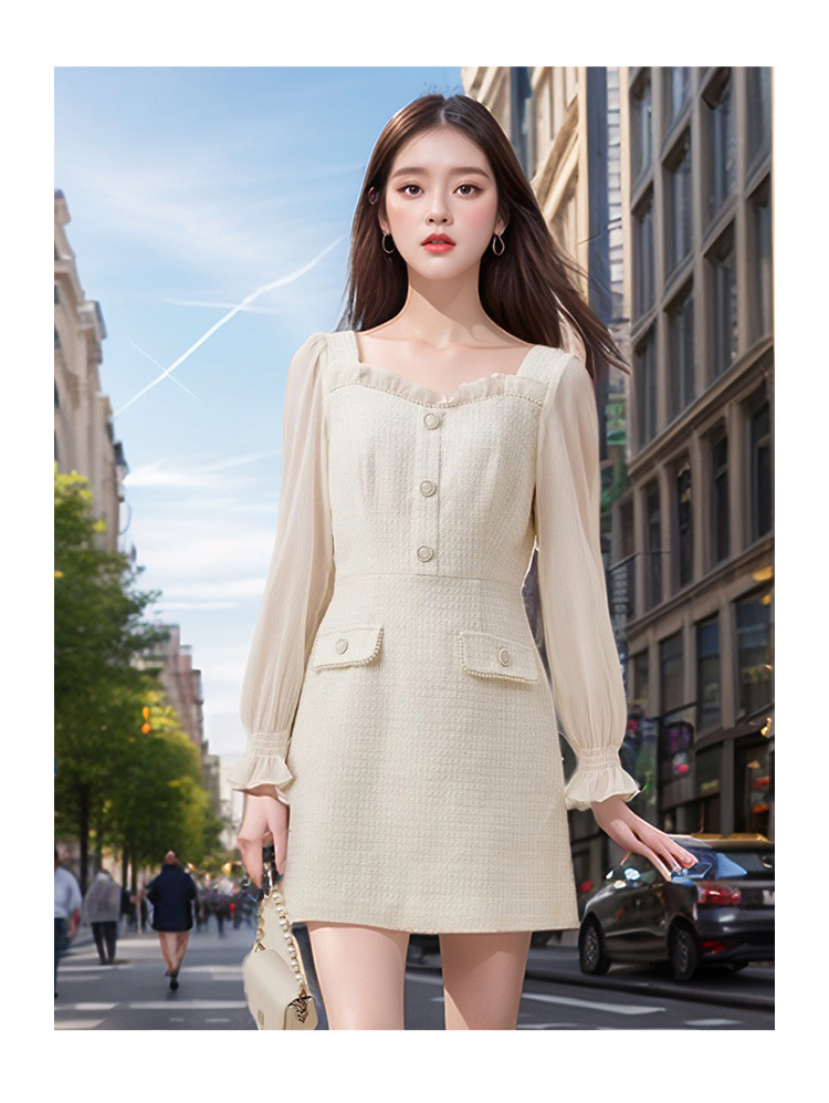 奢姿大码女装2024秋季减龄木耳边时尚方领连衣裙胖妹妹喇叭袖裙子9943855574