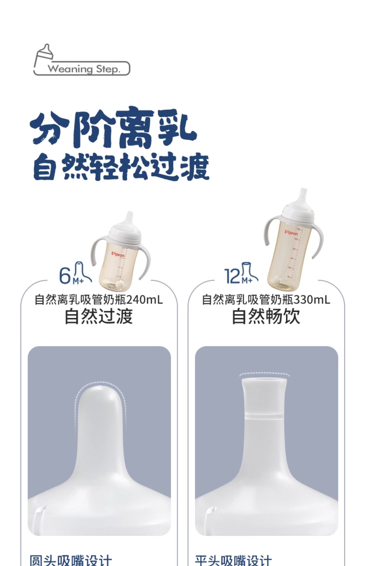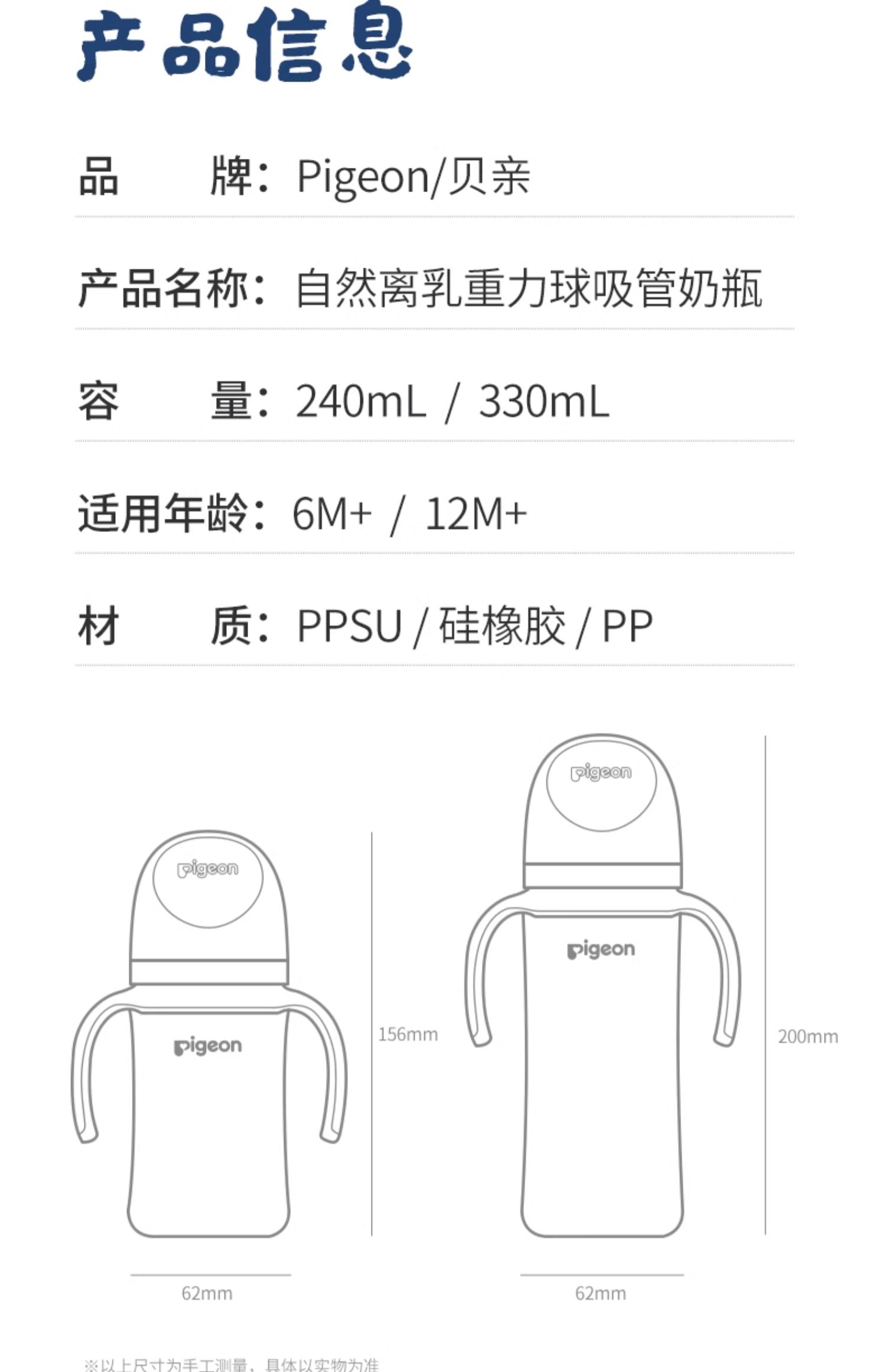 贝亲 新品自然离乳PPSU重力球吸管杯双把手奶瓶奶嘴6个月1岁宝宝240ml/330ml/PIG-AA252/PIG-AA253