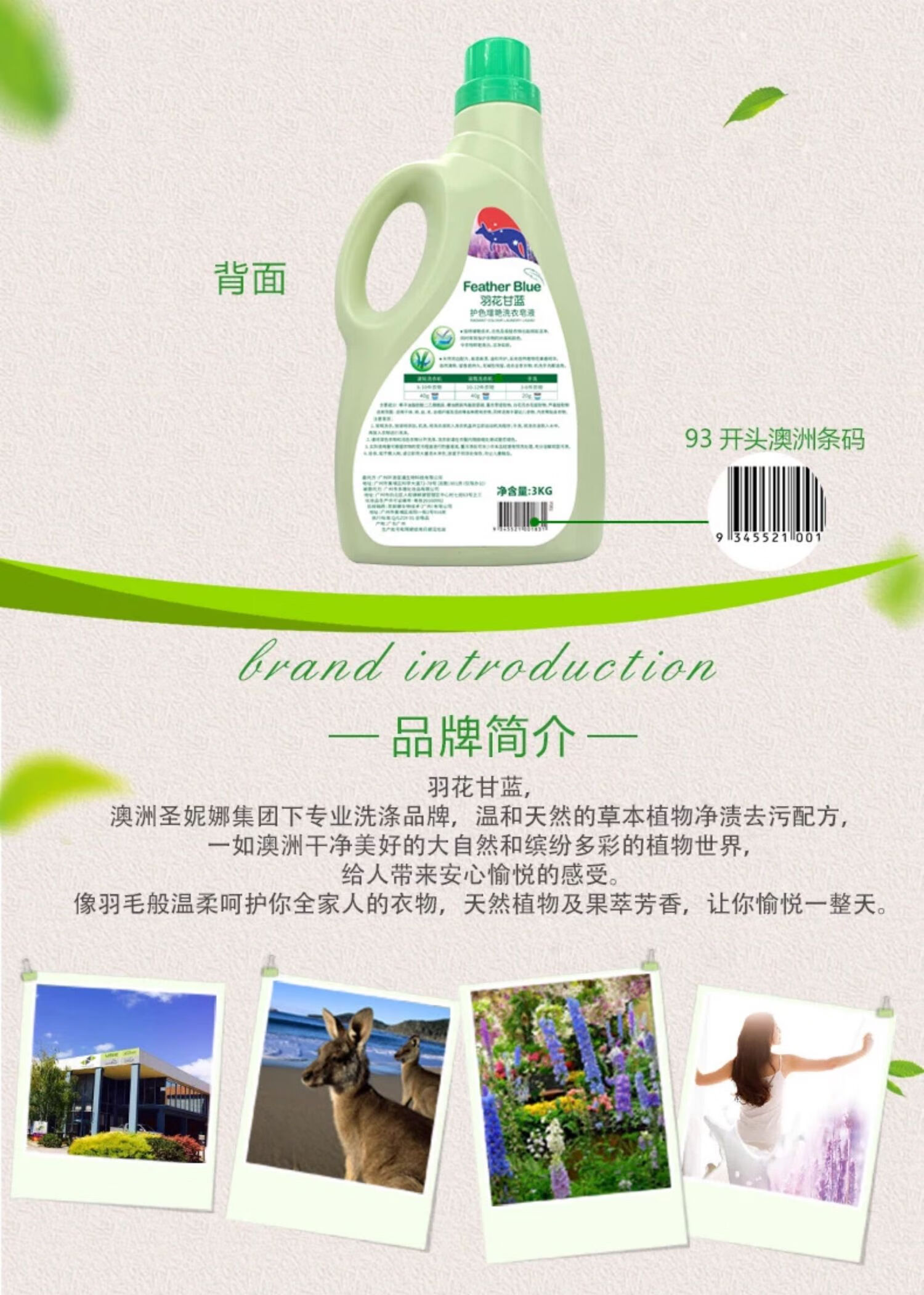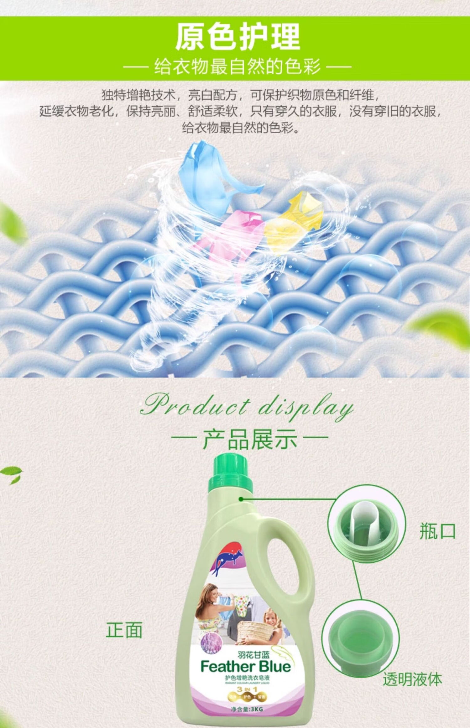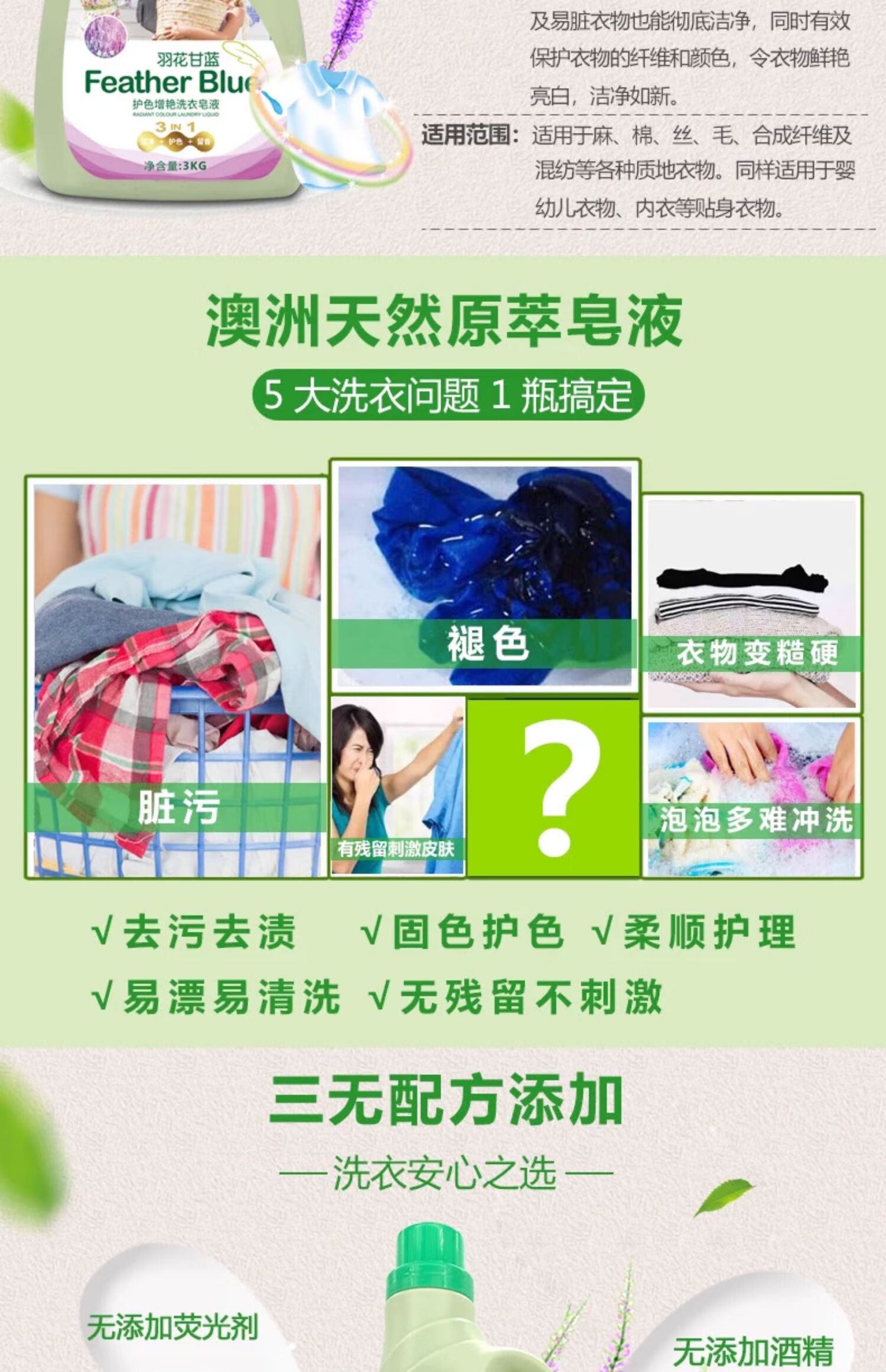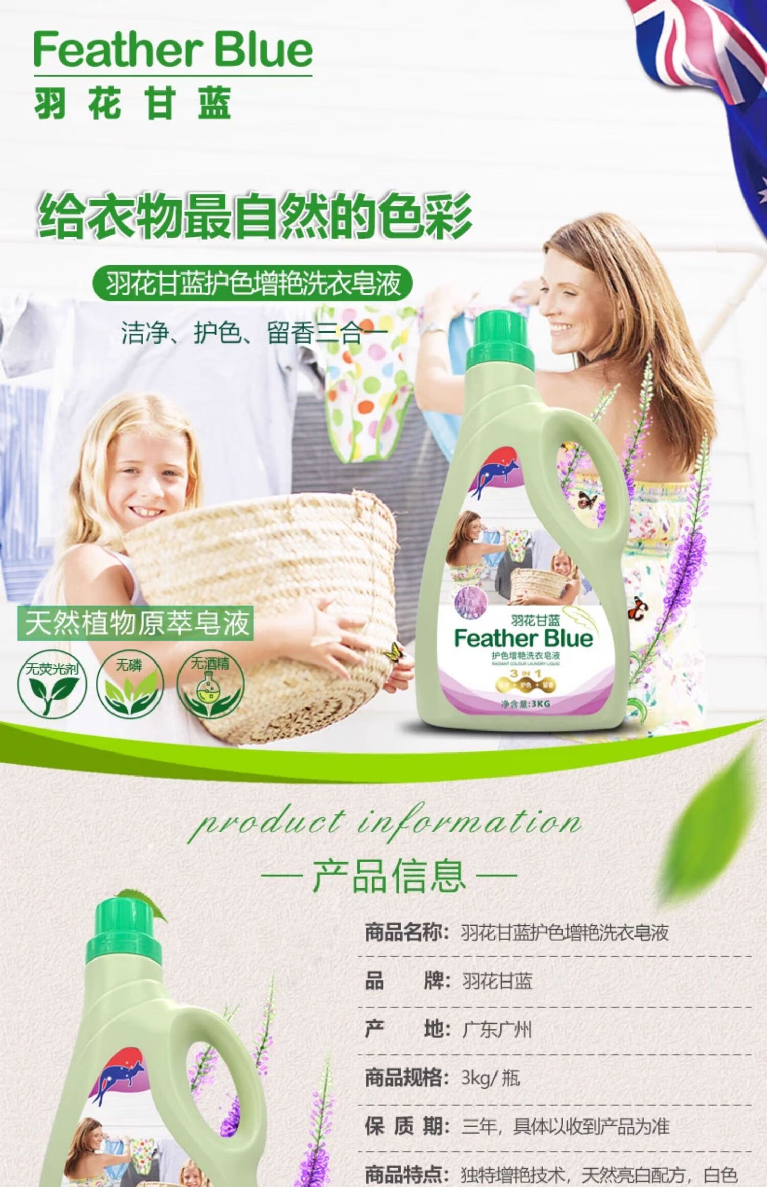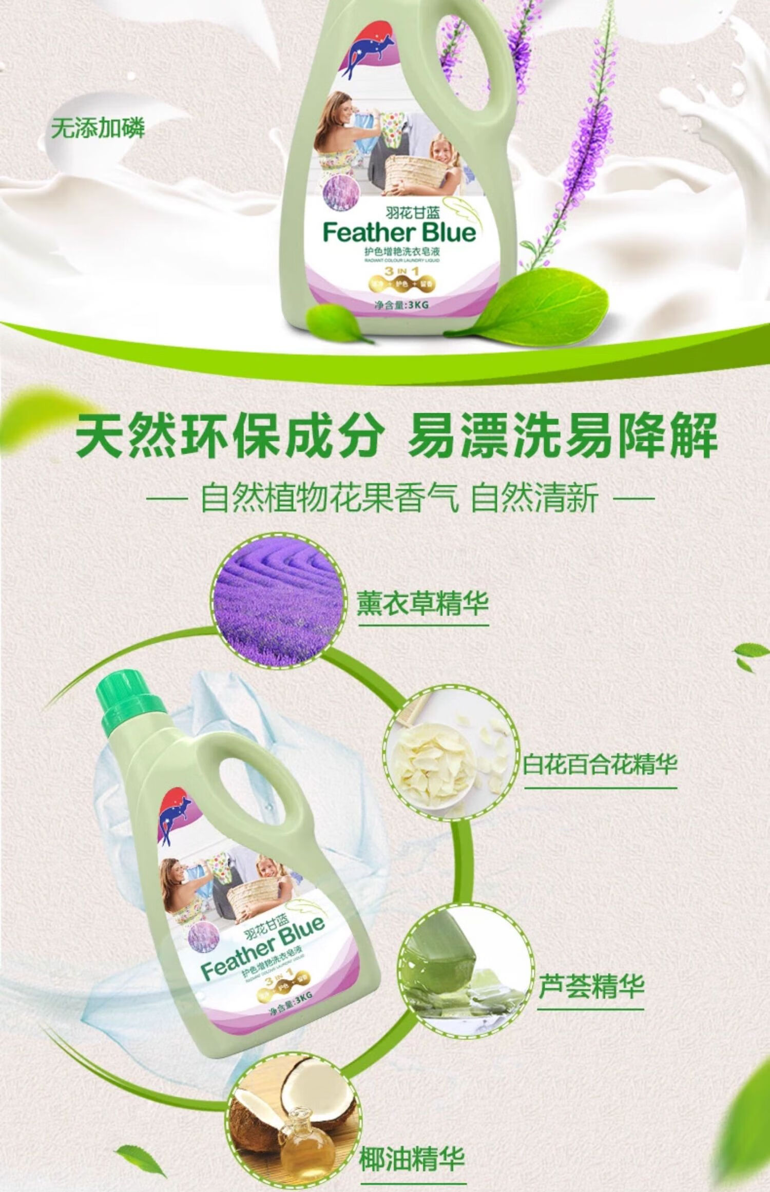 羽花甘蓝护色增艳洗衣皂液3L(薰衣草味)