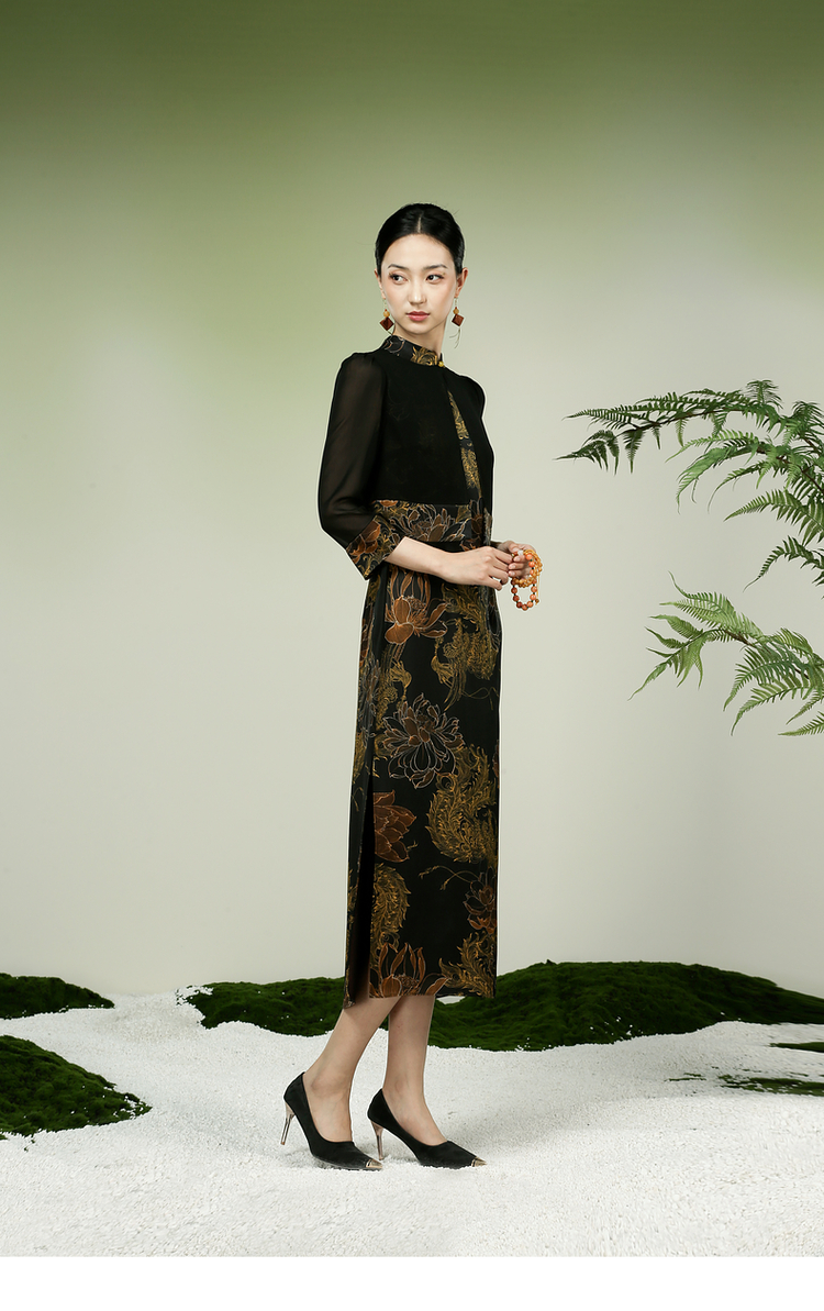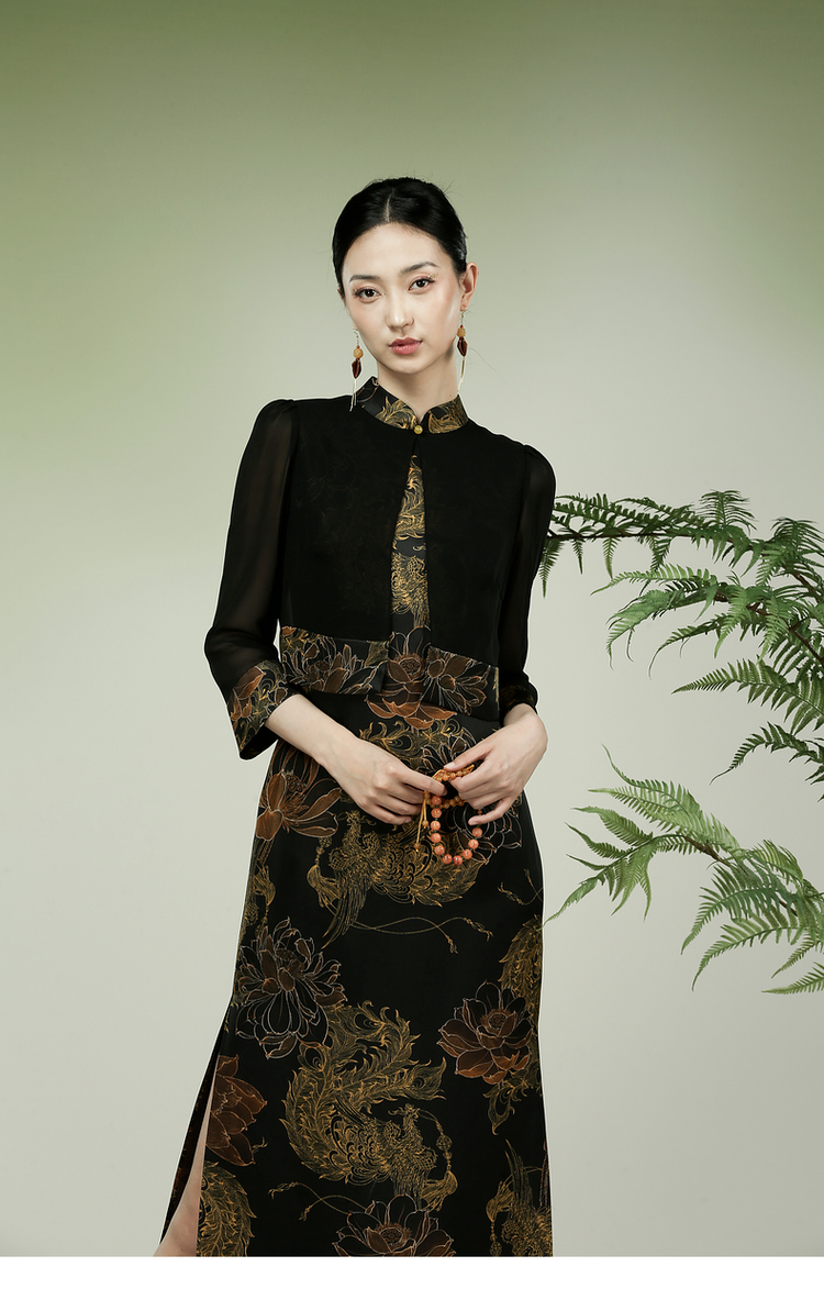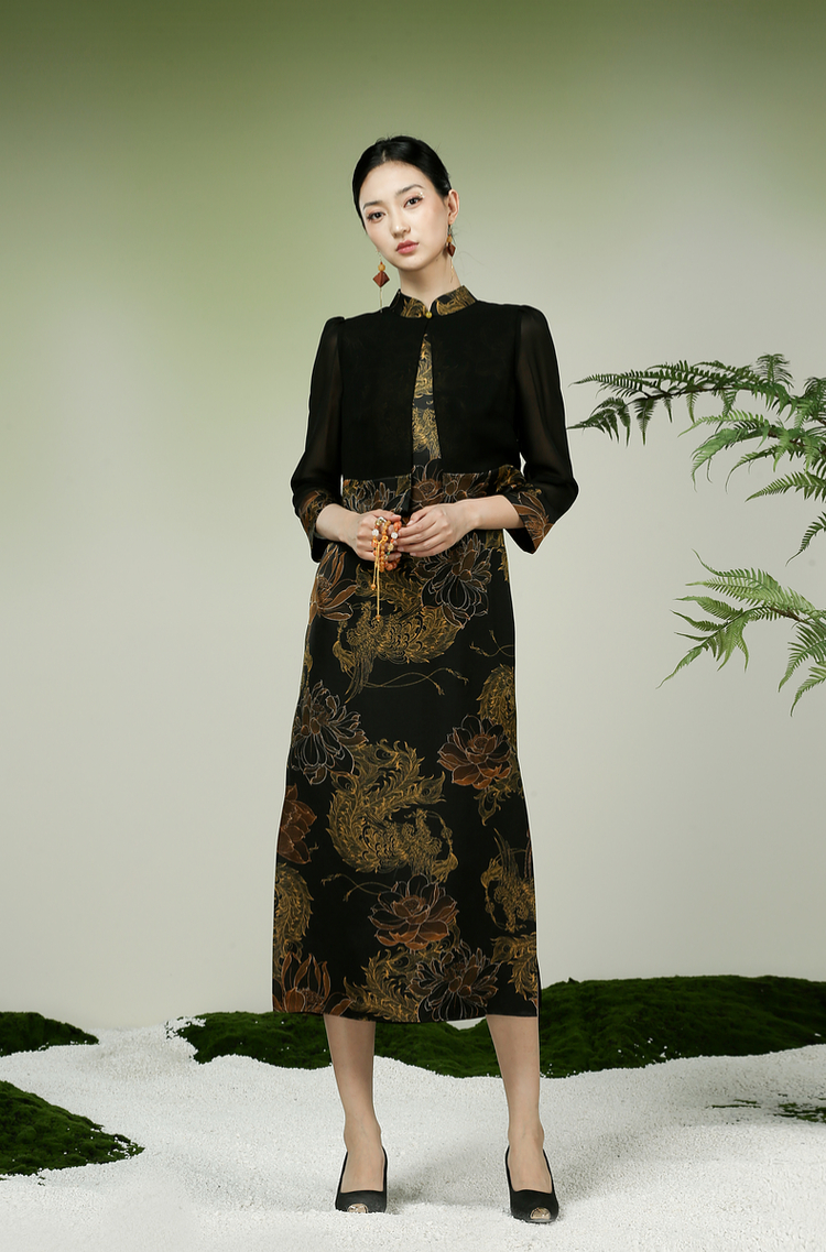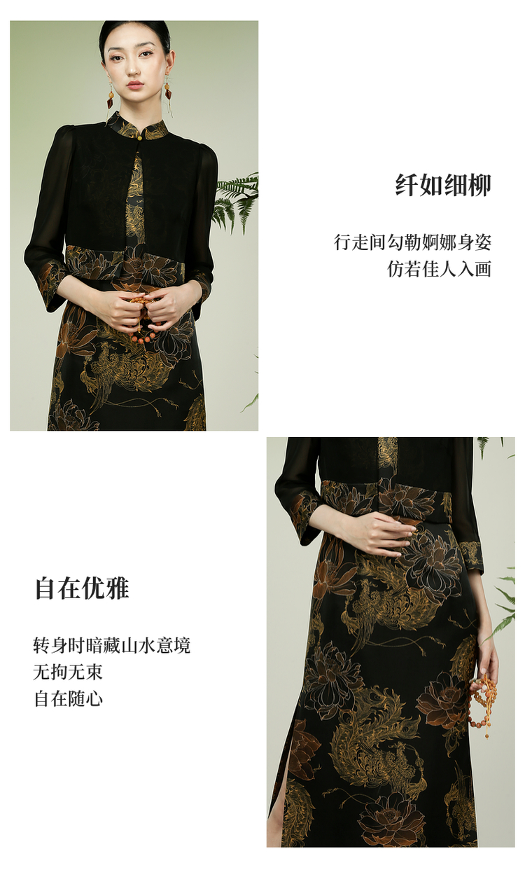 吉祥衣家新中式国风春夏新款高端气质显瘦修身女装凤舞荷韵连衣裙
