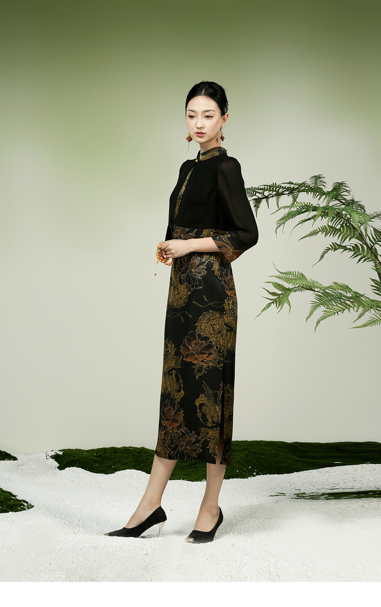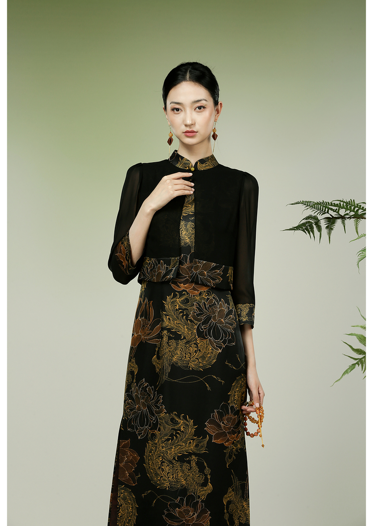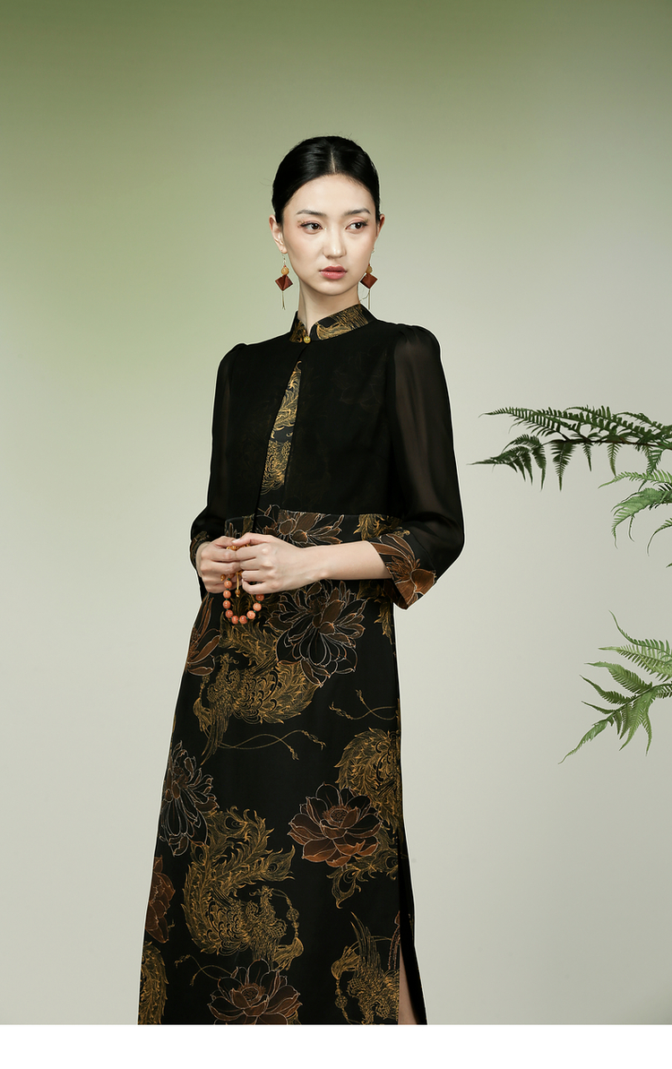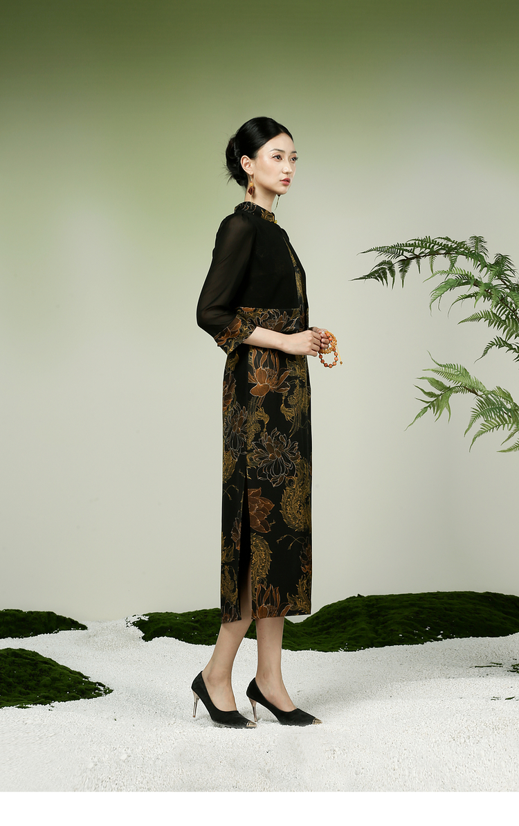 吉祥衣家新中式国风春夏新款高端气质显瘦修身女装凤舞荷韵连衣裙