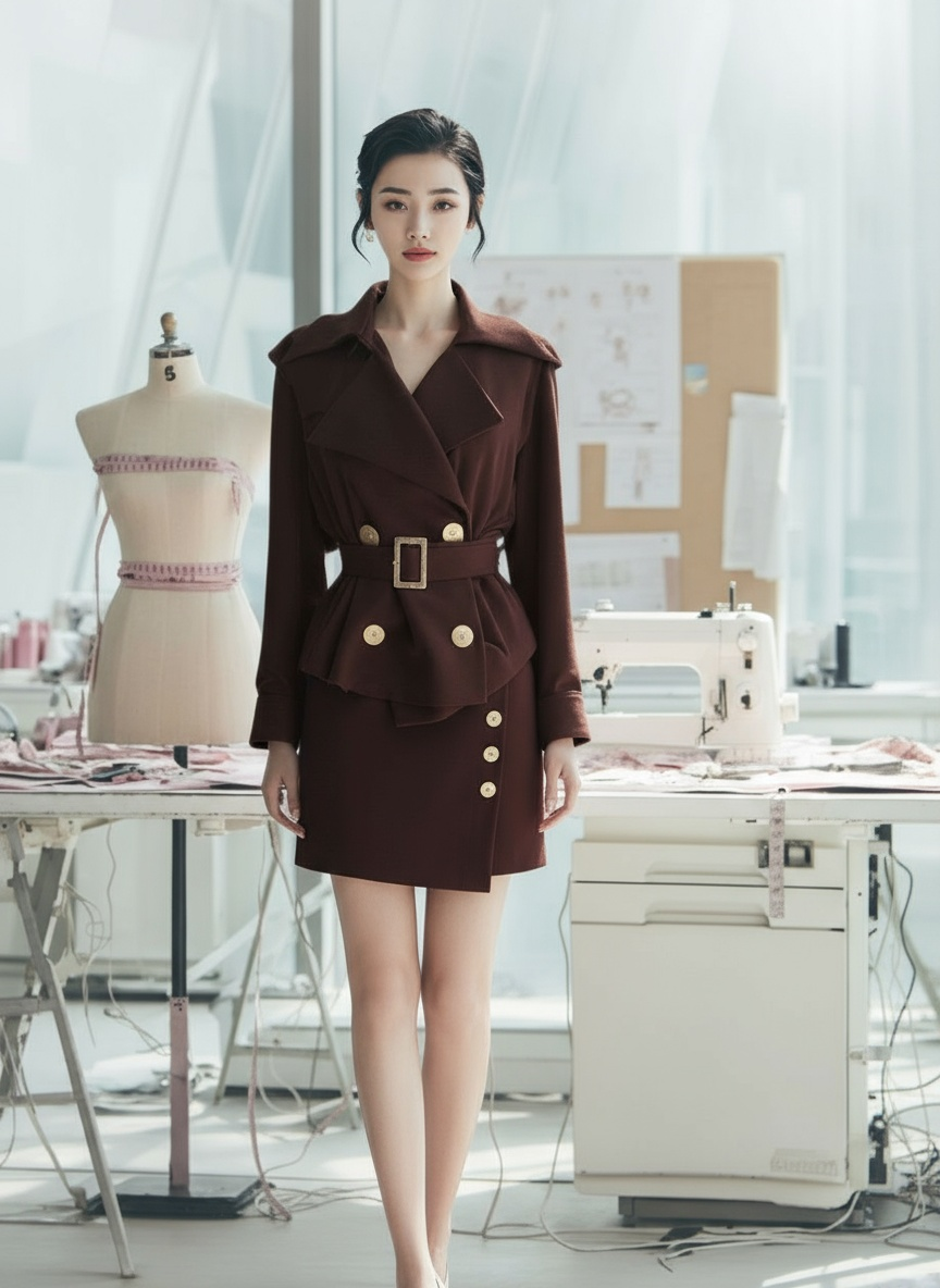 商品:HN 高腰松紧摆袖捏褶不对称飞片外套(附腰带)