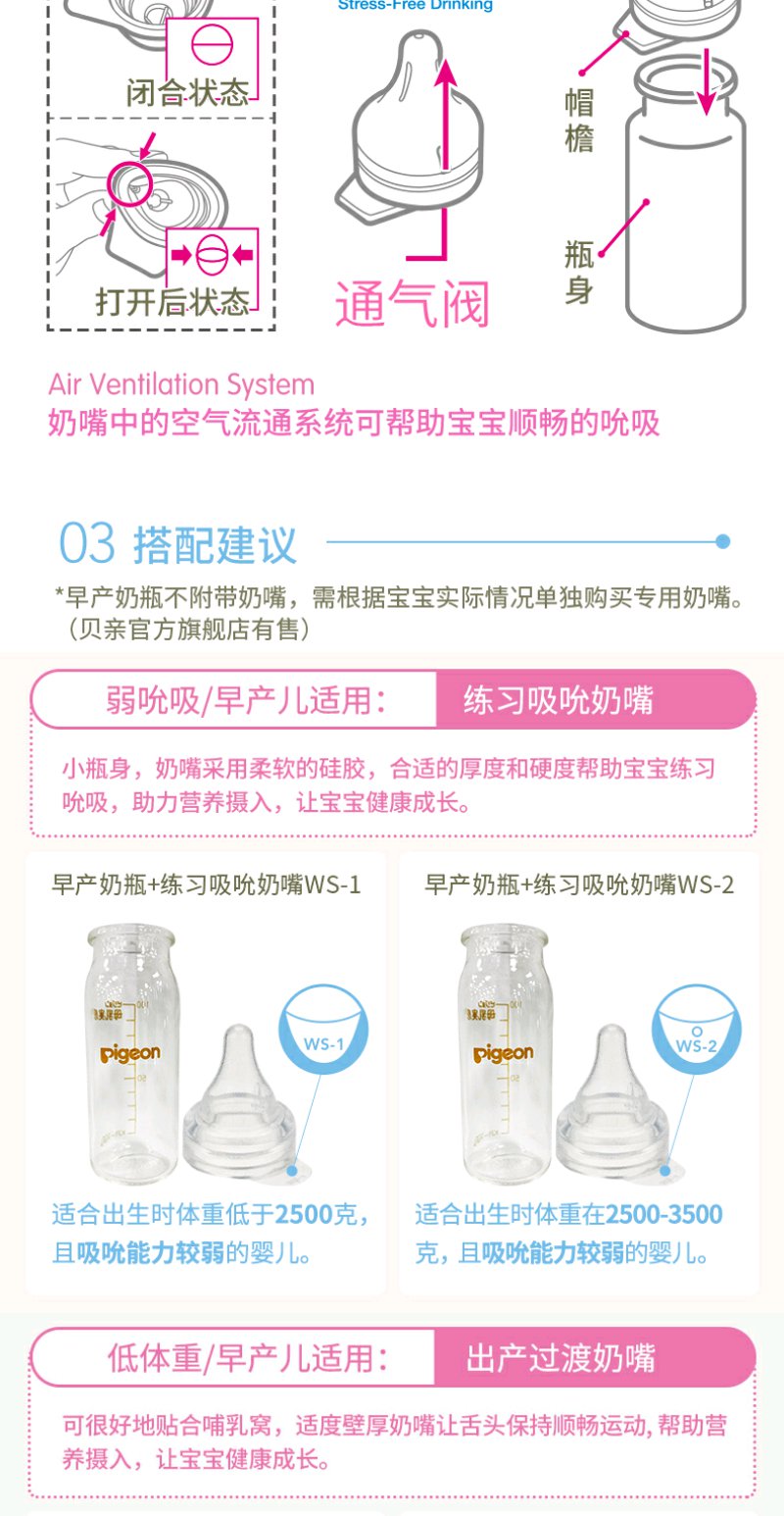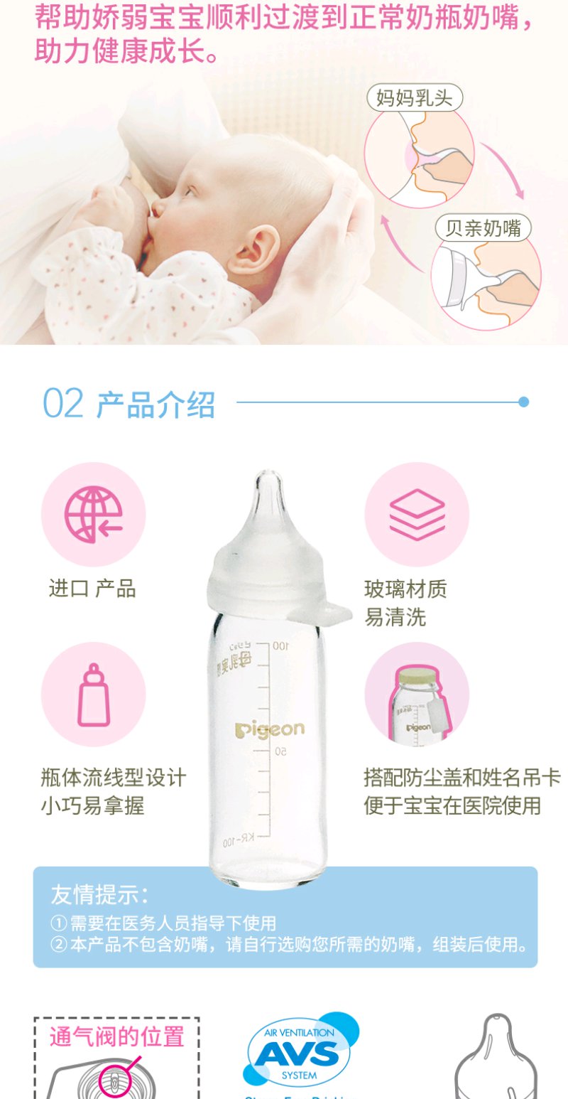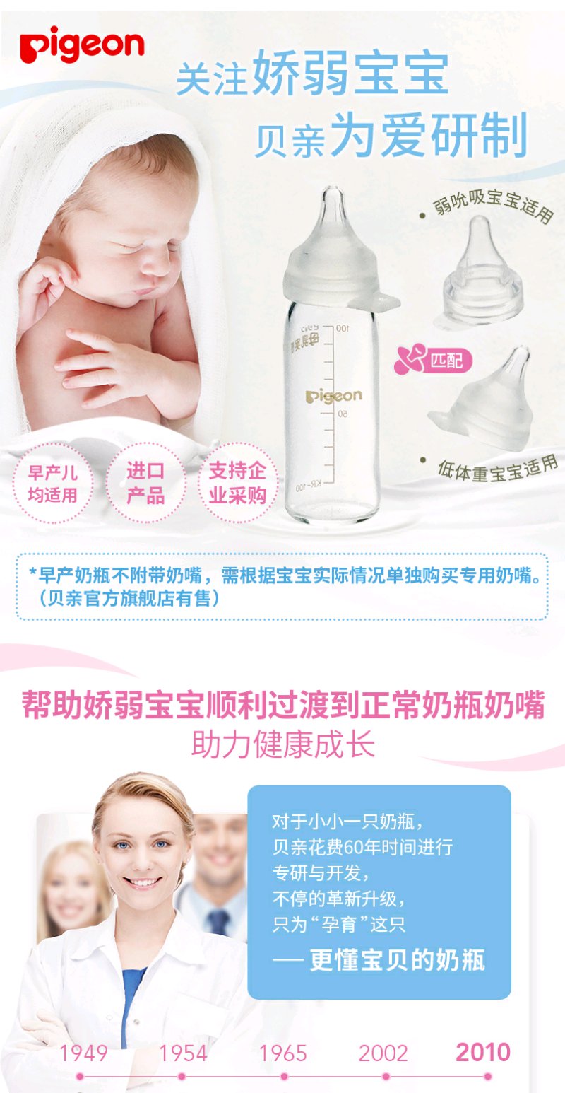 贝亲早产儿玻璃奶瓶100ML练习吸吮奶嘴/PIG-AA122/PIG-BA112