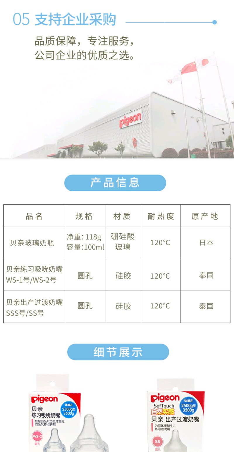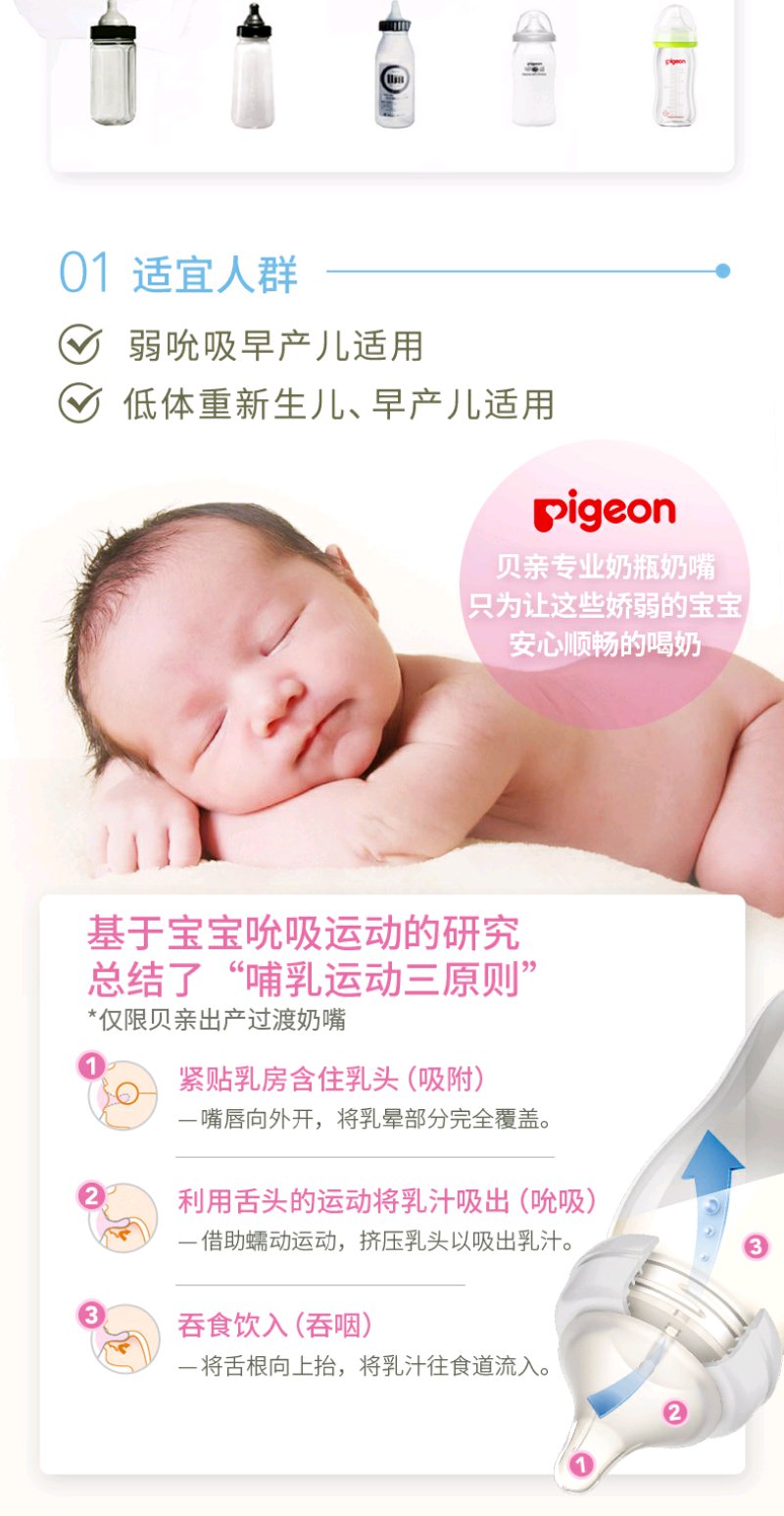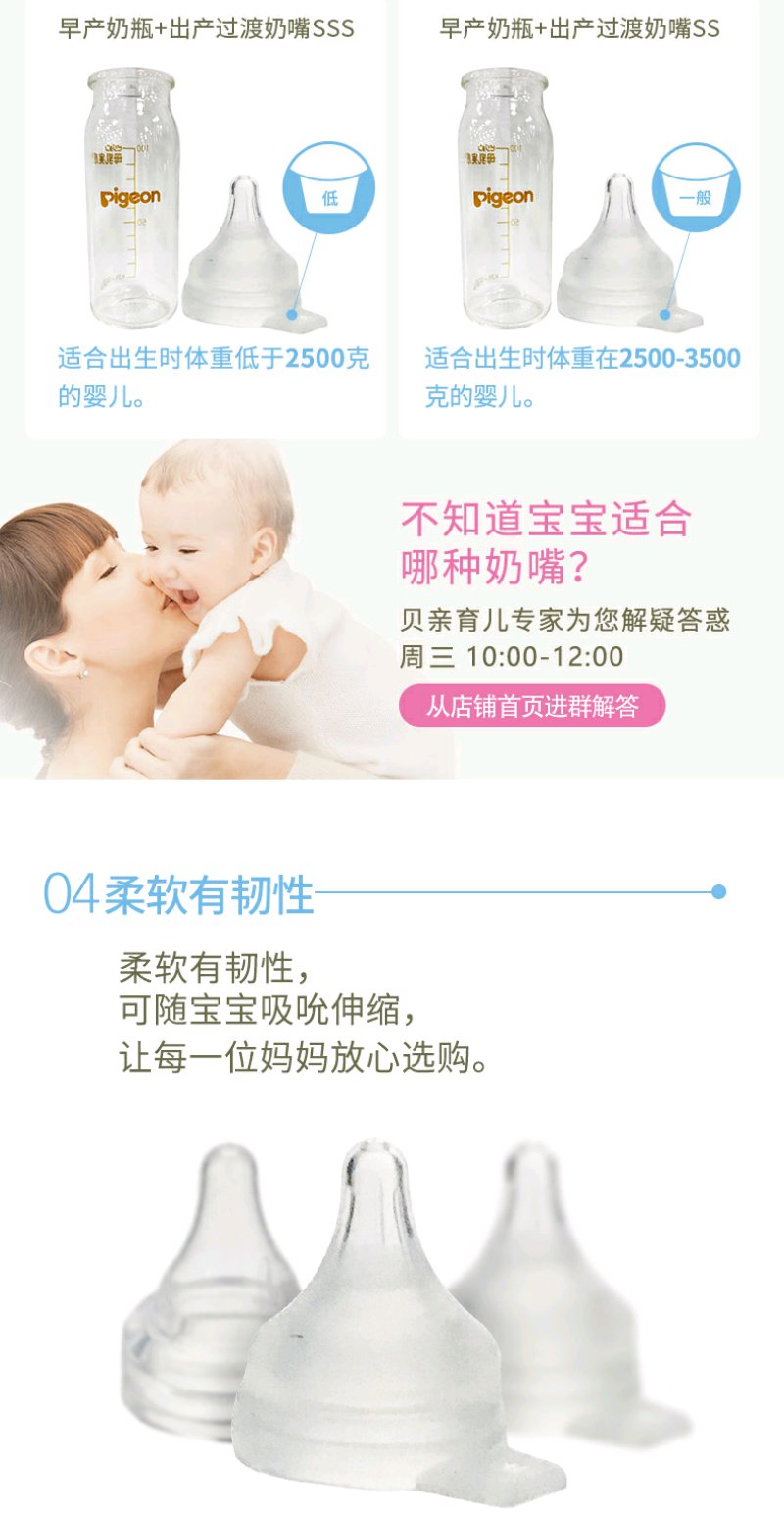 贝亲早产儿玻璃奶瓶100ML练习吸吮奶嘴/PIG-AA122/PIG-BA112