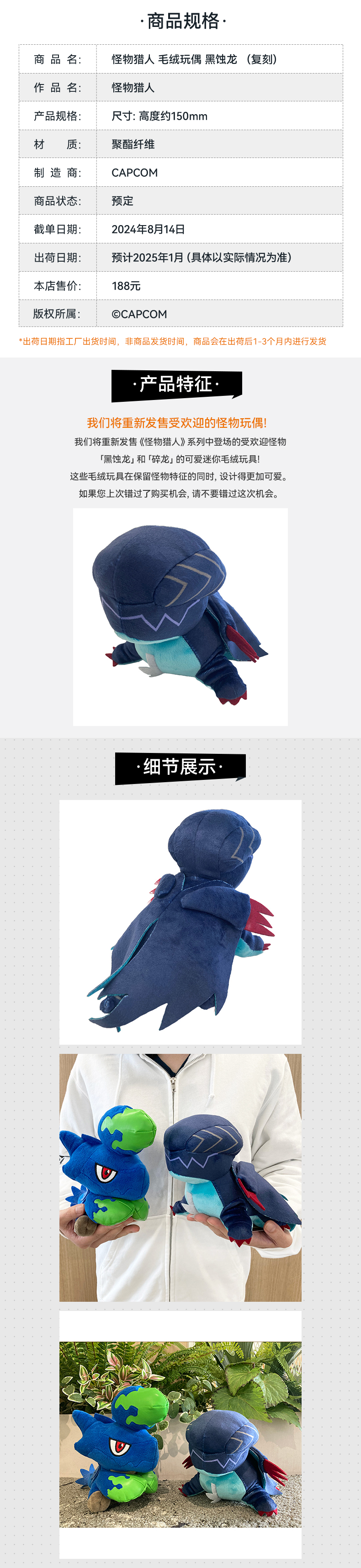 【GSC现货】怪物猎人 毛绒玩偶 黑蚀龙/碎龙 (复刻)