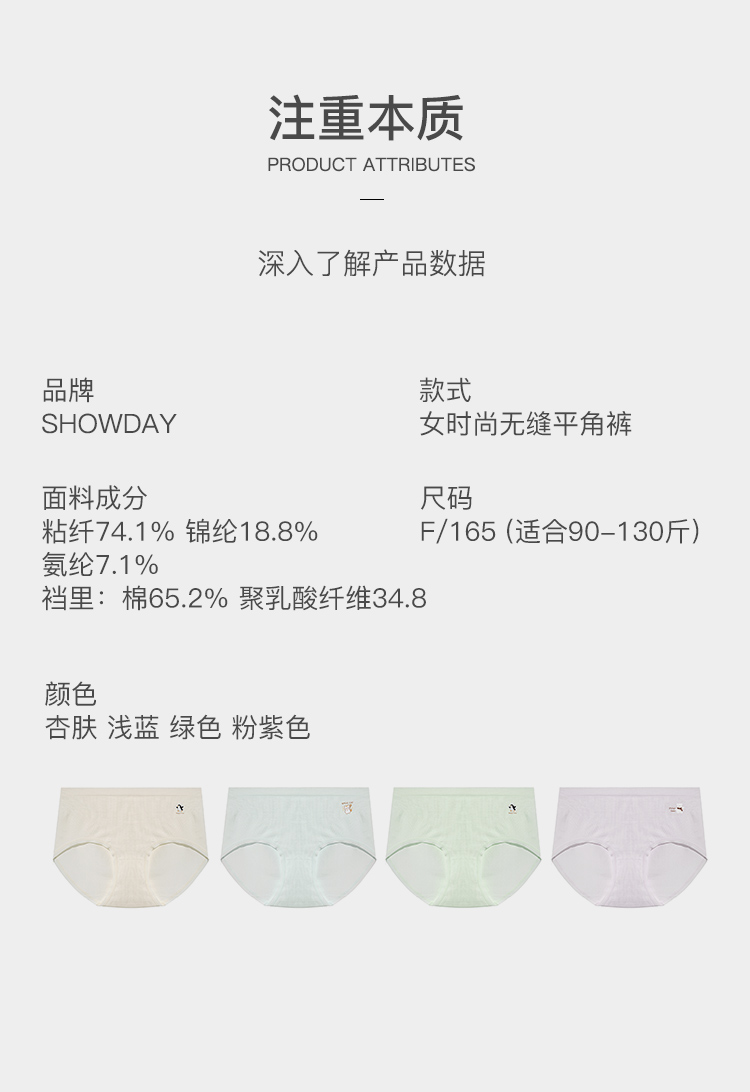 【满4条/7.5折】(中版)【秀黛】女时尚无缝平角裤女士内裤【1条】W5333008T【门店同款】【内裤非质量问题不退换,介意勿拍】