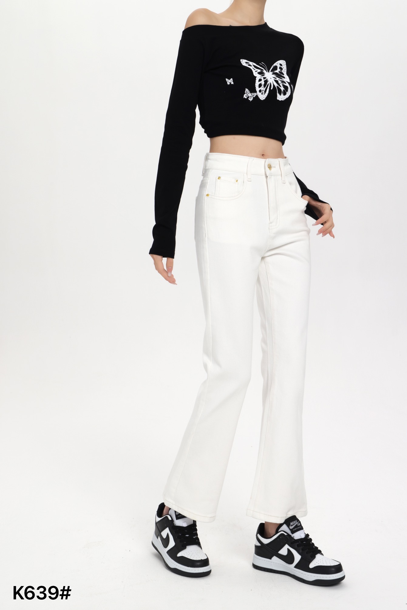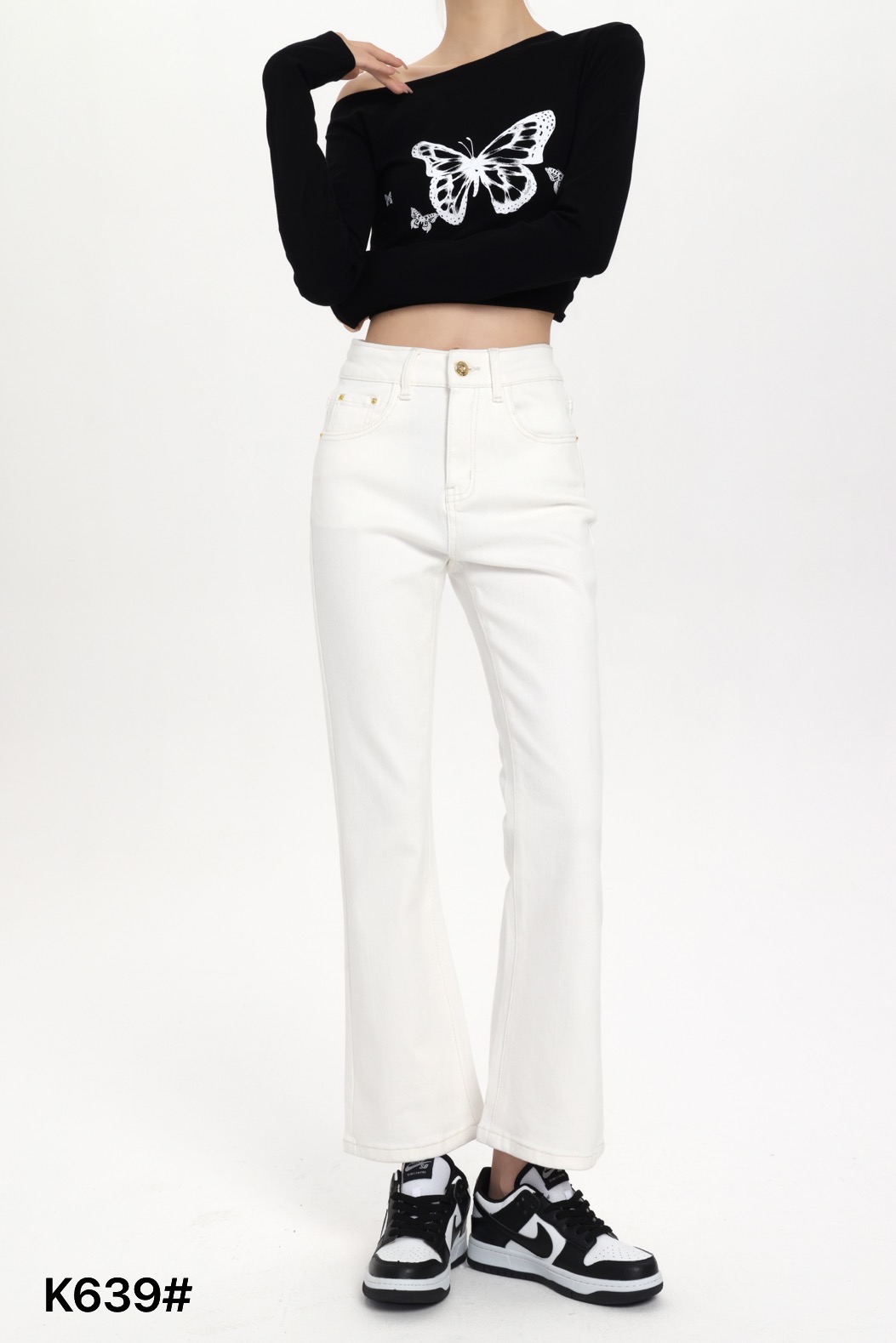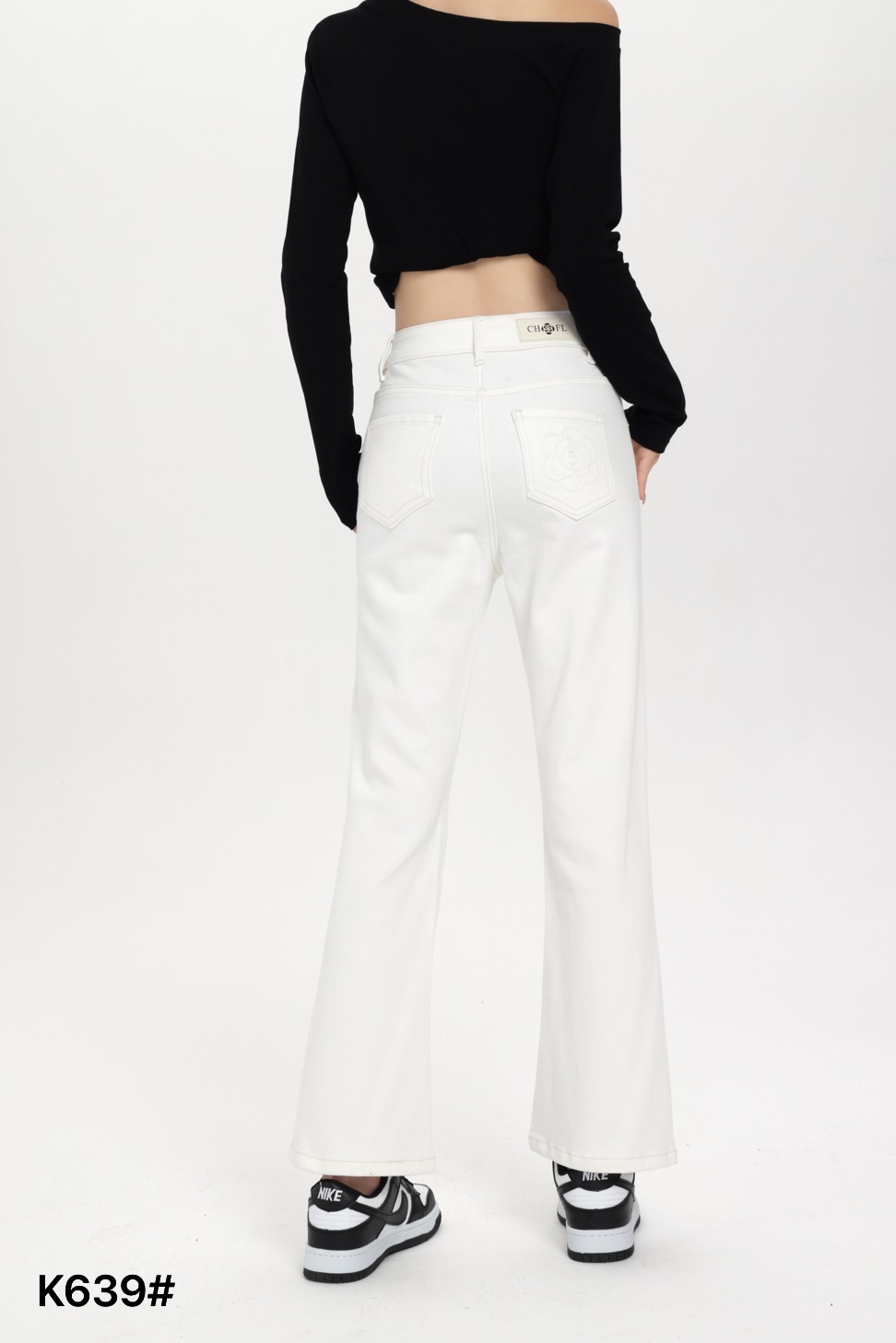 K639 # 黑 白 27-31 秋季大长腿微喇牛仔裤女弹力立体花图案高腰百搭 不挑身材 不挑年龄 舒适的穿着体感 再配一双休闲鞋 气质更佳 谁穿谁美 喜欢这种系列的风格的姐妹们 冲