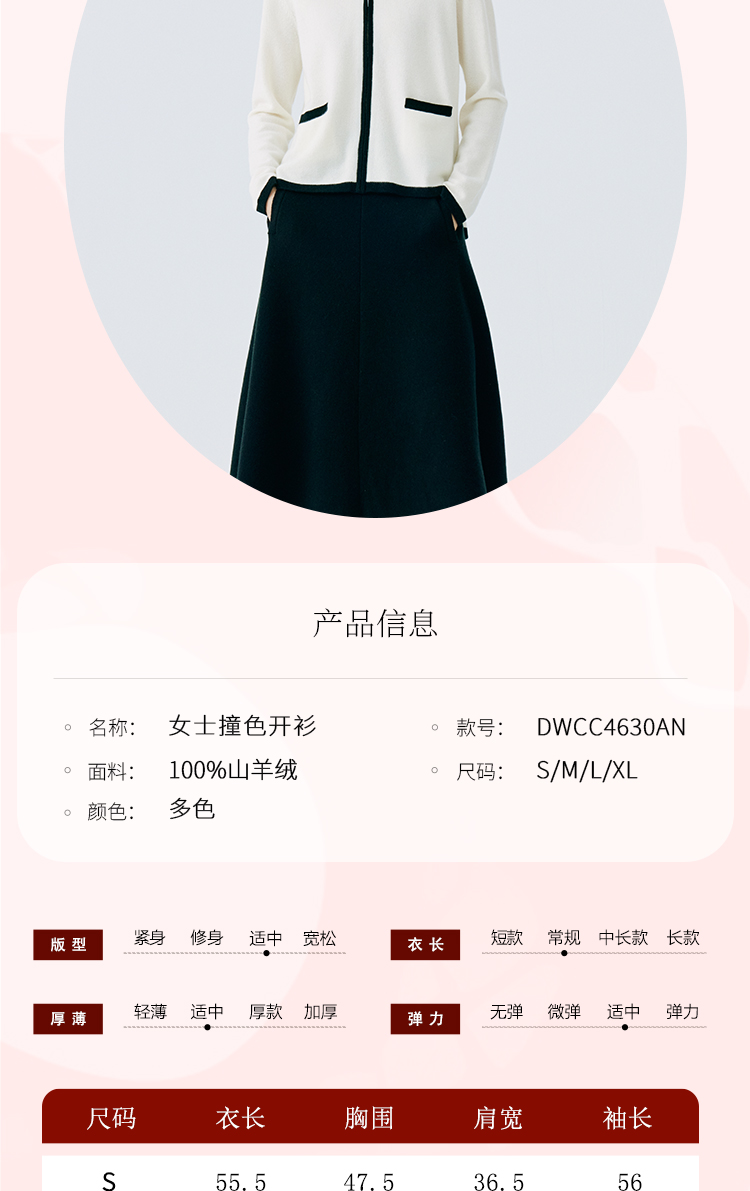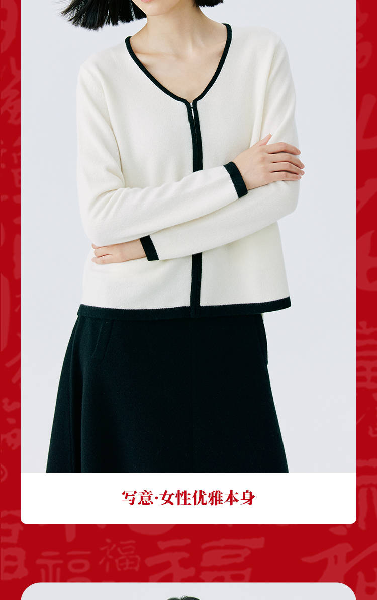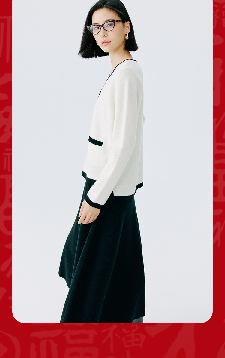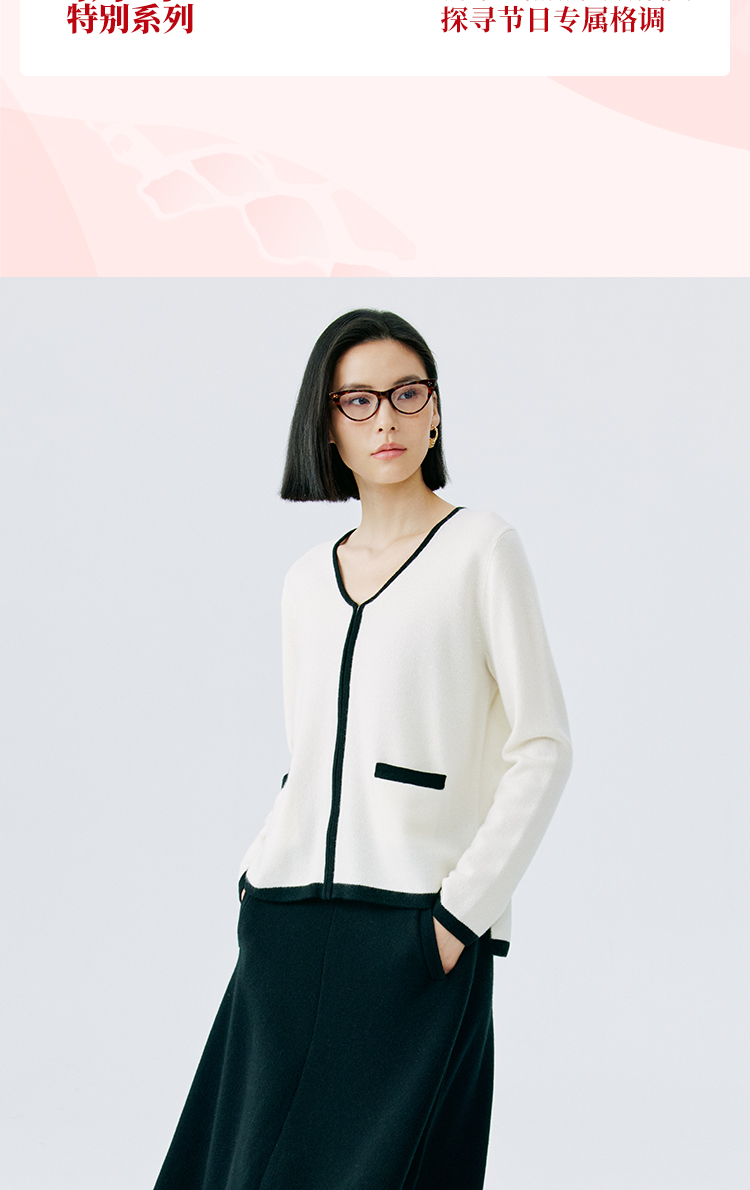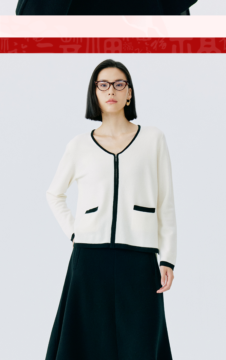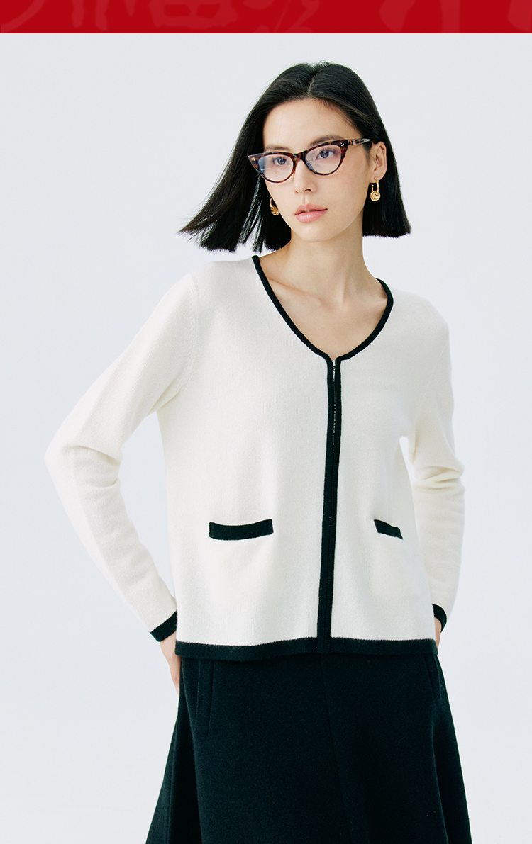 东黎 • 山羊绒女士撞色开衫 4630