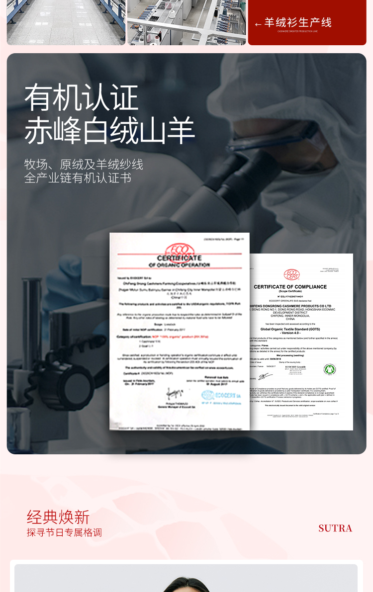 东黎羊绒是赤峰东荣集团自主品牌,自有牧场/羊绒制品全产业链优势,实现了羊绒从“牧场”到“商场”的华丽转变。