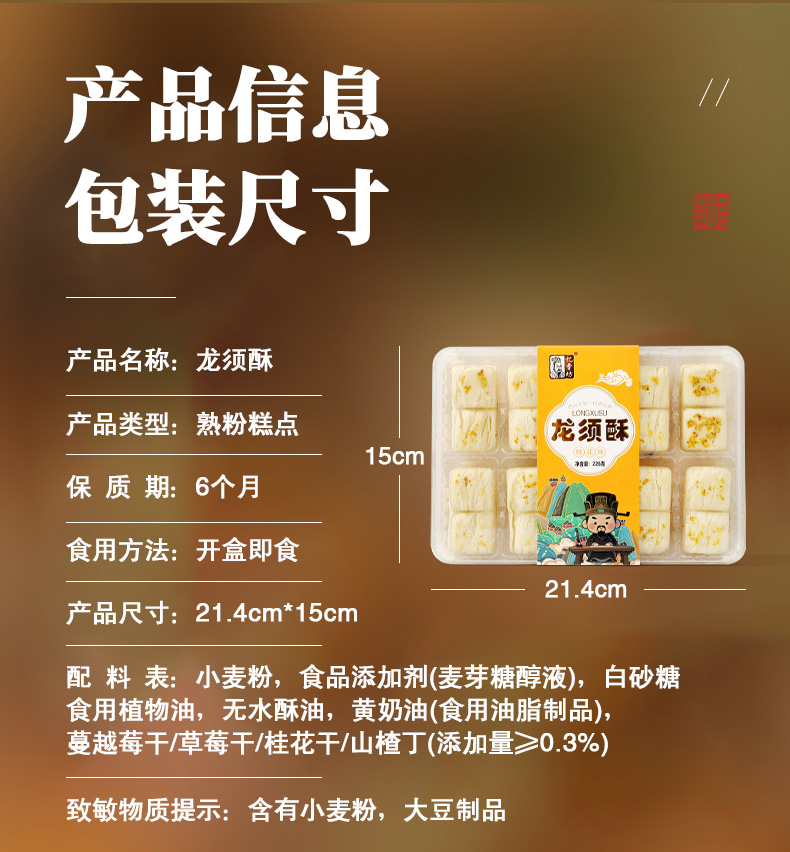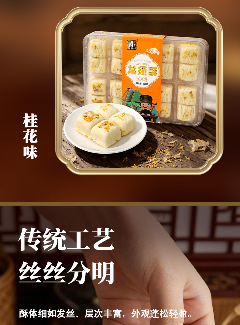 忆曹坊手工龙须酥-桂花味(226g/盒 8块)生产日期: 3月