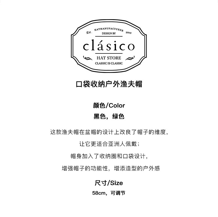 clasico/CLBK098/口袋收纳户外渔夫帽