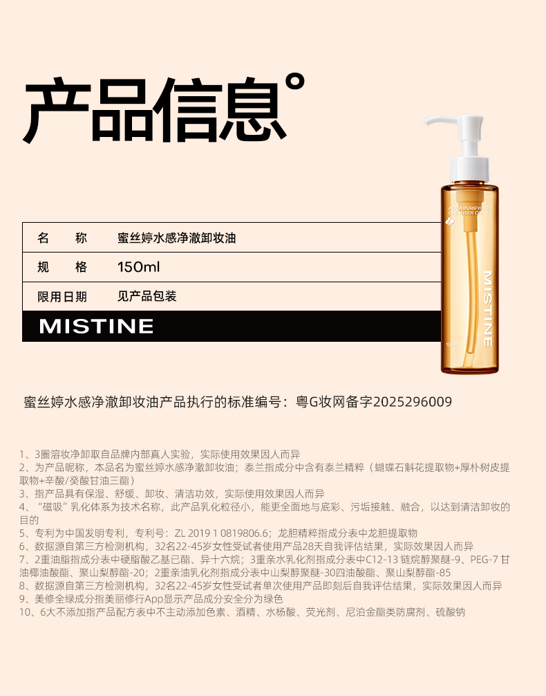【品名】蜜丝婷水感净澈卸妆油150ml+替换装