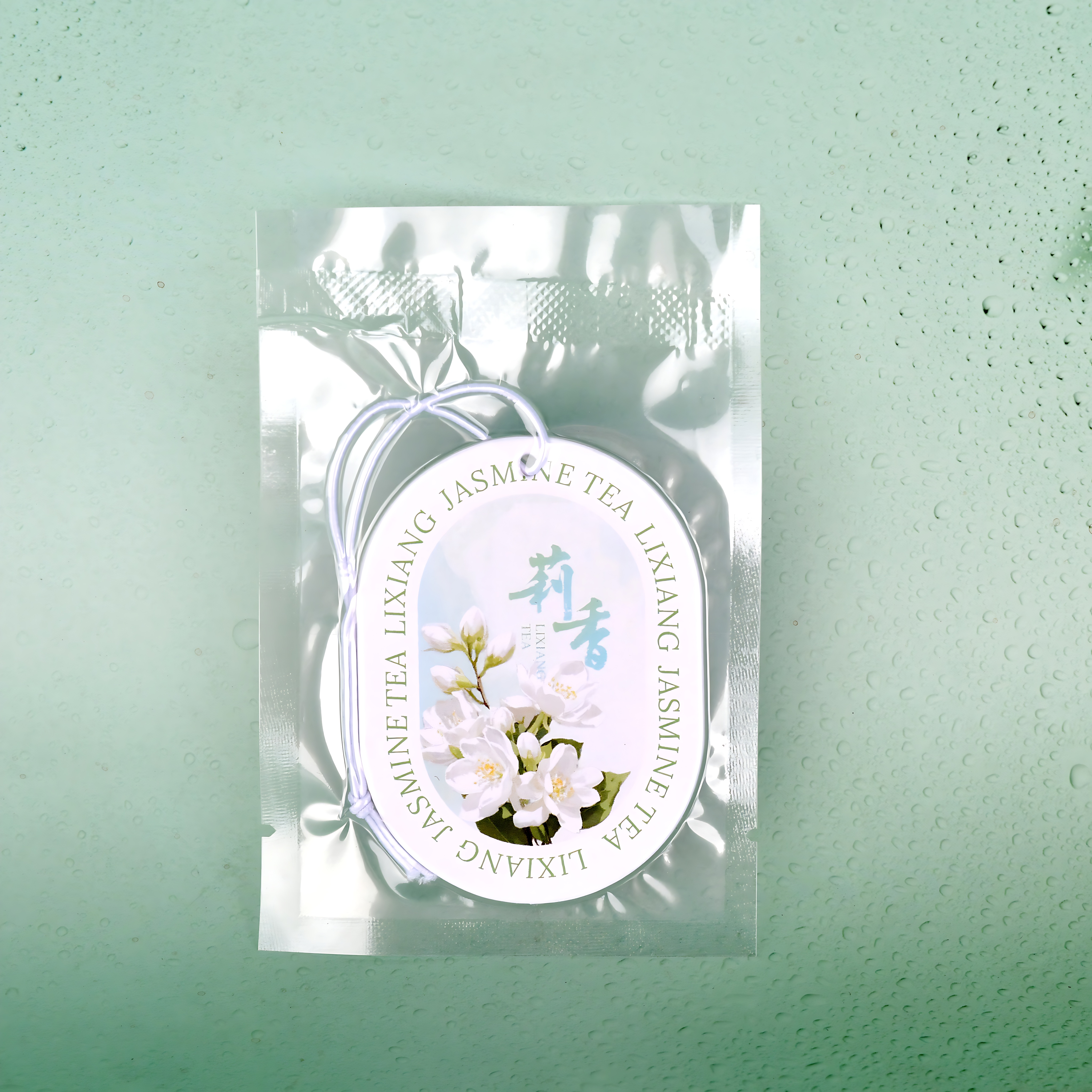 茉莉香片是以茉莉为主要原料的天然植物香片,茉莉花香自然不刺鼻,清新除味。可放车里,家里,衣服、鞋子,衣柜,包包、行李箱、WC等,方便随身携带。