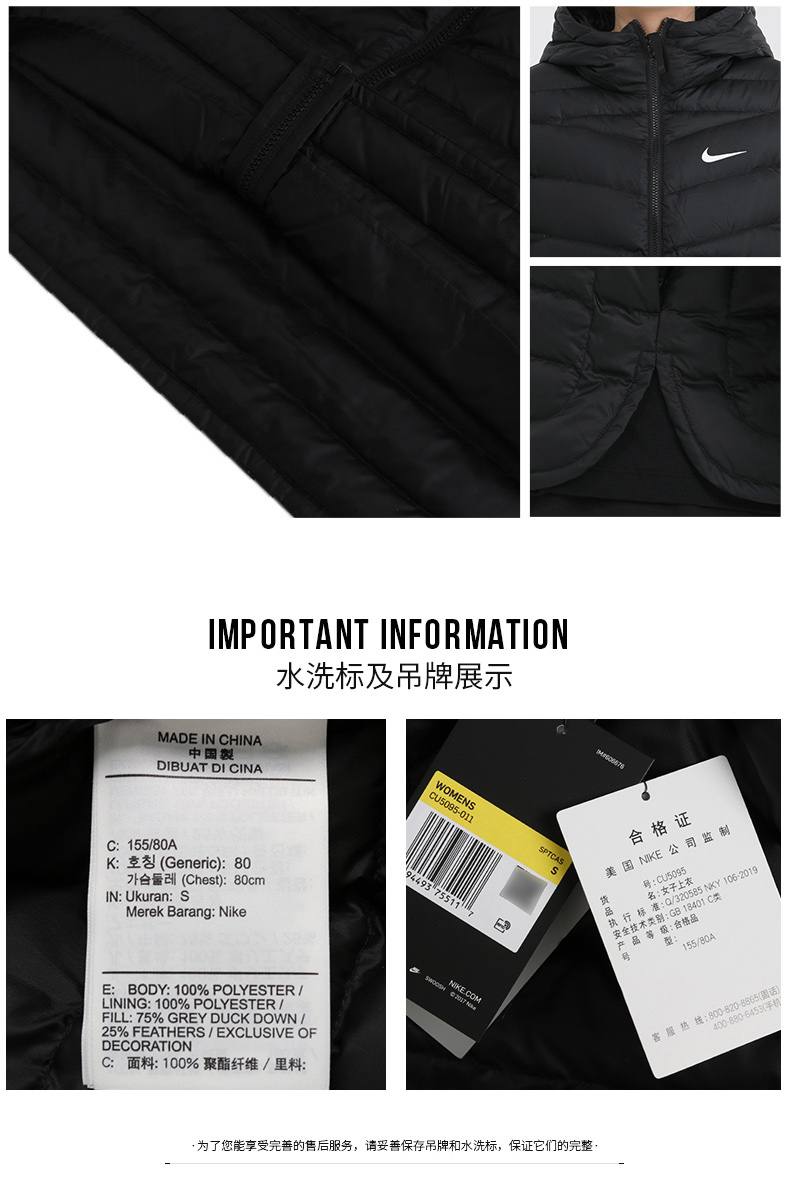 Nike耐克女装 新款保暖防风外套宽松羽绒服CU5095-011